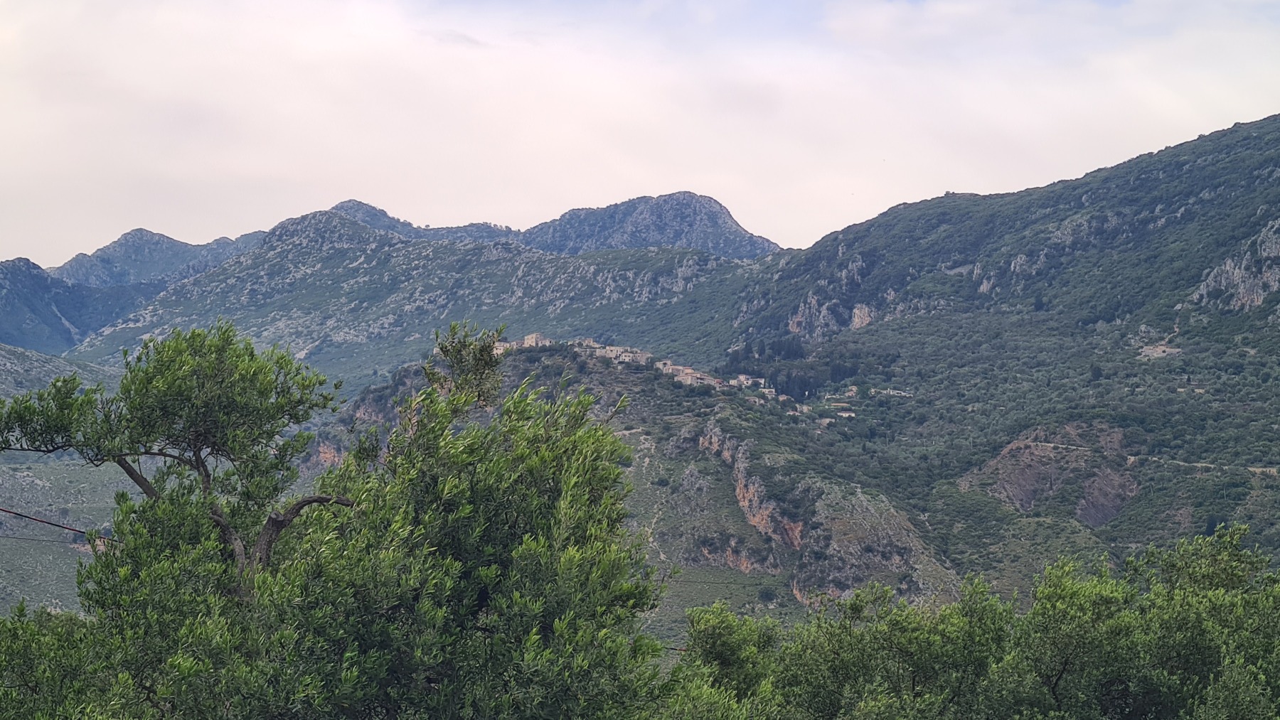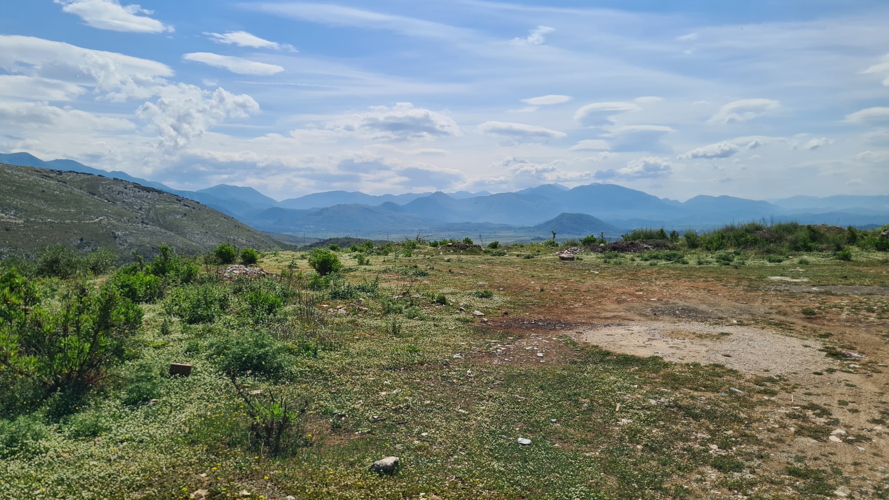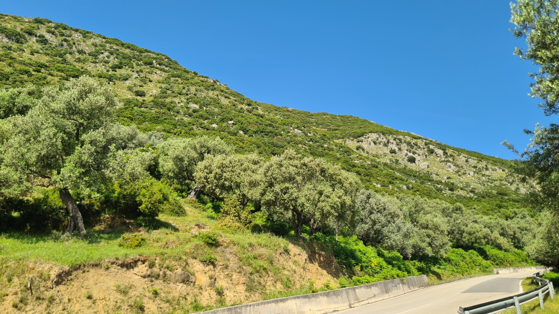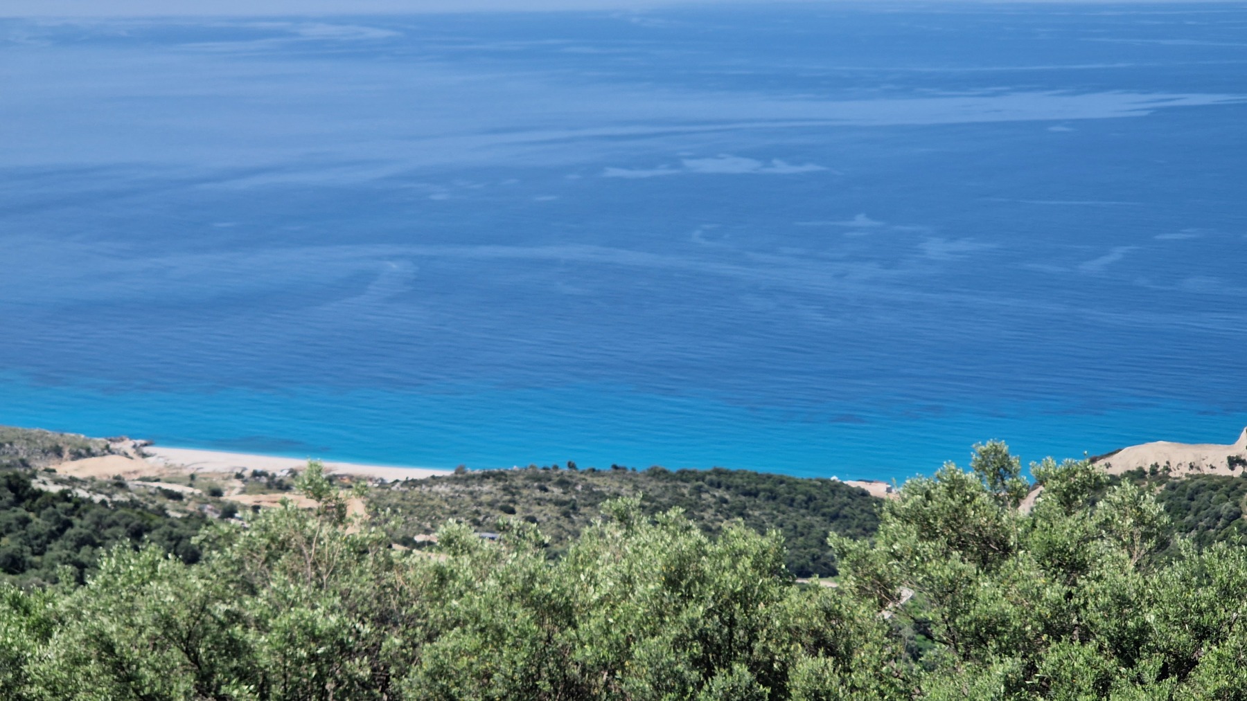 Nous avons suivi l’Eurovelo 8 (qui elle même suit la route du littoral « SH8 ») jusqu’au village de Piqeras où nous avons déjeuné. Au passage nous avons pu y voir des panoramas superbes sur les montagnes, sur la mer et sur l’ile de Corfou qui est encore toute proche mais aussi une vache, un troupeau de moutons, des ânes et un cyclotouriste allemand qui suit la même route en sens inverse.