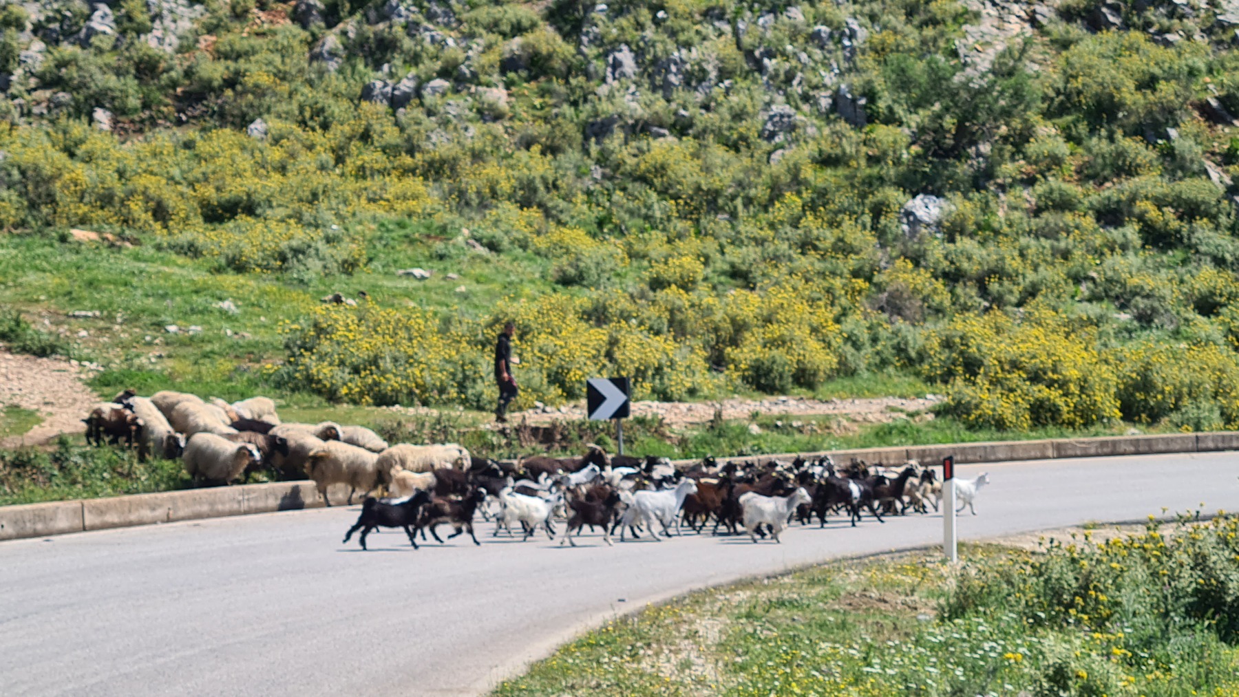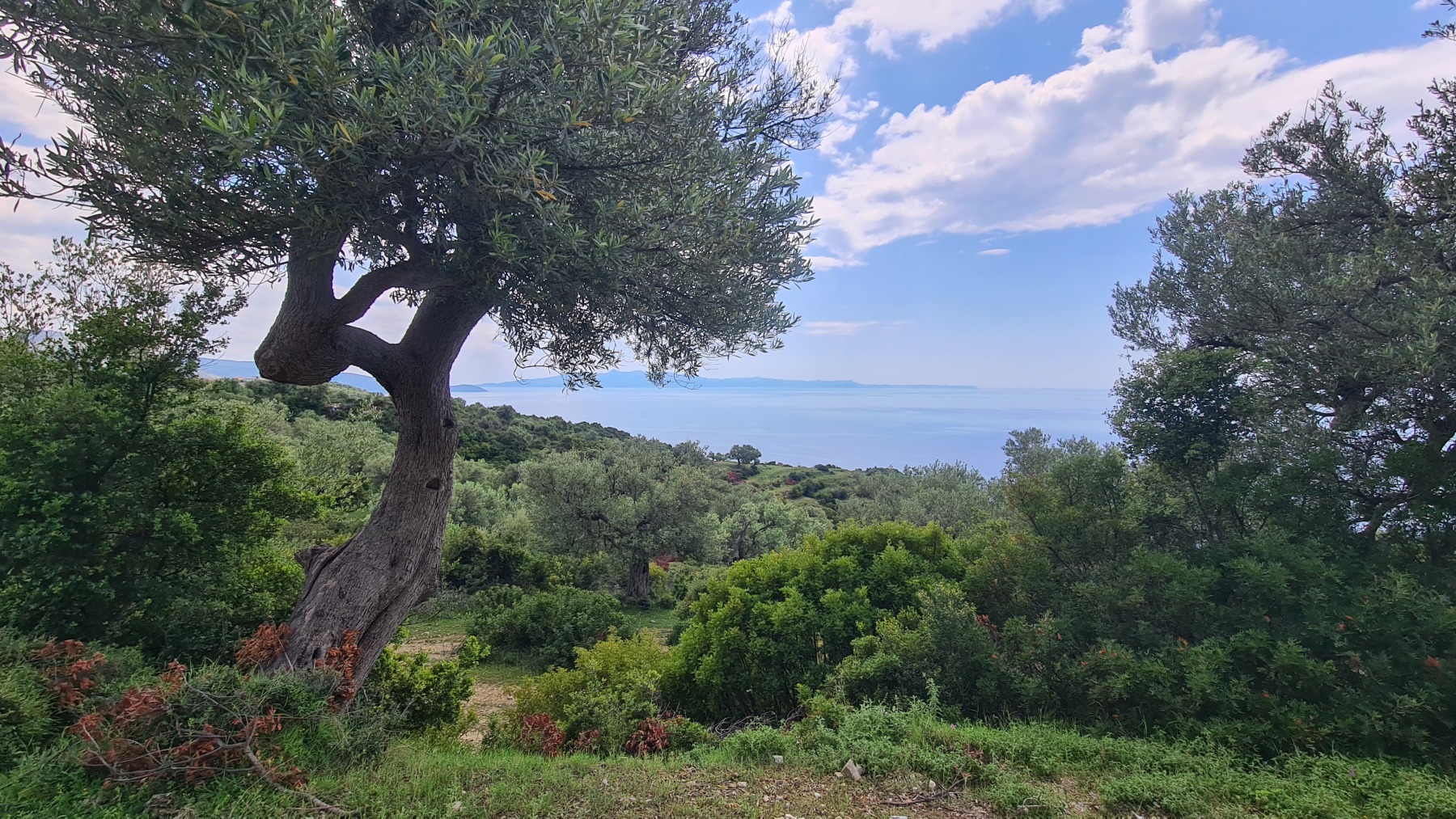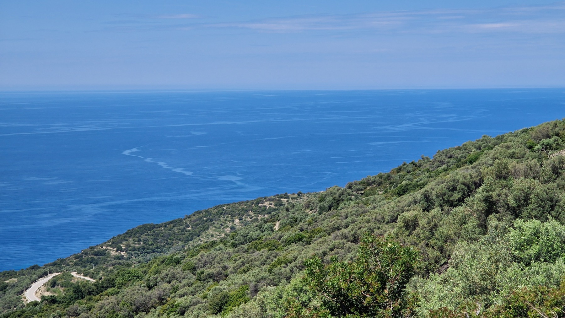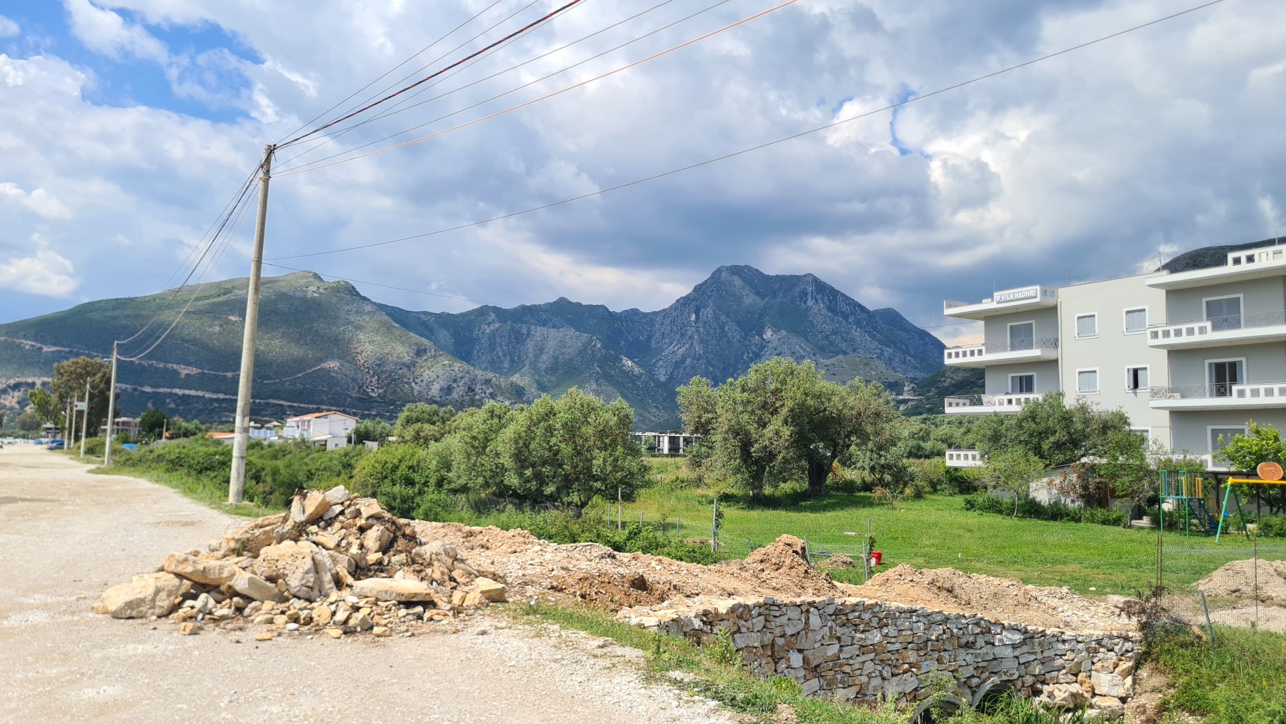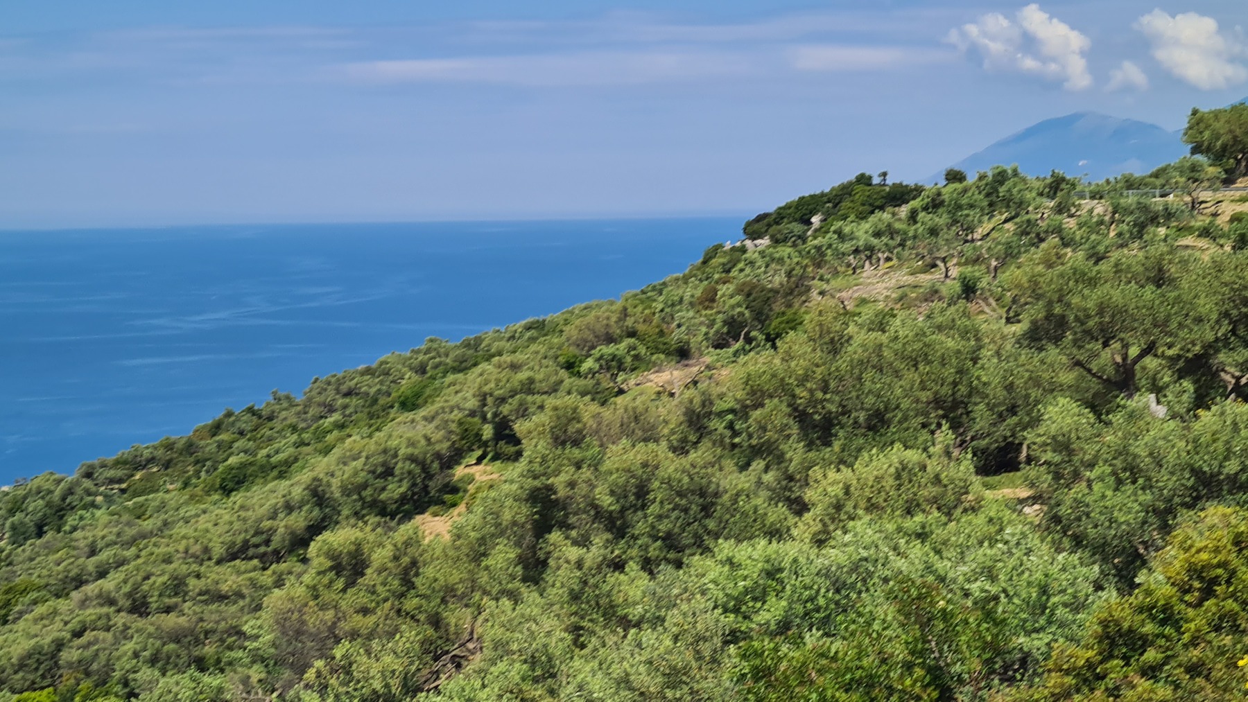 Nous avons suivi l’Eurovelo 8 (qui elle même suit la route du littoral « SH8 ») jusqu’au village de Piqeras où nous avons déjeuné. Au passage nous avons pu y voir des panoramas superbes sur les montagnes, sur la mer et sur l’ile de Corfou qui est encore toute proche mais aussi une vache, un troupeau de moutons, des ânes et un cyclotouriste allemand qui suit la même route en sens inverse.