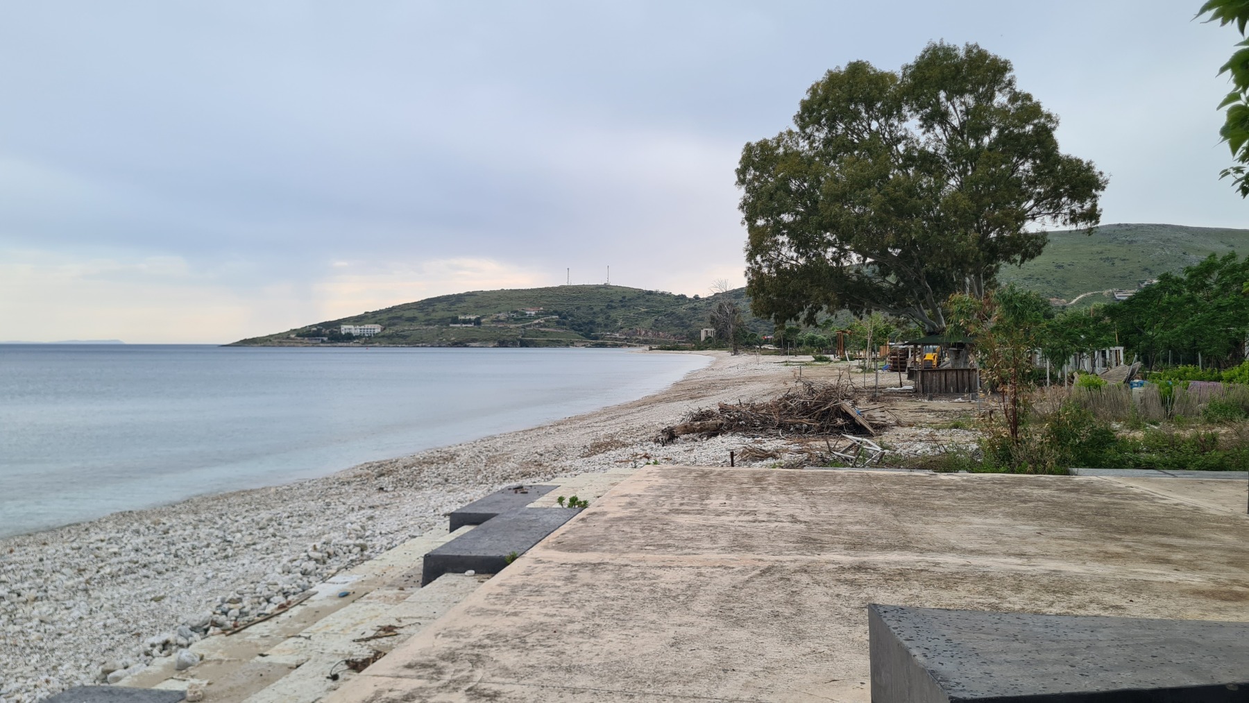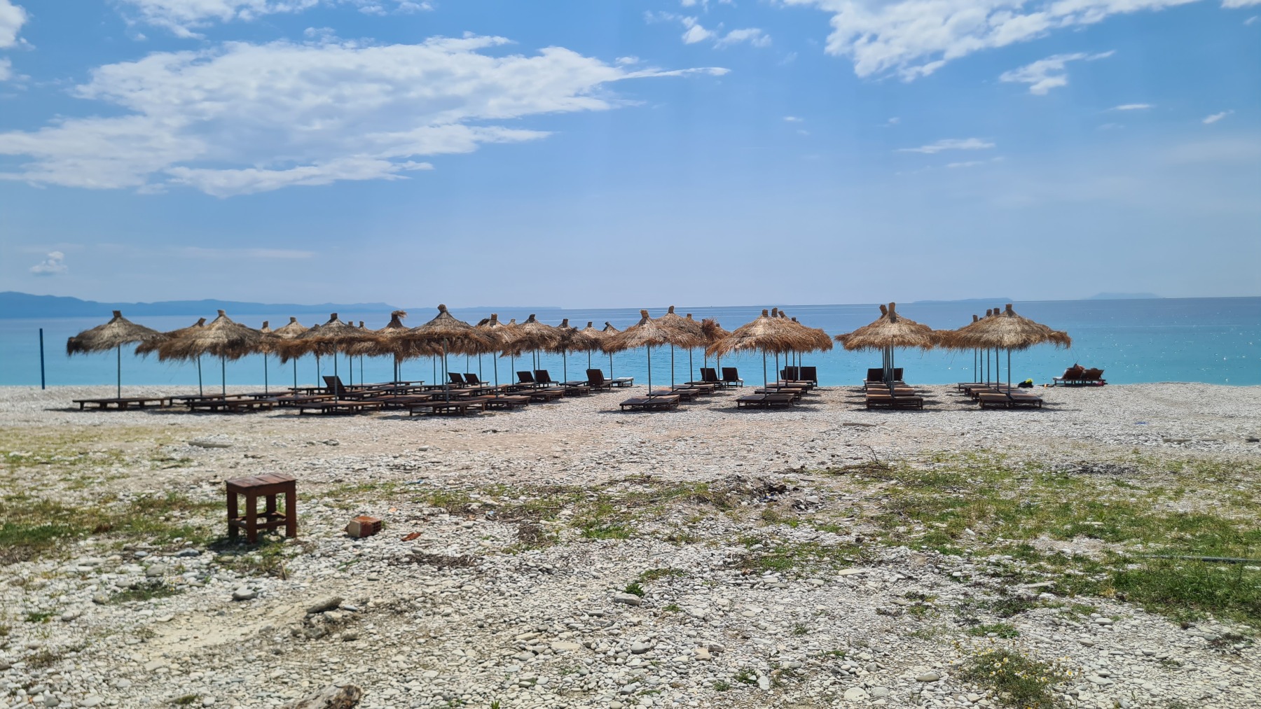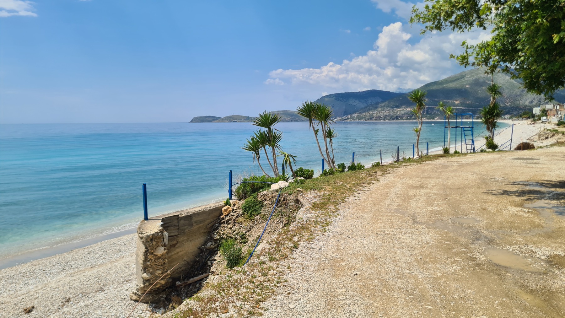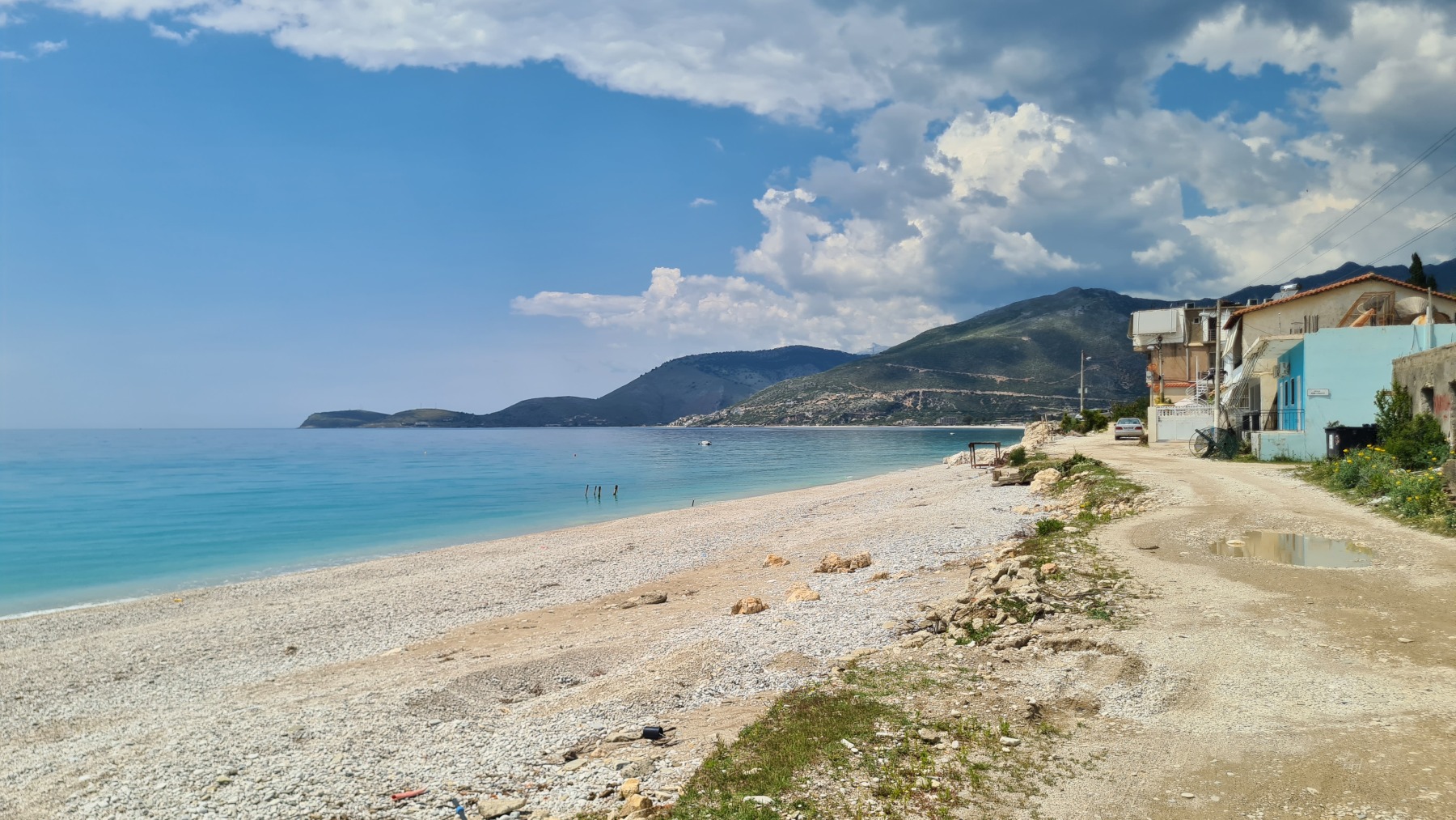 Ce soir nous sommes à Qeparo dans un studio dans une maison avec un jardin fleuri, accueillis par un thé local et des parts de gâteau et nous sommes ressortis faire un tour sur la plage.