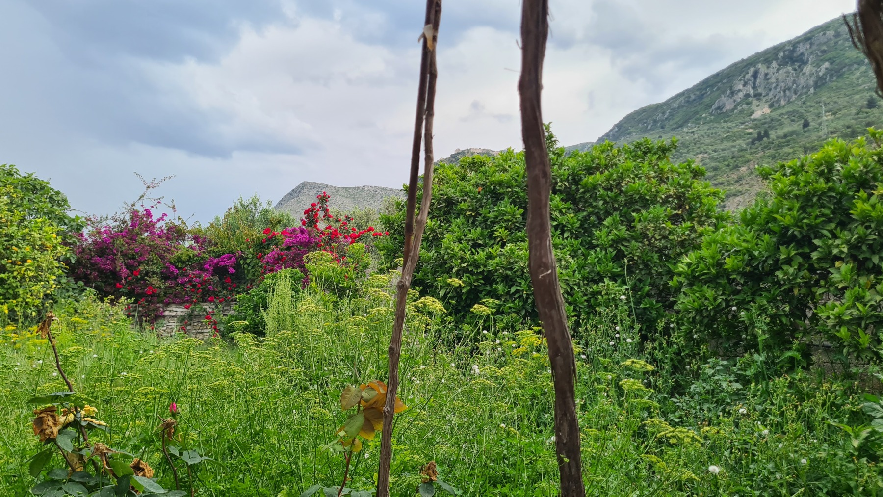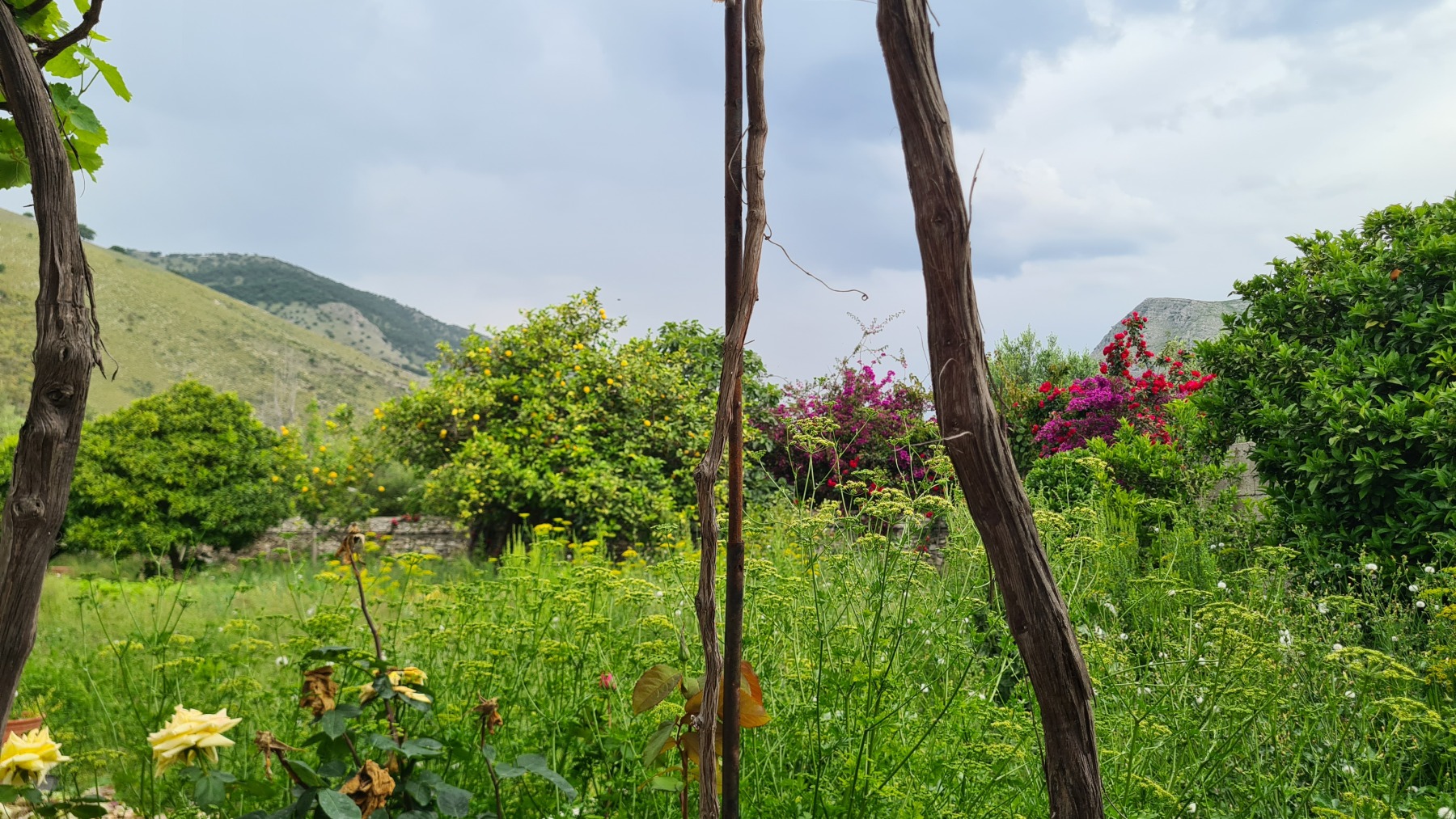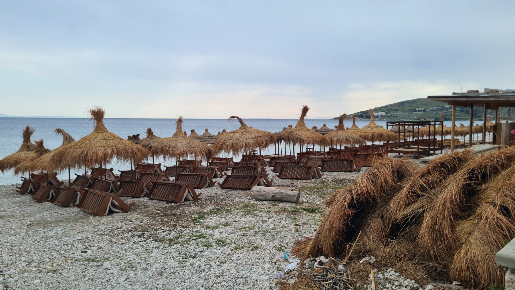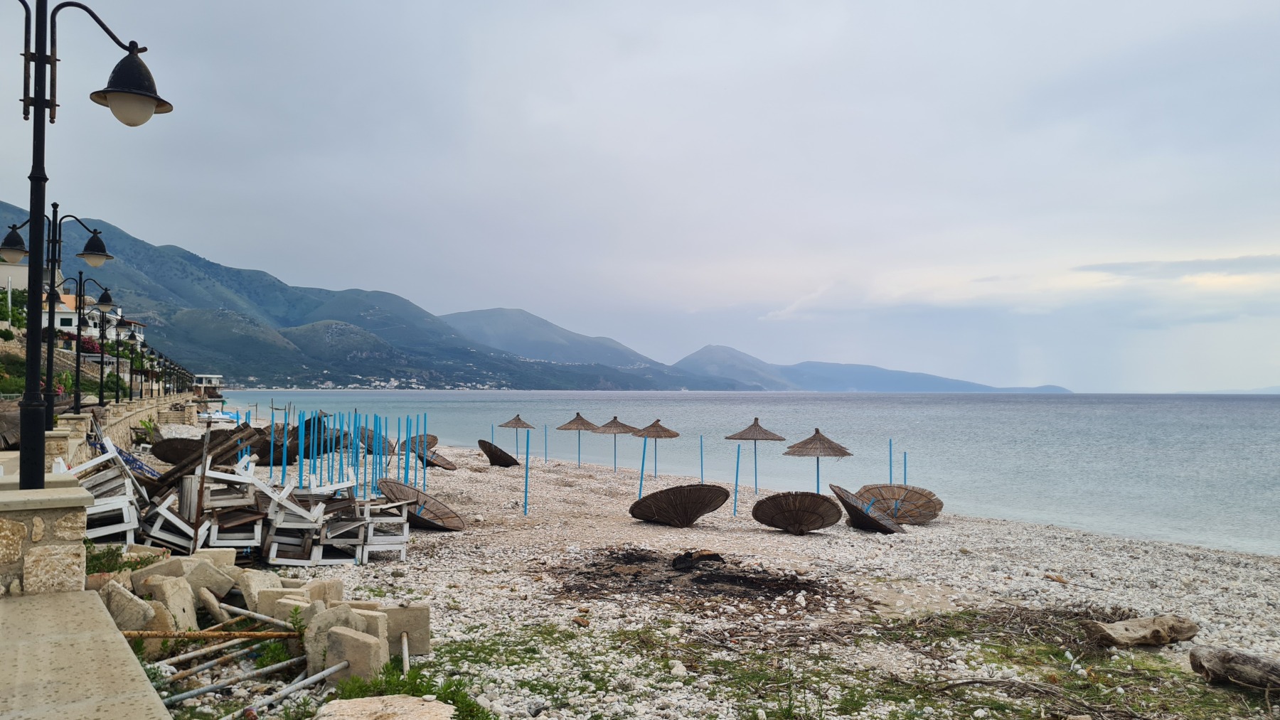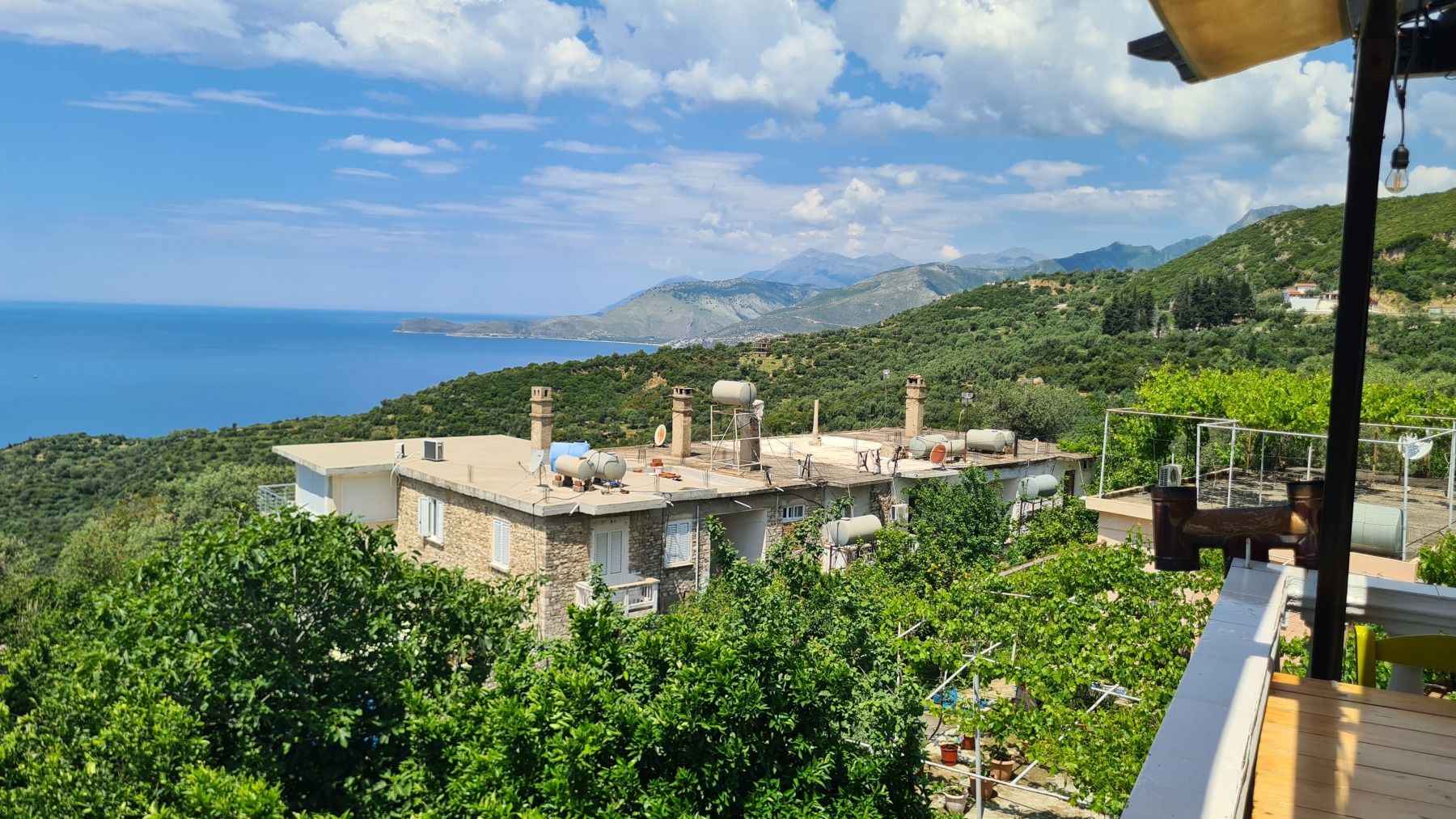 Ce soir nous sommes à Qeparo dans un studio dans une maison avec un jardin fleuri, accueillis par un thé local et des parts de gâteau et nous sommes ressortis faire un tour sur la plage.