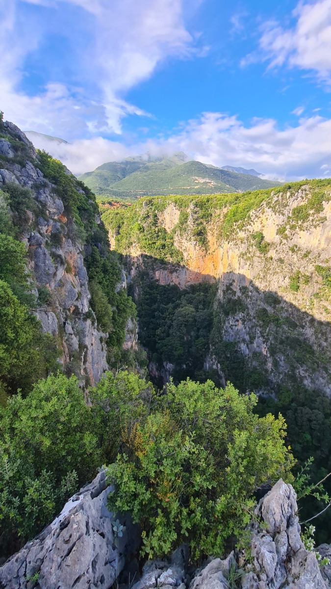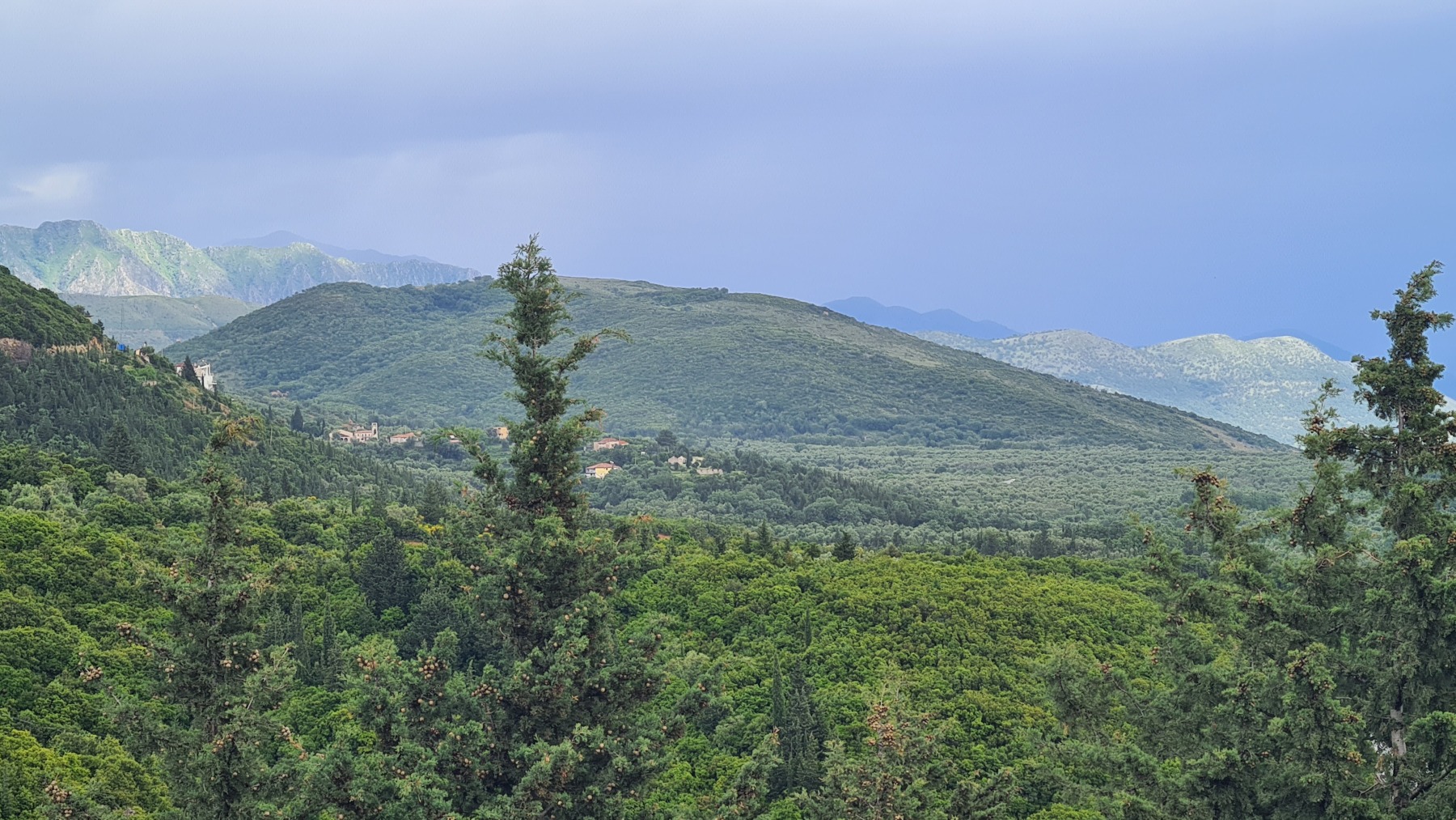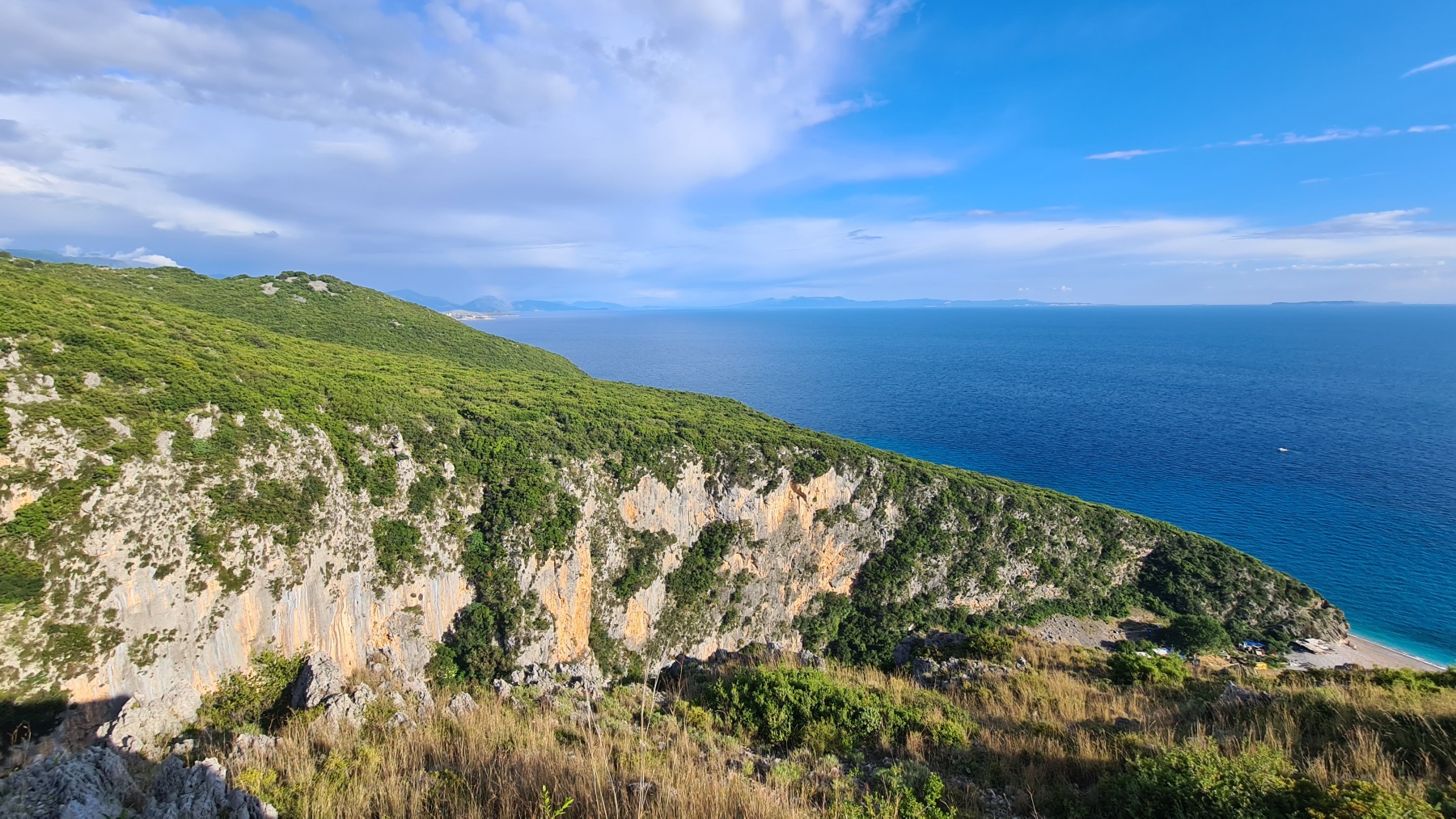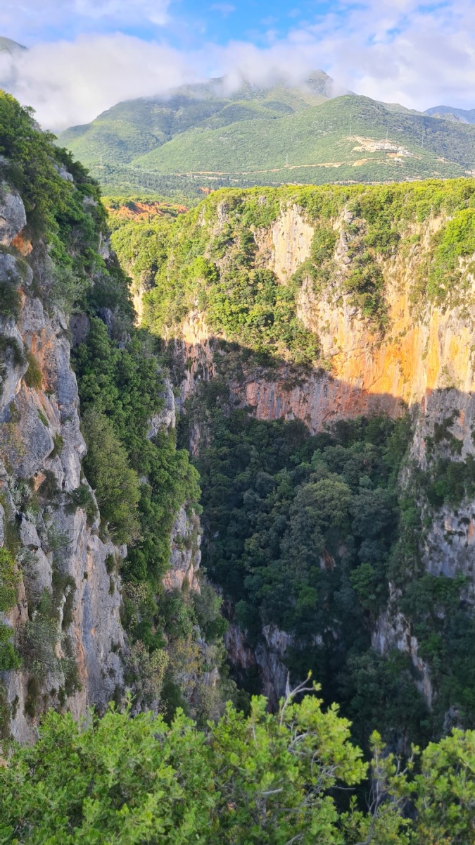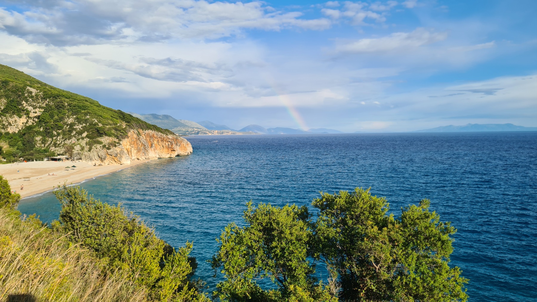 Ce soir nous dormons dans un Airnb dans le hameau d’Ilias, un hameau de quelques maisons au dessus du ravin et de la plage de Gjipe. Nous y avons été accueilli par la mère du propriétaire qui ne parle ni anglais ni français et compense par beaucoup de gentillesse. Elle nous a offert un café (turc) et deux petits verres d’une boisson transparente. Gisèle qui a cru que c’était de l’eau a failli s’étouffer en avalant une rasade de raki.