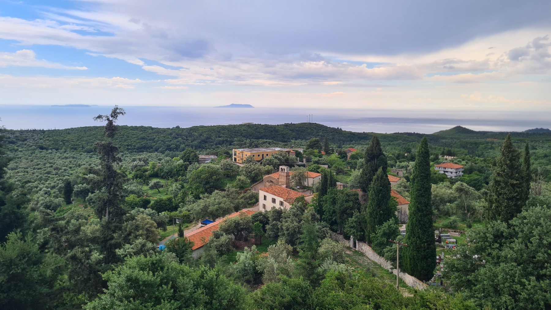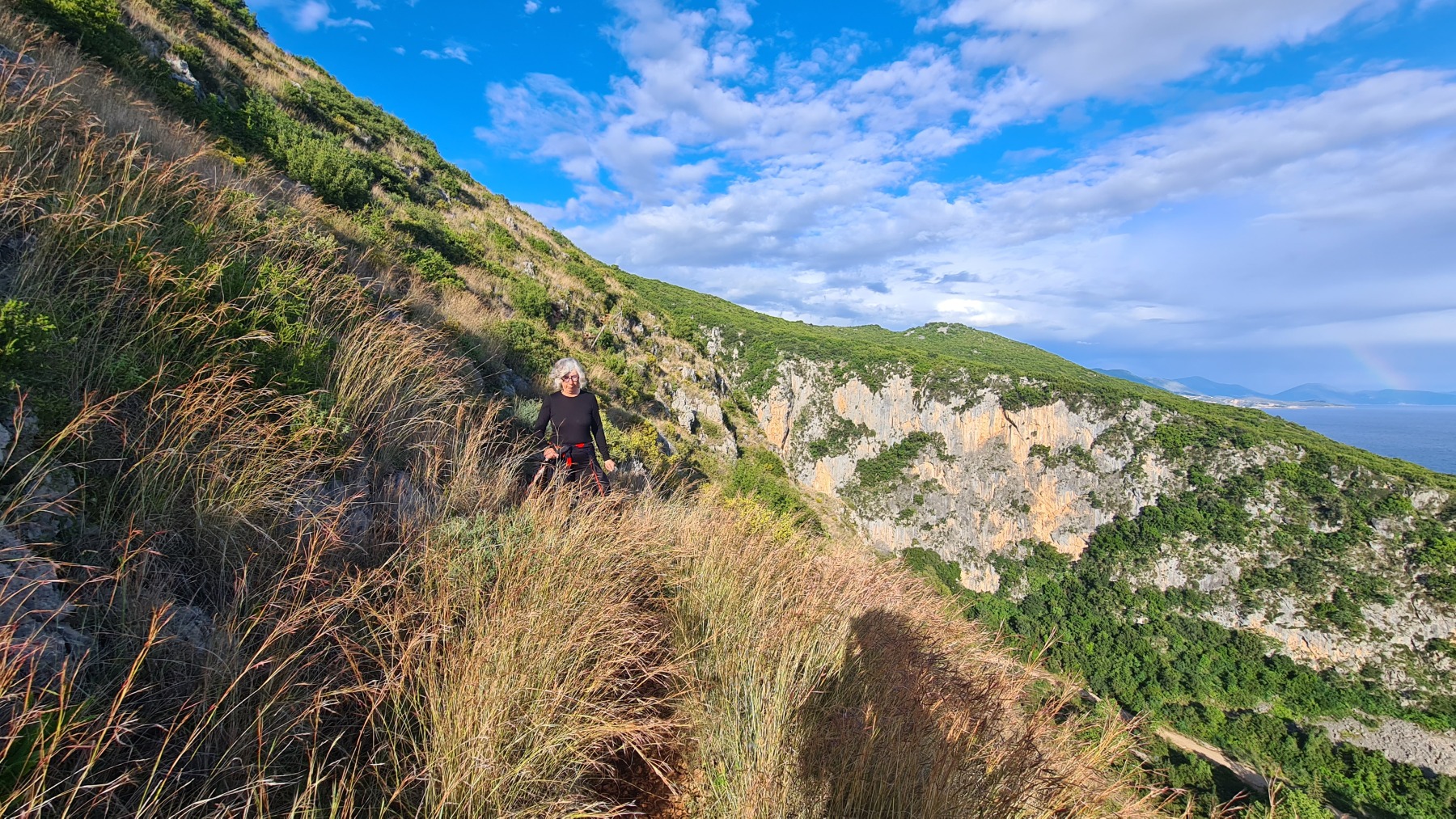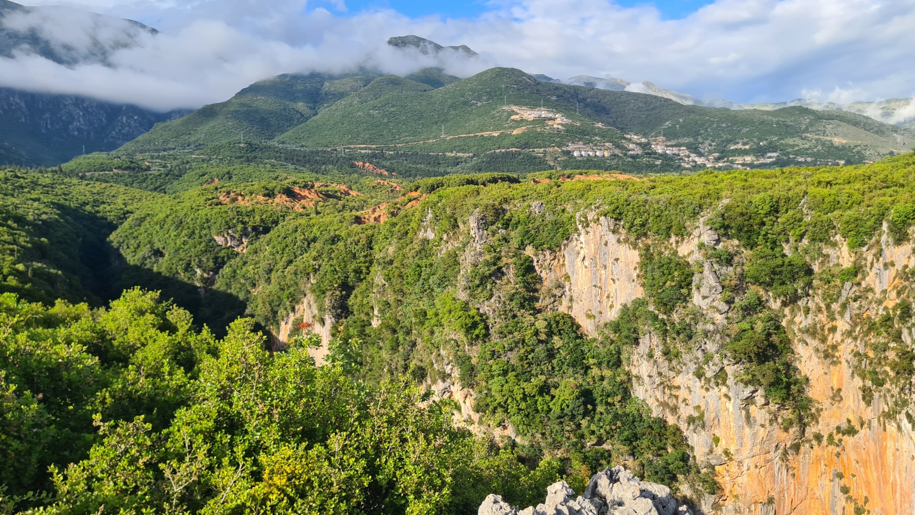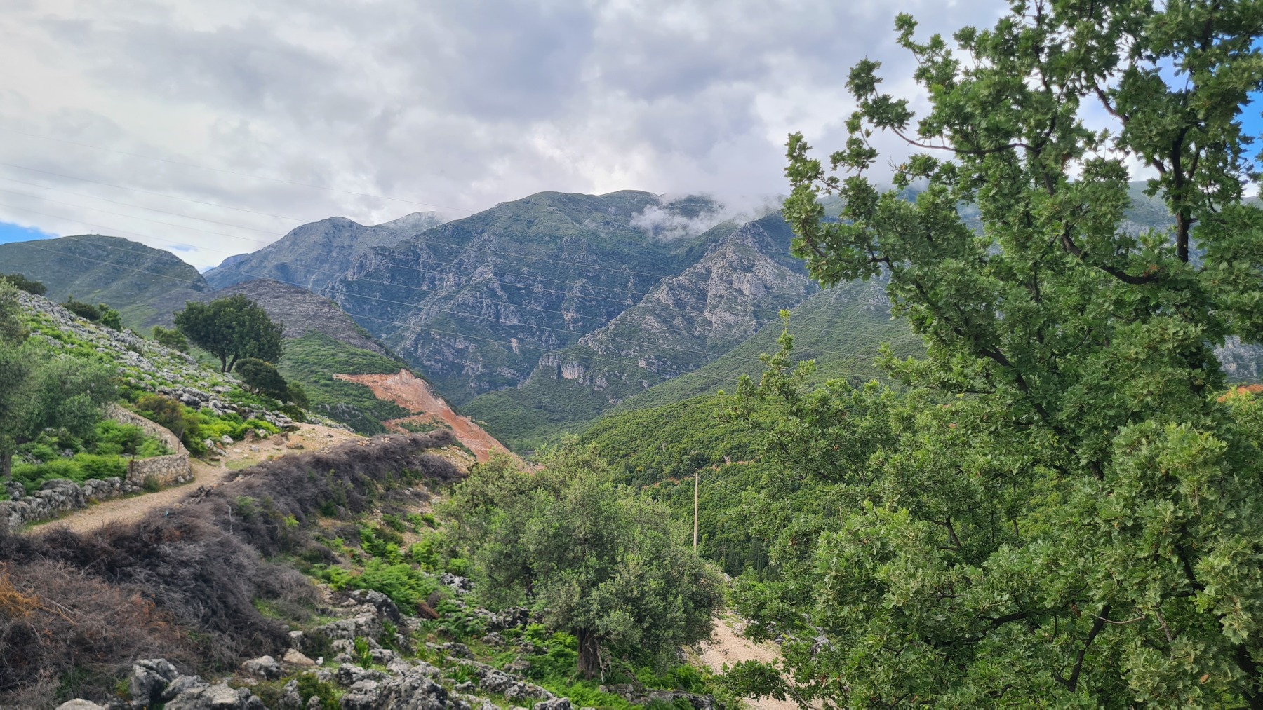 Ce soir nous dormons dans un Airnb dans le hameau d’Ilias, un hameau de quelques maisons au dessus du ravin et de la plage de Gjipe. Nous y avons été accueilli par la mère du propriétaire qui ne parle ni anglais ni français et compense par beaucoup de gentillesse. Elle nous a offert un café (turc) et deux petits verres d’une boisson transparente. Gisèle qui a cru que c’était de l’eau a failli s’étouffer en avalant une rasade de raki.