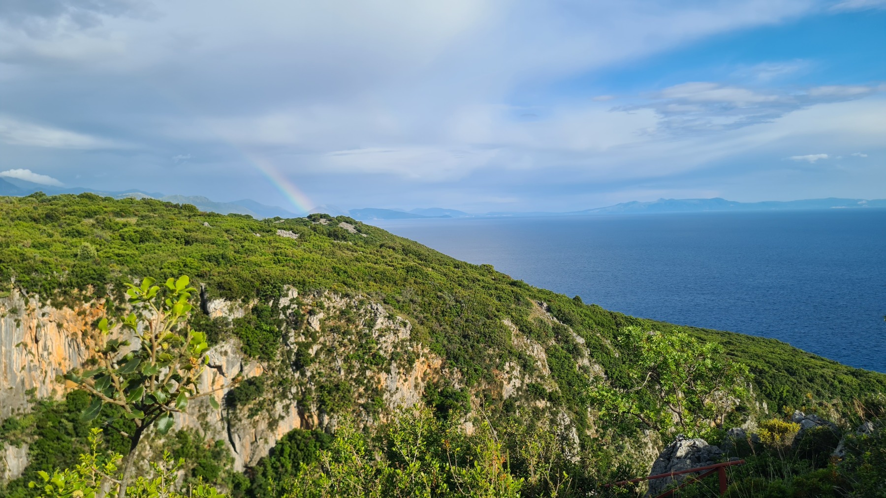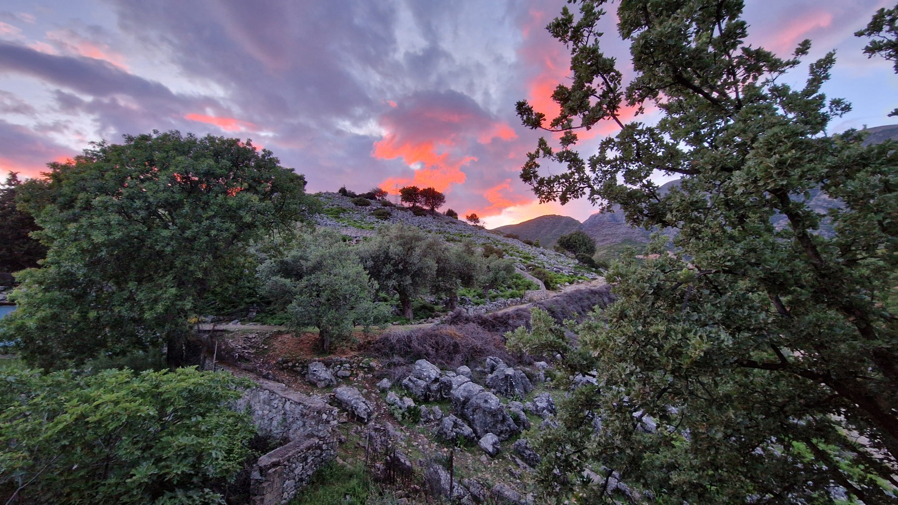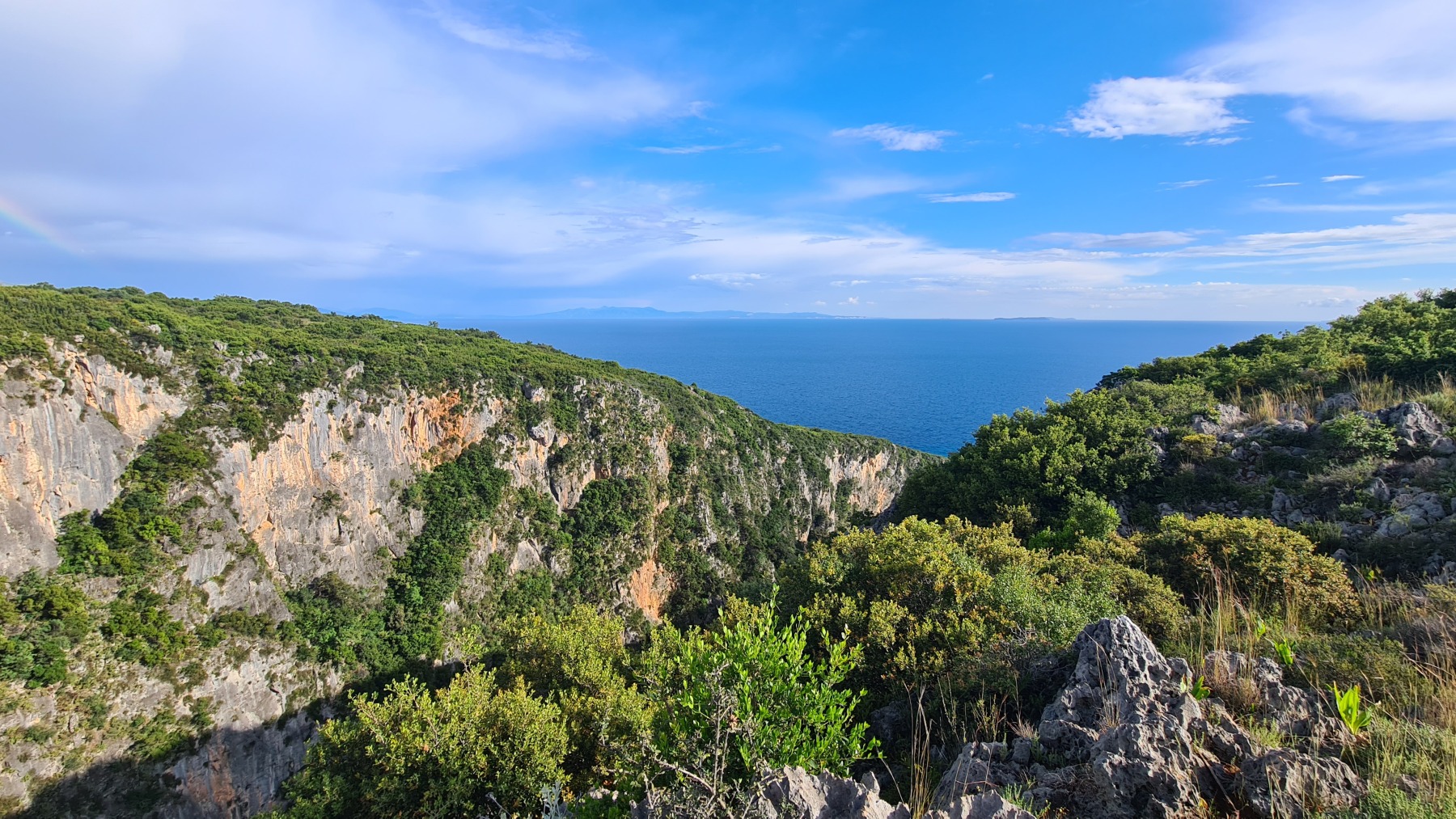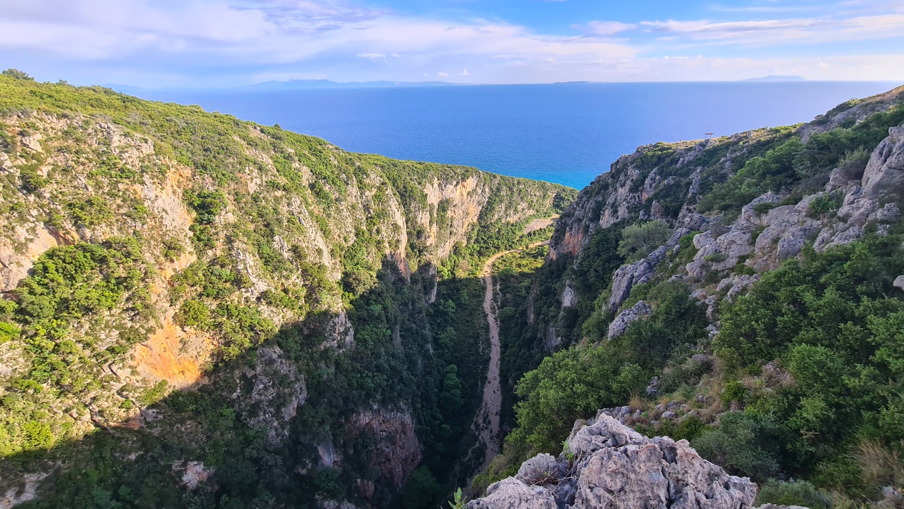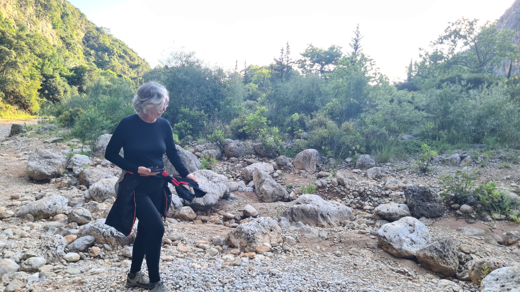 Ce soir nous dormons dans un Airnb dans le hameau d’Ilias, un hameau de quelques maisons au dessus du ravin et de la plage de Gjipe. Nous y avons été accueilli par la mère du propriétaire qui ne parle ni anglais ni français et compense par beaucoup de gentillesse. Elle nous a offert un café (turc) et deux petits verres d’une boisson transparente. Gisèle qui a cru que c’était de l’eau a failli s’étouffer en avalant une rasade de raki.