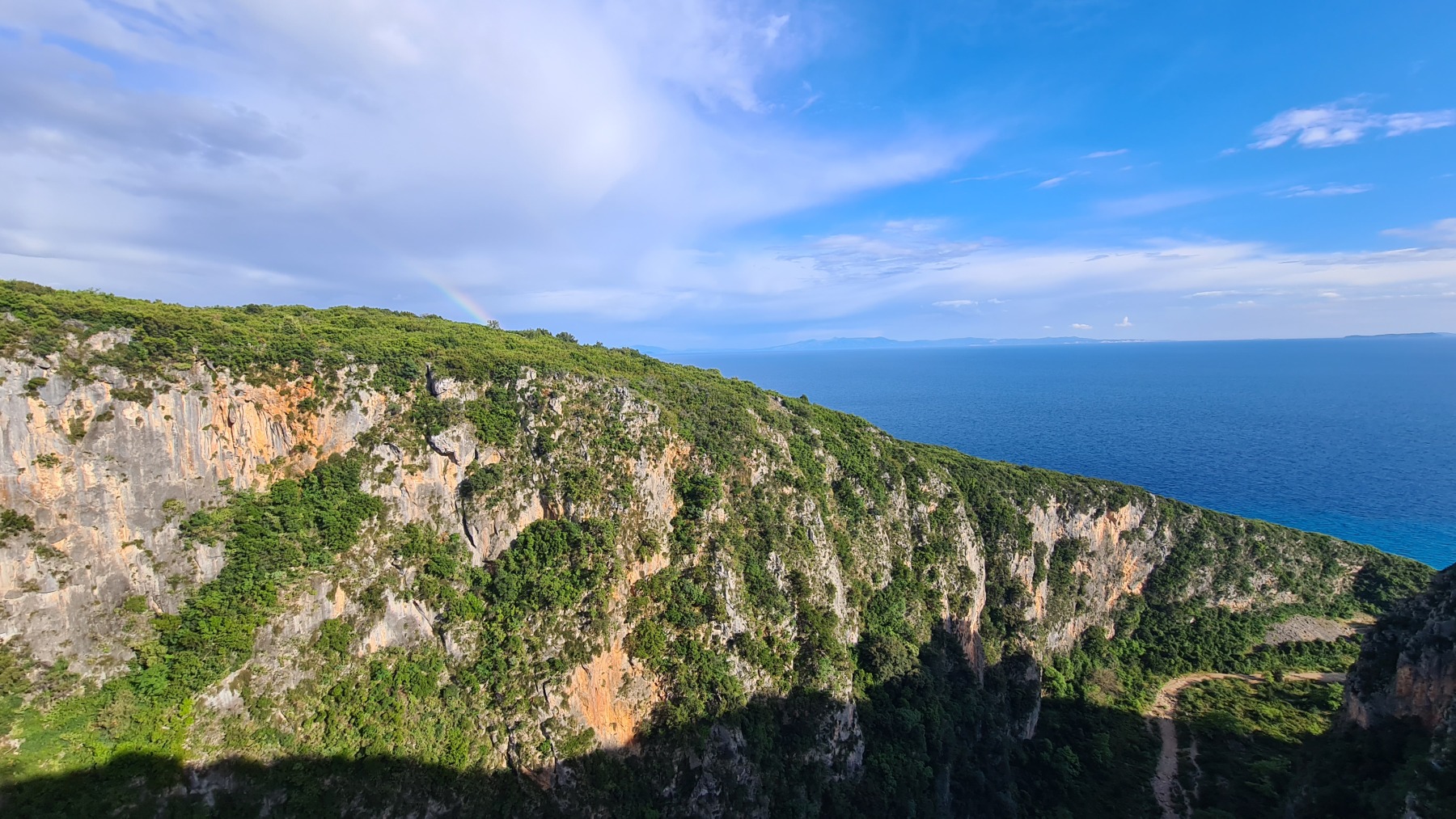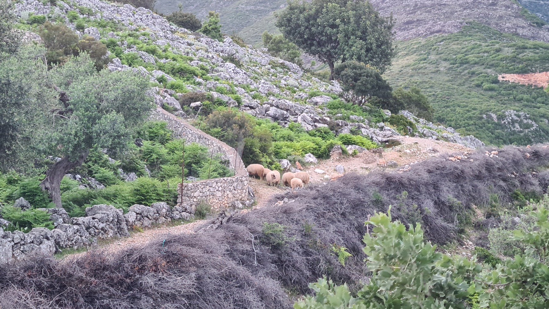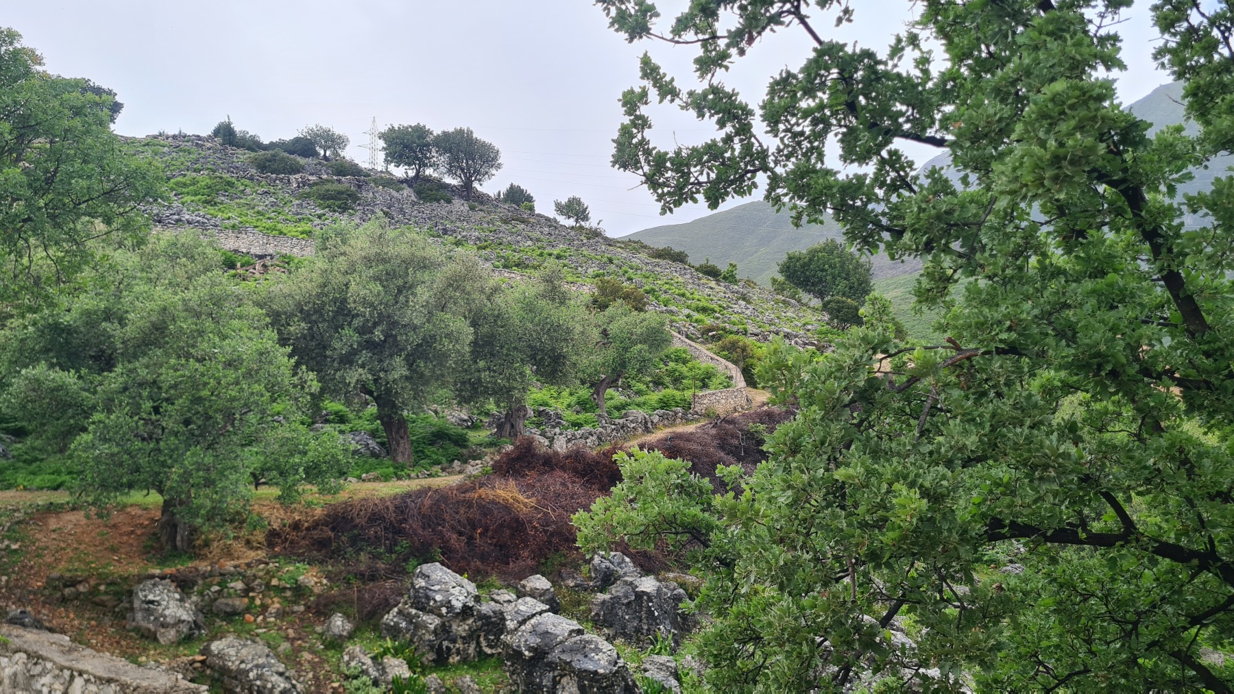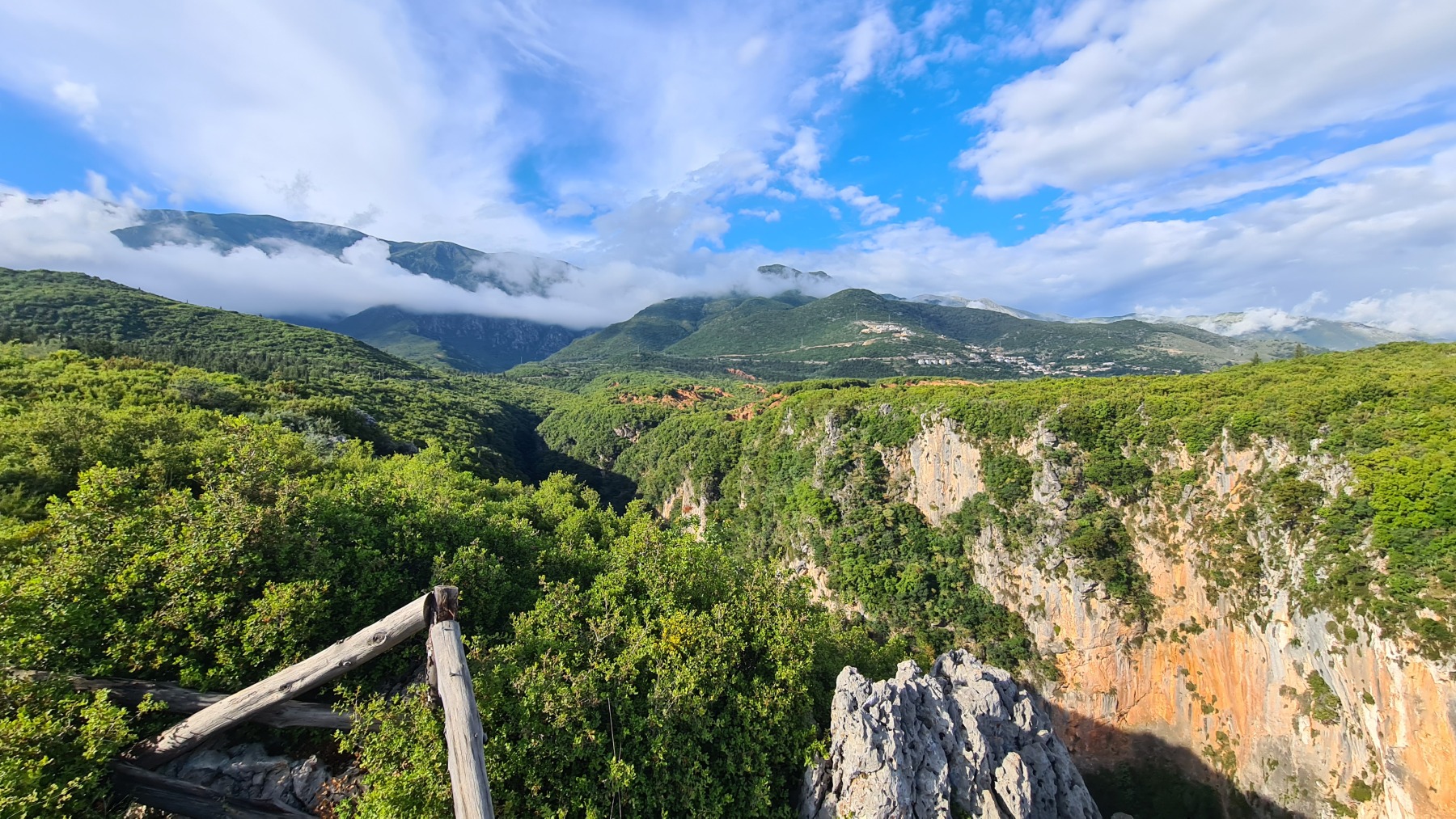 Ce soir nous dormons dans un Airnb dans le hameau d’Ilias, un hameau de quelques maisons au dessus du ravin et de la plage de Gjipe. Nous y avons été accueilli par la mère du propriétaire qui ne parle ni anglais ni français et compense par beaucoup de gentillesse. Elle nous a offert un café (turc) et deux petits verres d’une boisson transparente. Gisèle qui a cru que c’était de l’eau a failli s’étouffer en avalant une rasade de raki.