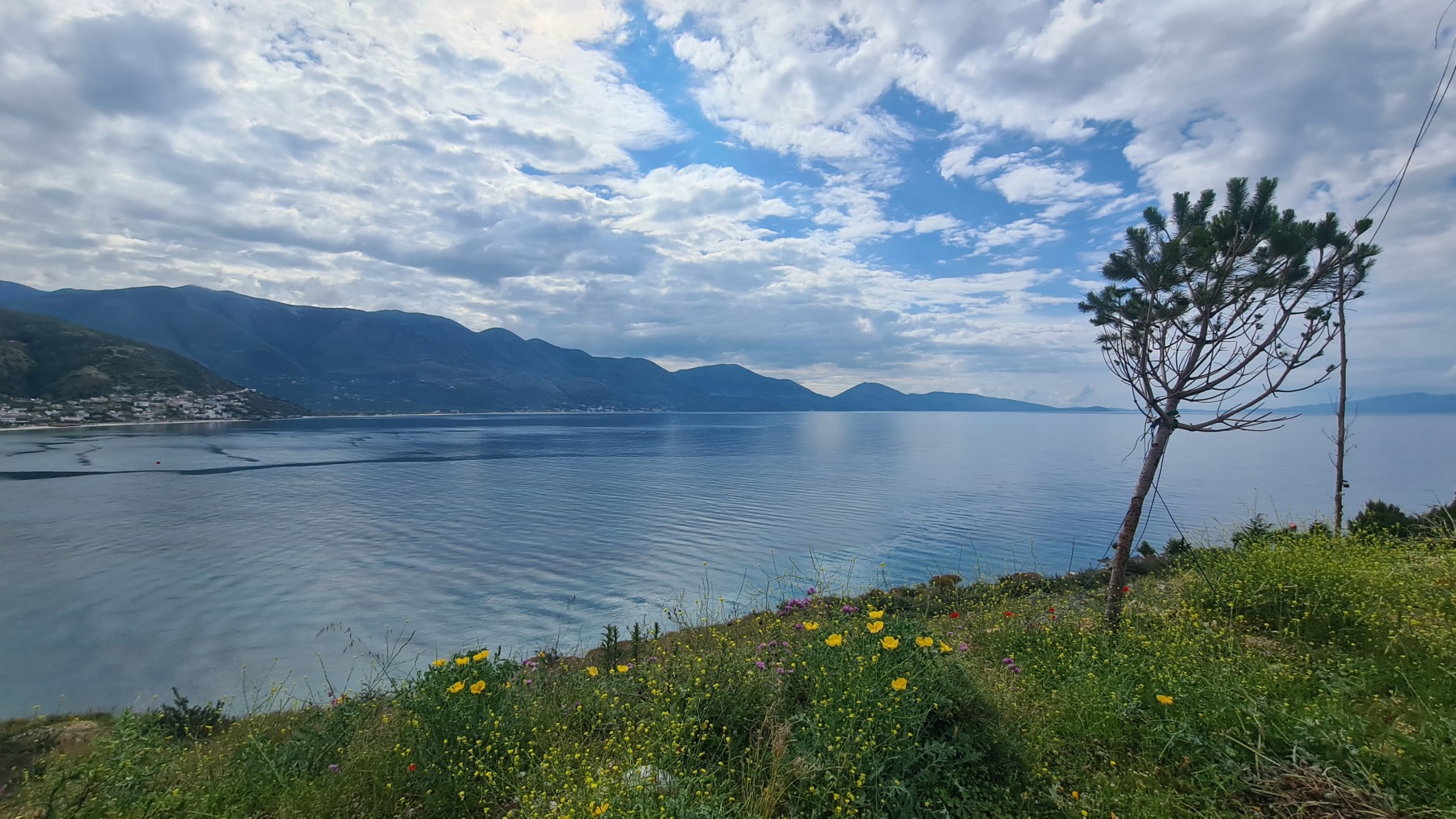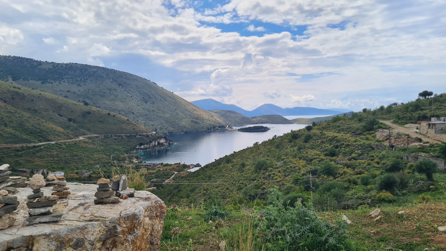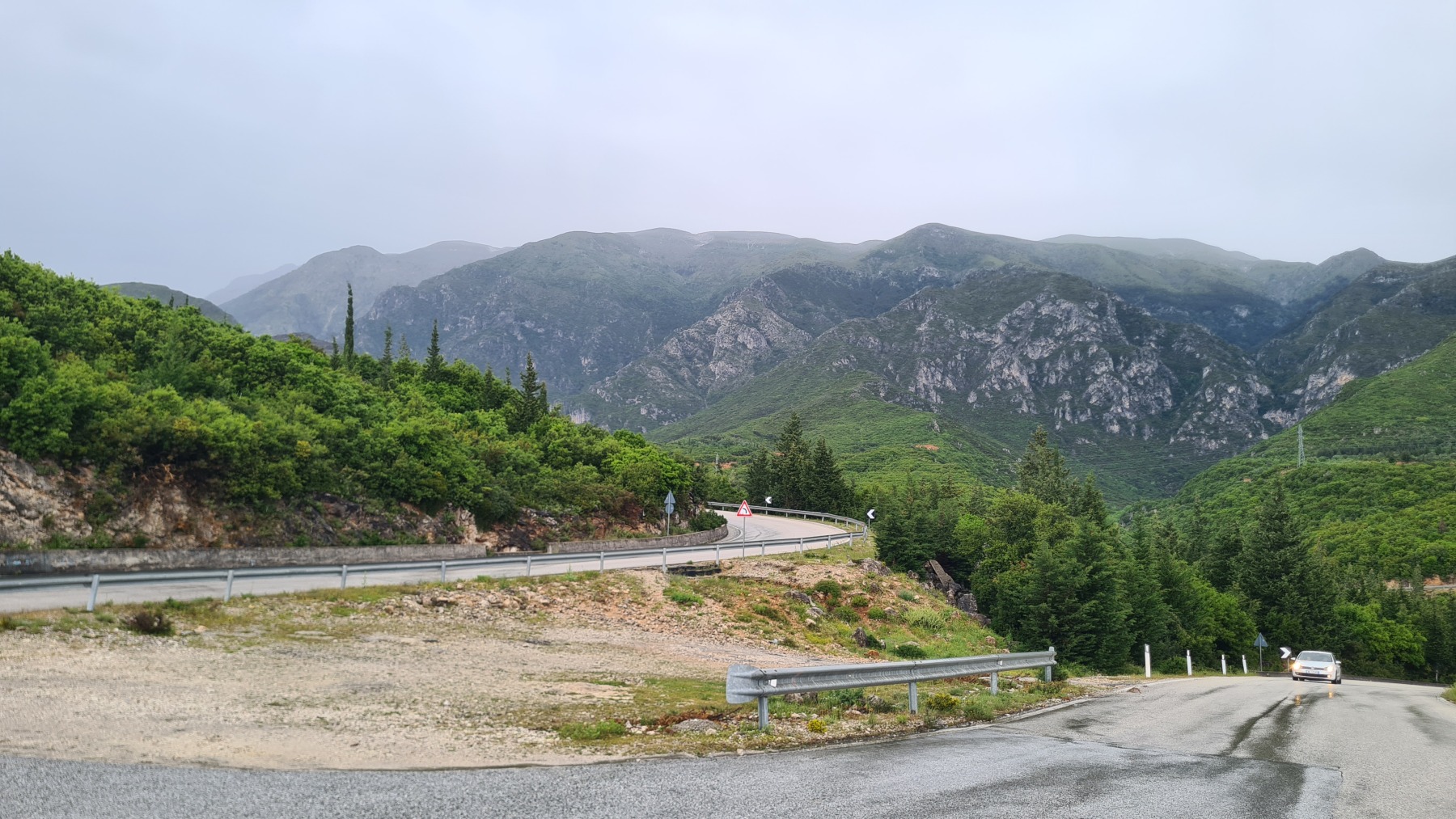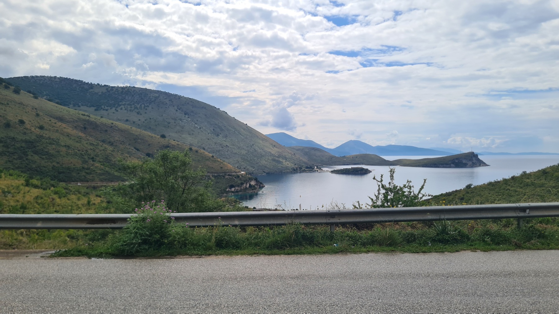 Dès la sortie d’Himarë la pente atteint brutalement les 10%. Quelques kilomètres plus loin la pluie a recommencé à tomber et nous sommes arrivés un peu humides à Vuno où nous avons déjeuné dans un restaurant au bord de la route avant de faire les courses pour le diner et le petit déjeuner de demain dans une de ces micro-épiceries que l’on trouve un peu partout.