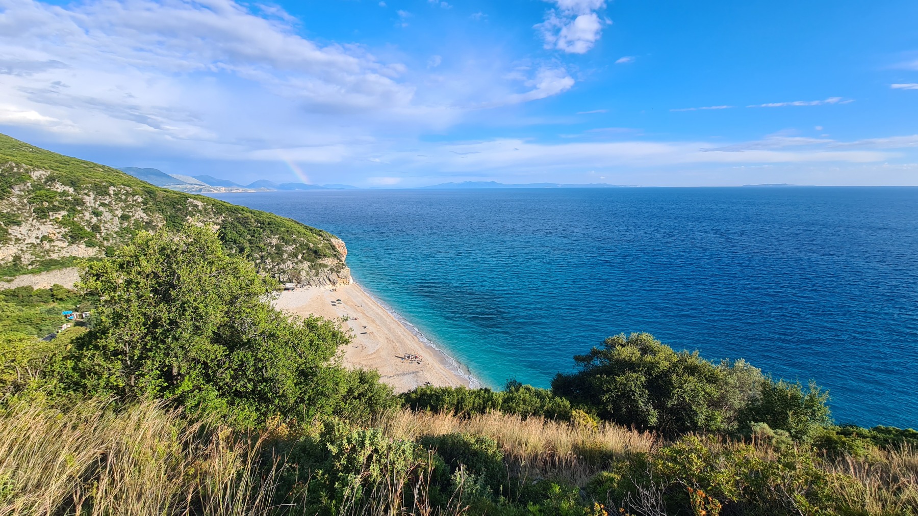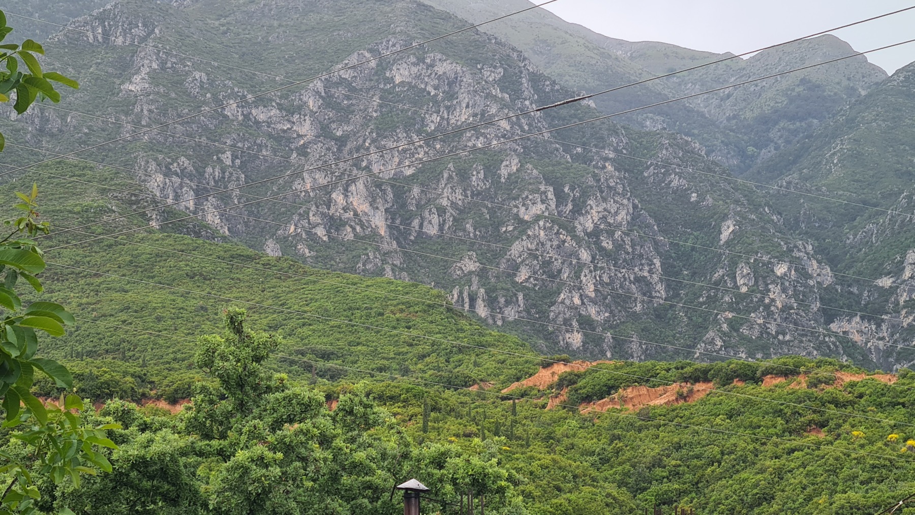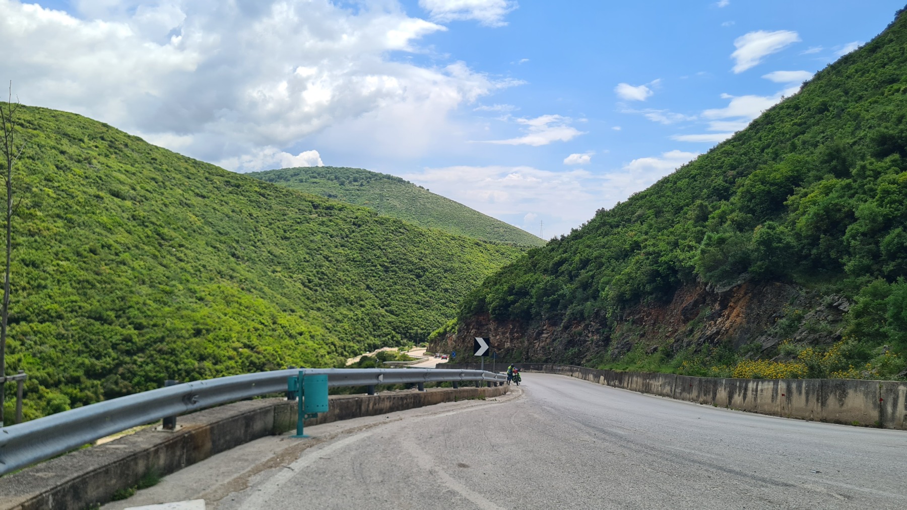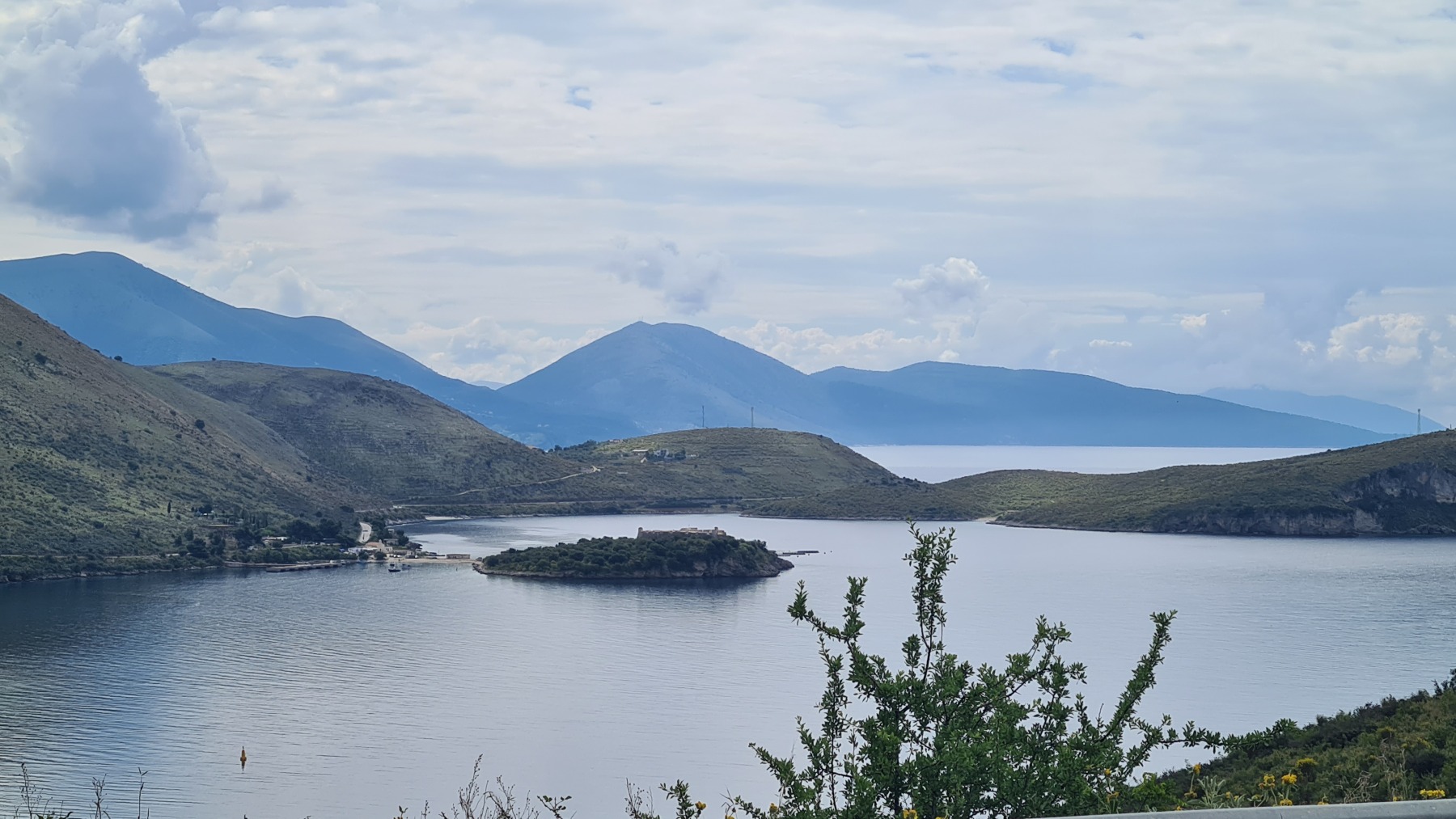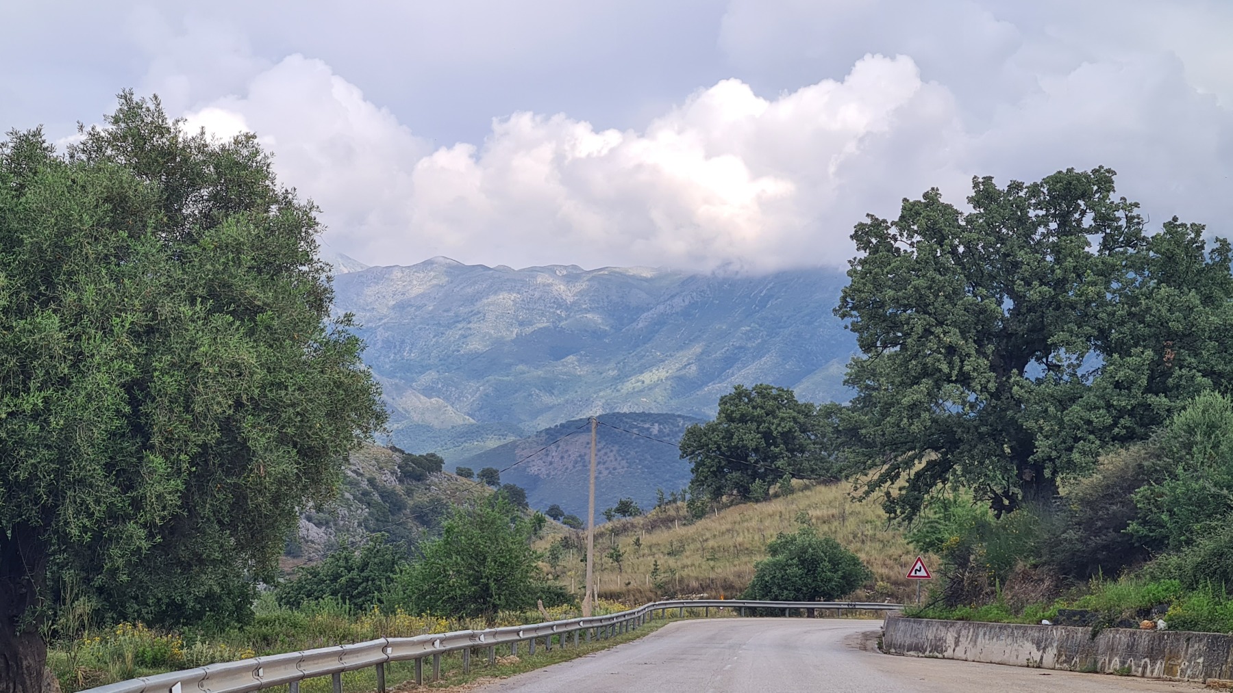 Dès la sortie d’Himarë la pente atteint brutalement les 10%. Quelques kilomètres plus loin la pluie a recommencé à tomber et nous sommes arrivés un peu humides à Vuno où nous avons déjeuné dans un restaurant au bord de la route avant de faire les courses pour le diner et le petit déjeuner de demain dans une de ces micro-épiceries que l’on trouve un peu partout.