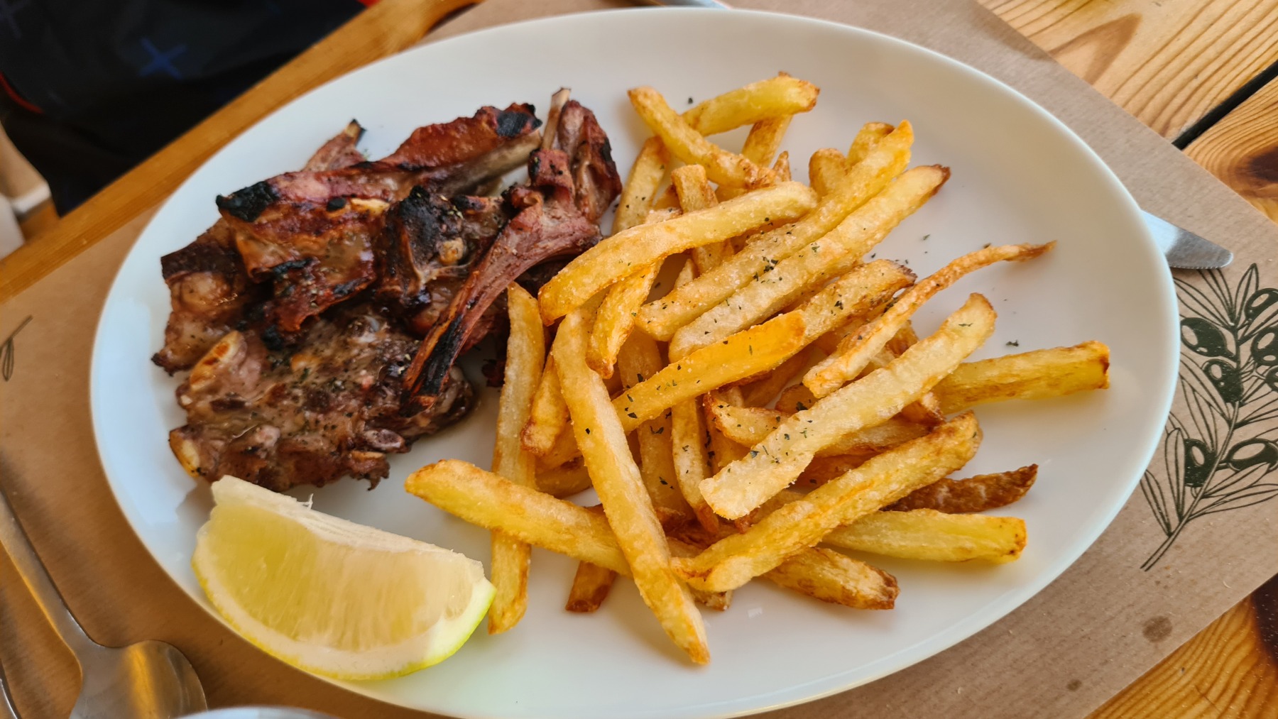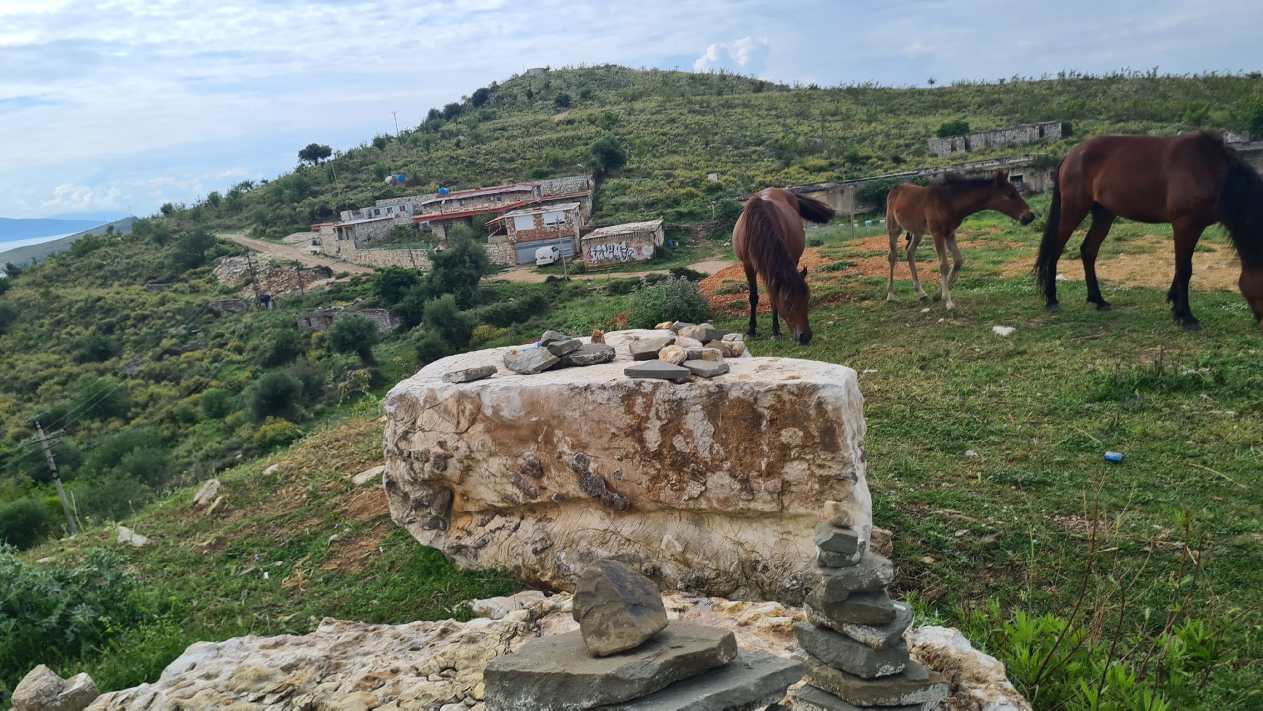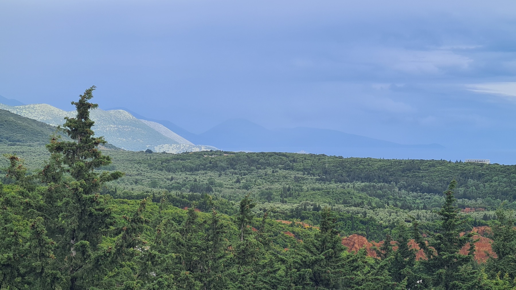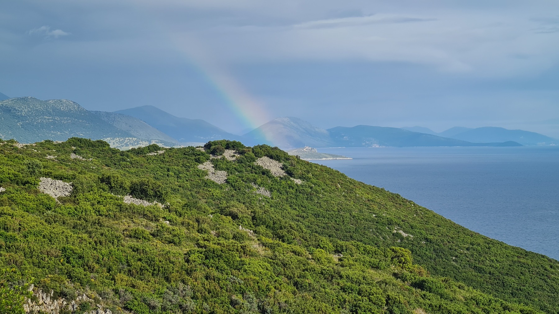 Dès la sortie d’Himarë la pente atteint brutalement les 10%. Quelques kilomètres plus loin la pluie a recommencé à tomber et nous sommes arrivés un peu humides à Vuno où nous avons déjeuné dans un restaurant au bord de la route avant de faire les courses pour le diner et le petit déjeuner de demain dans une de ces micro-épiceries que l’on trouve un peu partout.