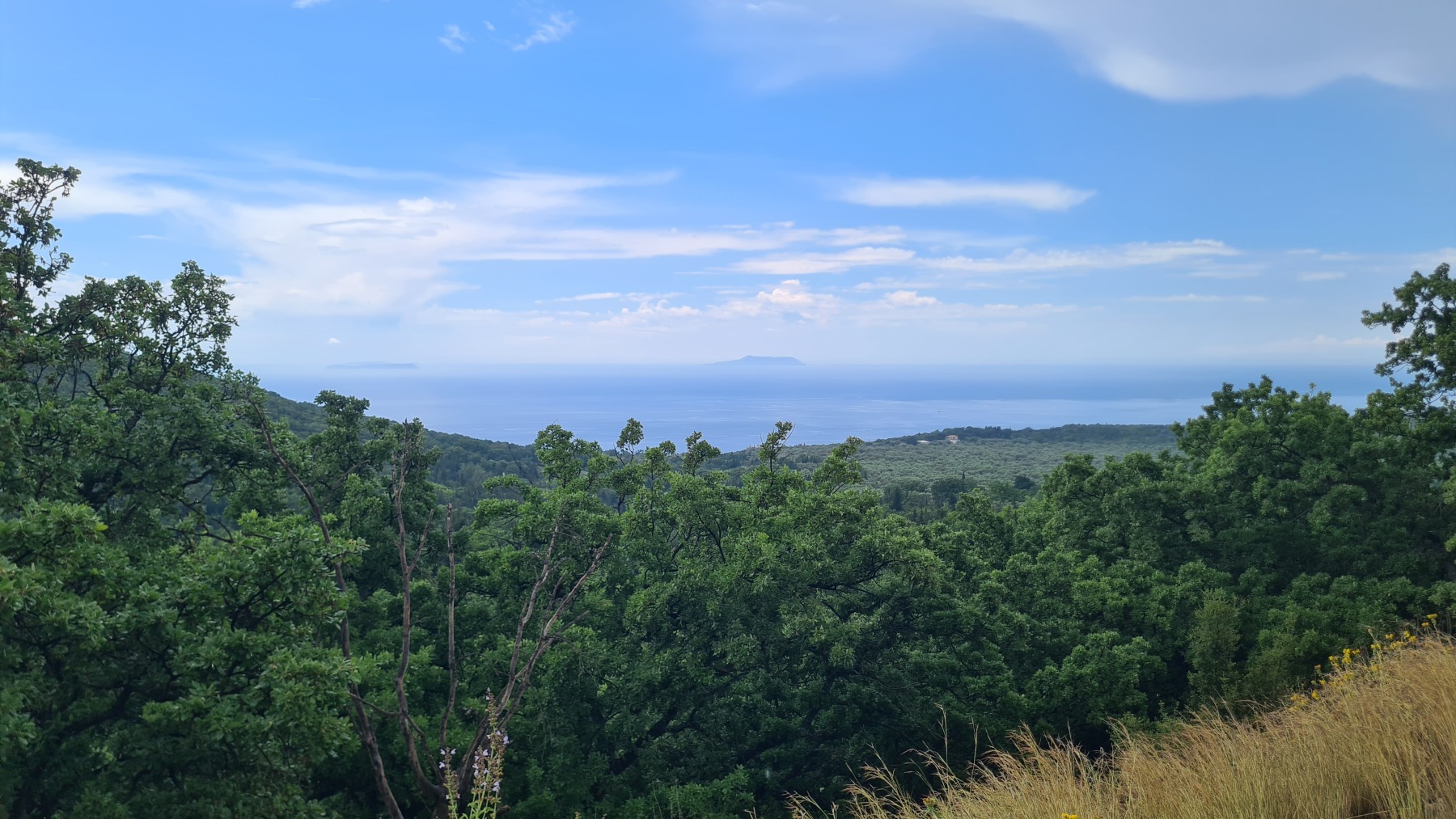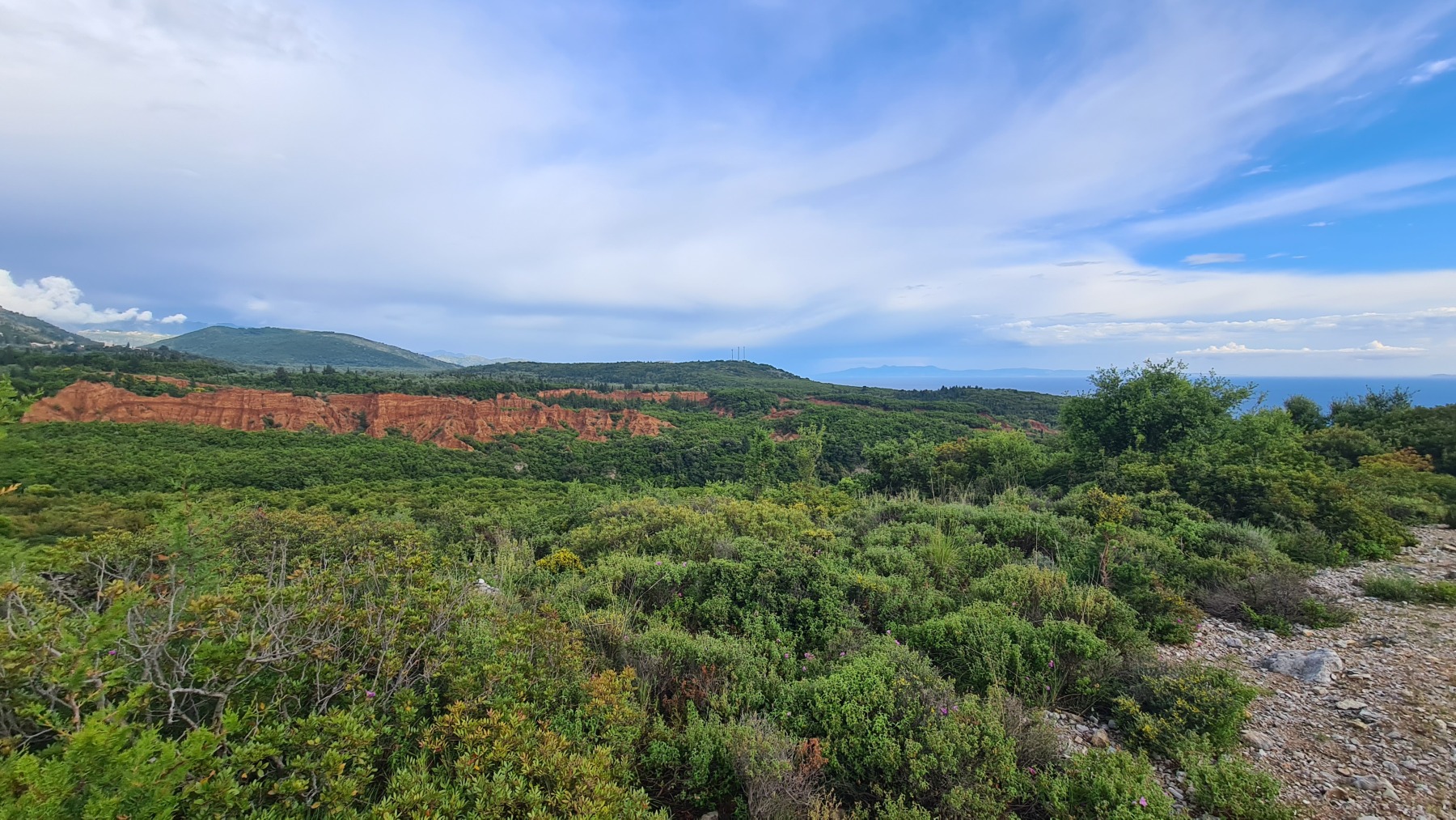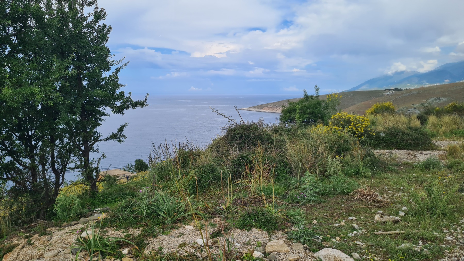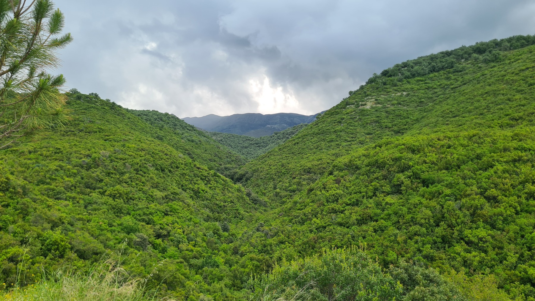 La météo étant de plus en plus menaçante et prévoyant des risques d’orages toute la journée j’avais prévu une nouvelle étape assez courte. On a eu une première alerte avec quelques goutes quelques kilomètres après le départ juste en face du château de Porto Palermo et on a trouvé refuge dans un café judicieusement placé.