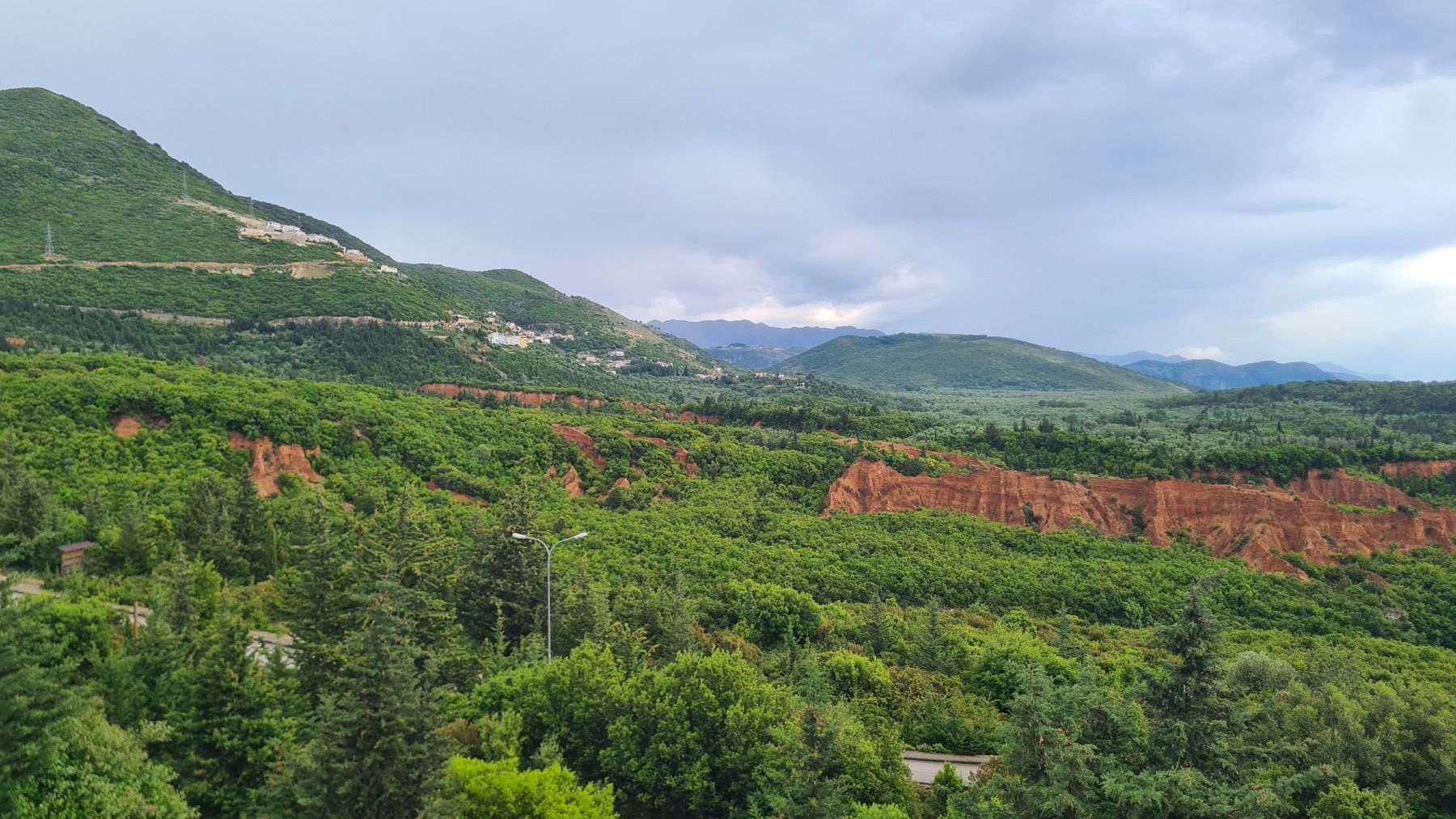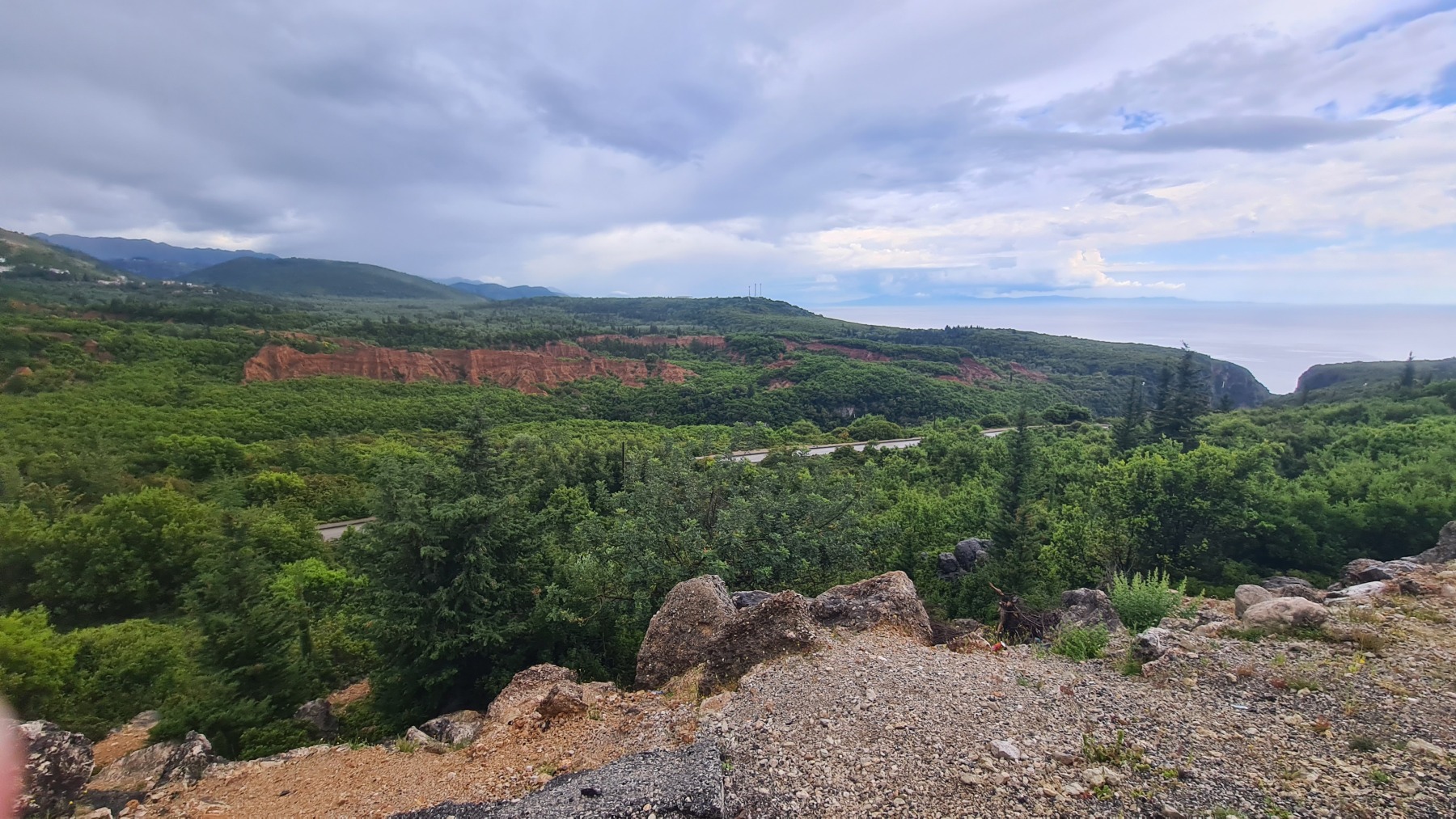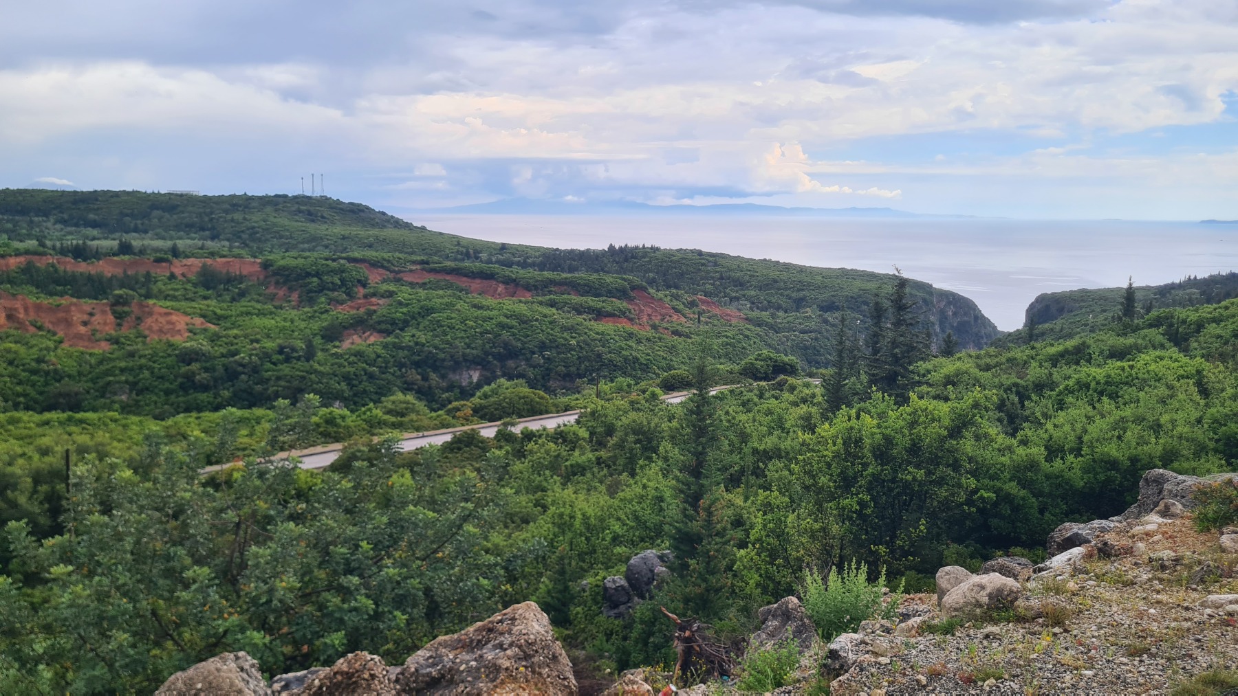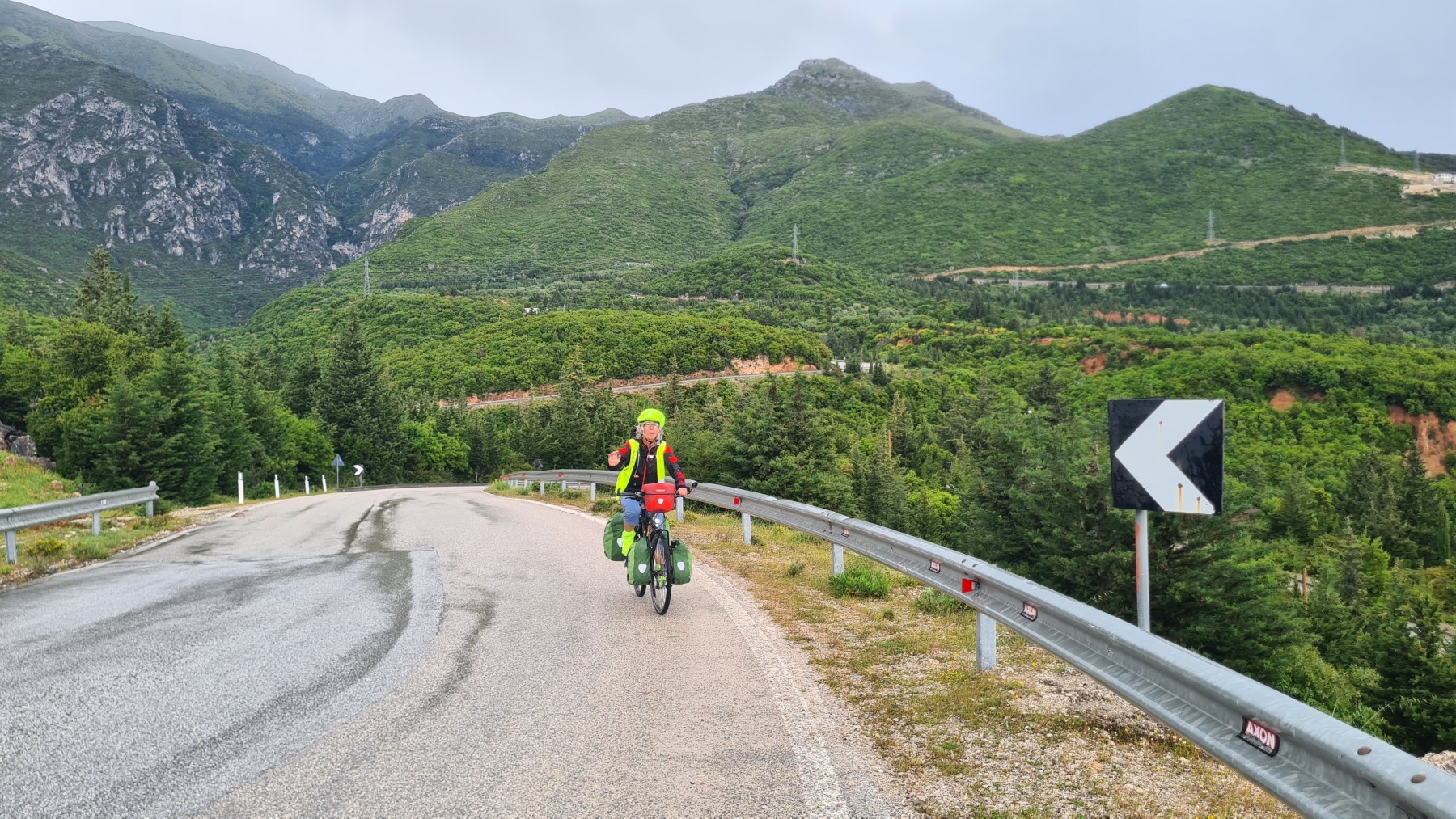 Au point de vue suivant on a rencontré deux jeunes cyclotouristes qui descendent vers le sud. L’un est parti de Bordeaux destination Istanbul, l’autre est parti d’Angoulème pour Athènes et ils font la route ensemble. Ils apprécient les maisons en construction abandonnées qu’on voit un peu partout et qui leur fournissent un abri pour la nuit…