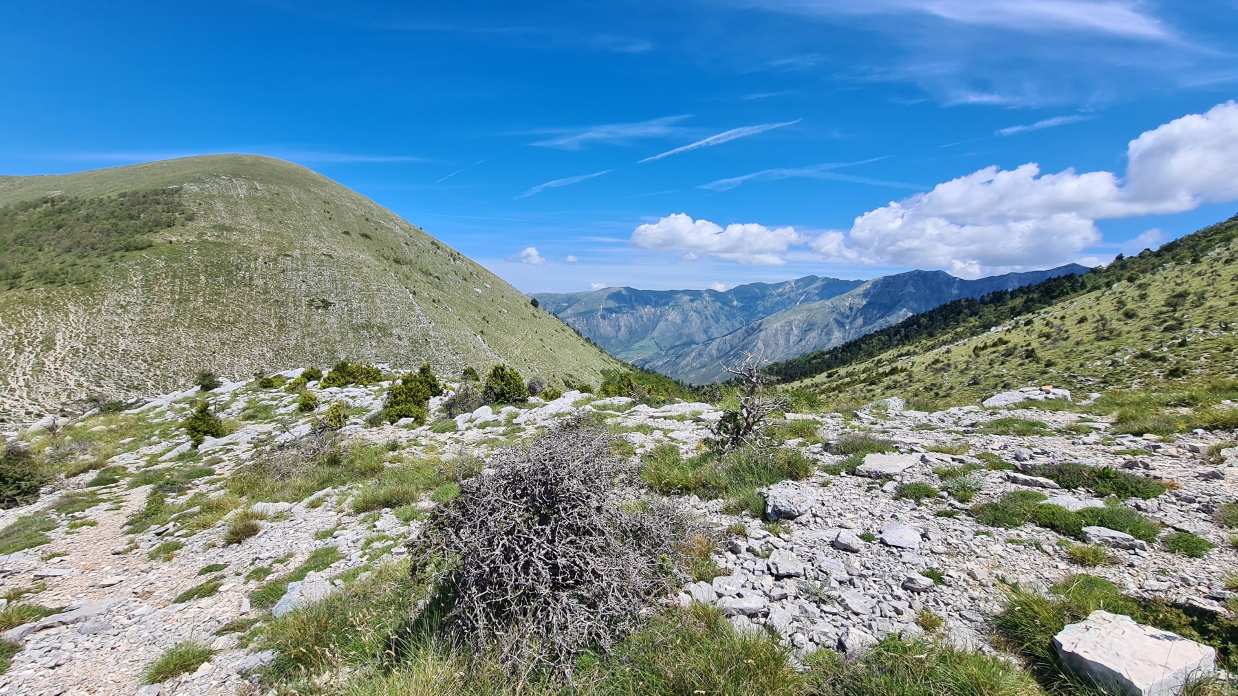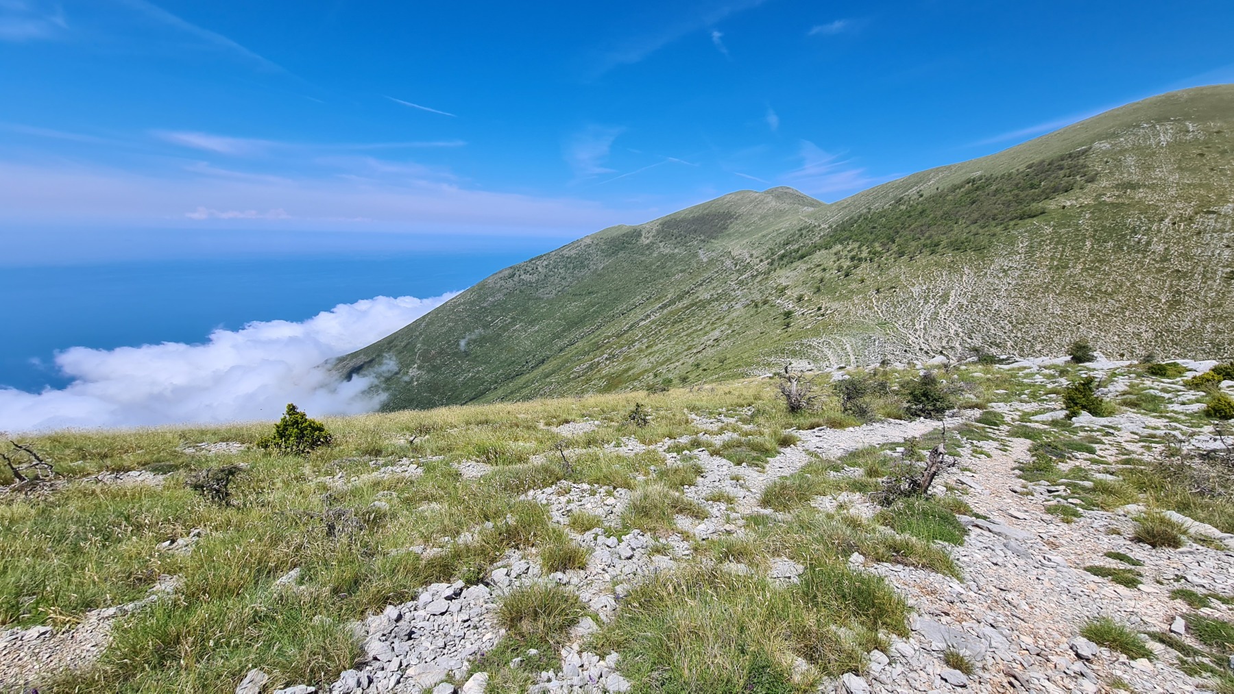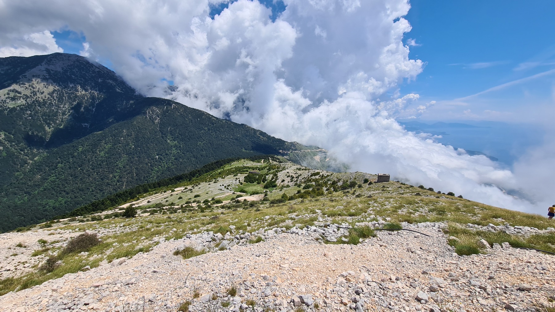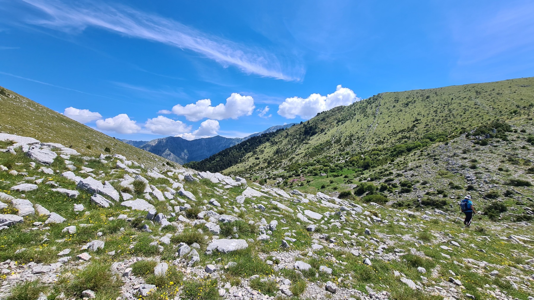 La randonnée s’est avérée bien agréable. Elle débute par une belle montée dans la forêt avant de déboucher sur le col de Thellë et sa vue sur la mer et la montagne (il y a plusieurs sommets à plus de 2000 m très proches de la mer). Elle se poursuit sur un sentier alternant crêtes et balcons jusqu’au Maja Thanasit, défiguré, il est vrai, par ses antennes qui surplombe la mer de ses 1352 m. Le retour se fait par la piste d’accès aux antennes qui nous descend jusqu’au col de Llogara, lieu de nos exploits d’hier que l’on voit très bien de la piste (ainsi que le chantier du tunnel qui permettra aux camions d’éviter la route du col), puis par la route et un sentier jusqu’à notre bungalow.