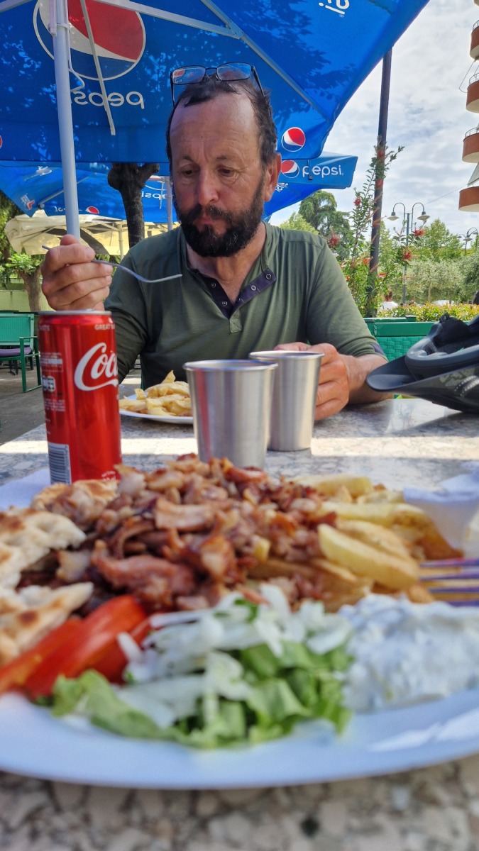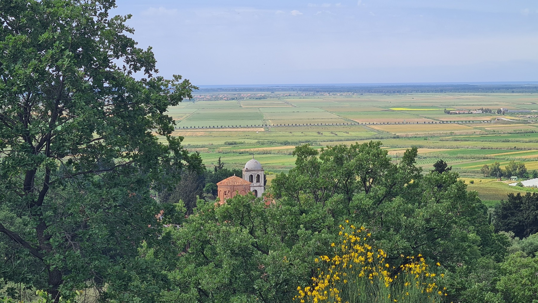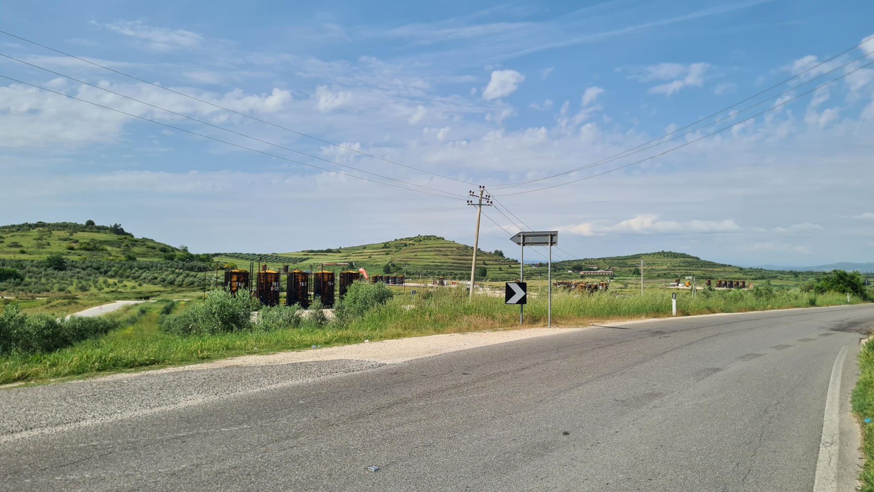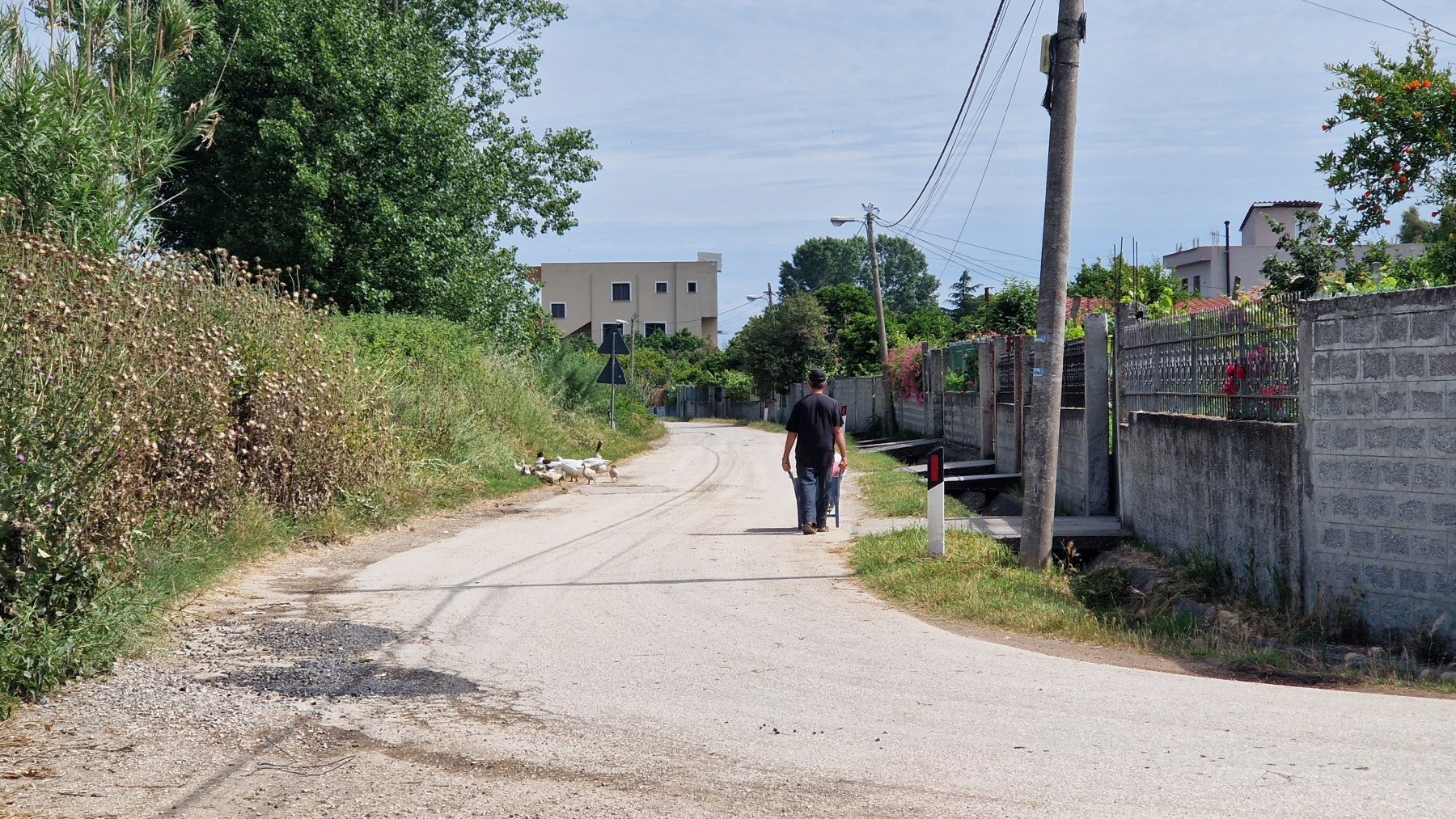 Le trajet entre notre hébergement du matin et Apollonia sur une petite route goudronnée qui longe l’autoroute était parfait. Entre Apollonia et Fier Brouter nous a trouvé une piste caillouteuse un peu limite avant de rejoindre un village dans lequel nous avons du faire demi tour dans une petite route qui devenait privée.