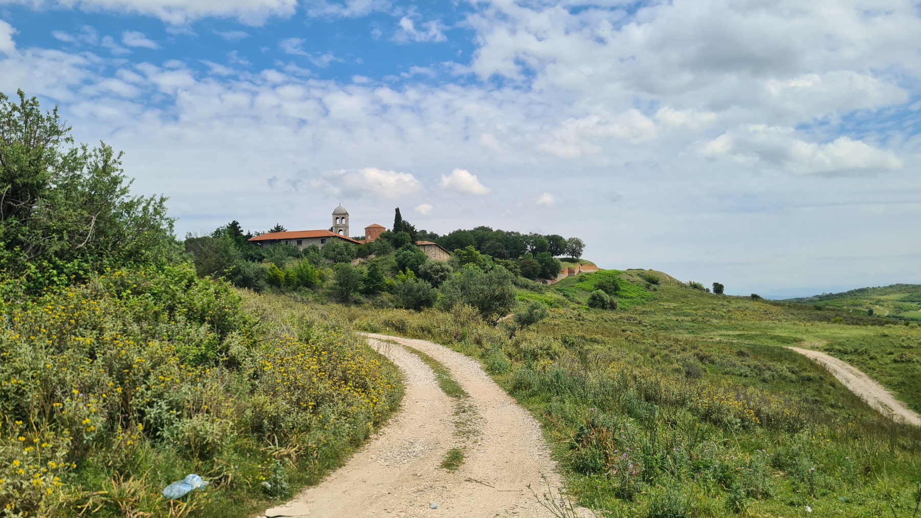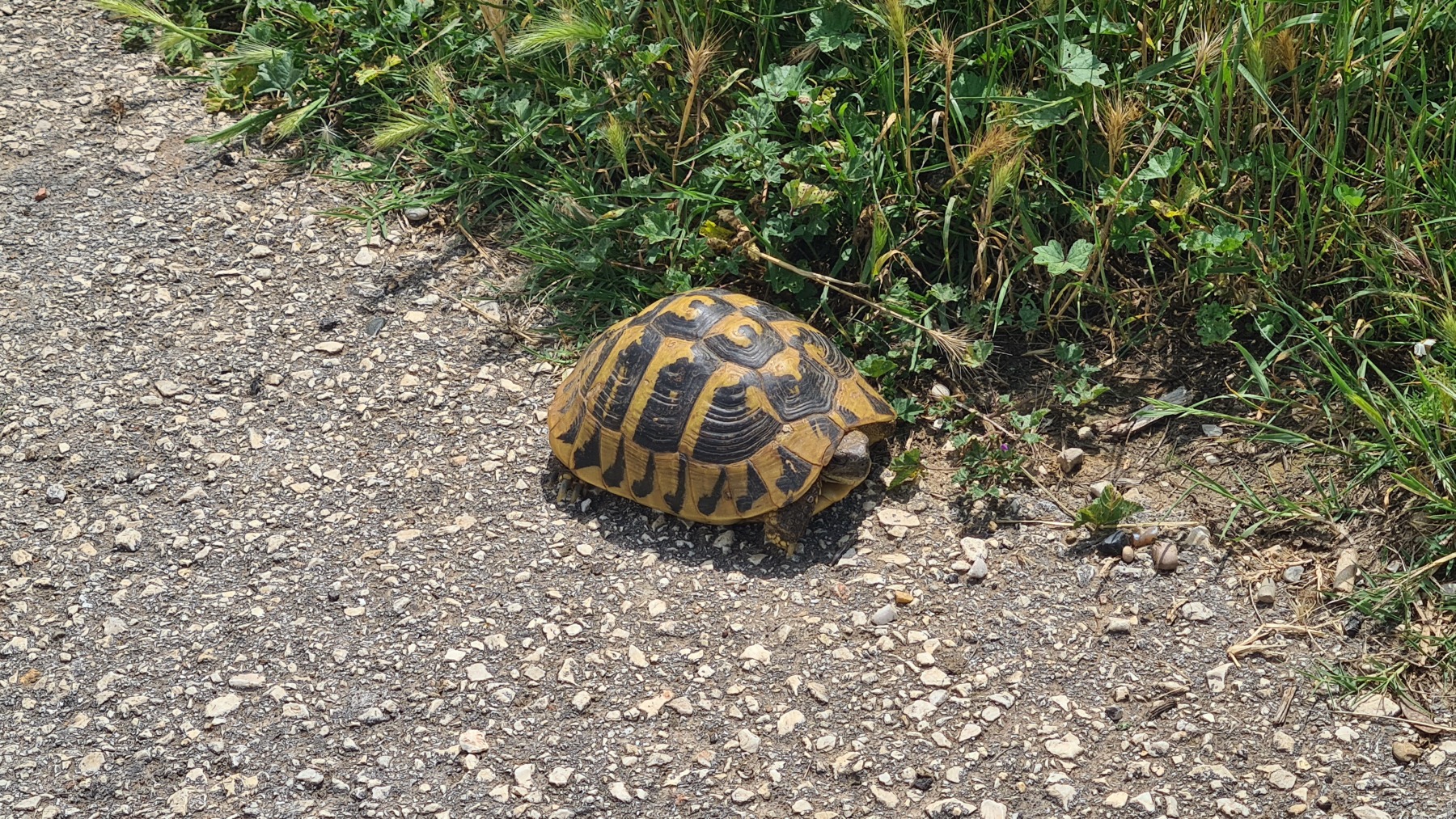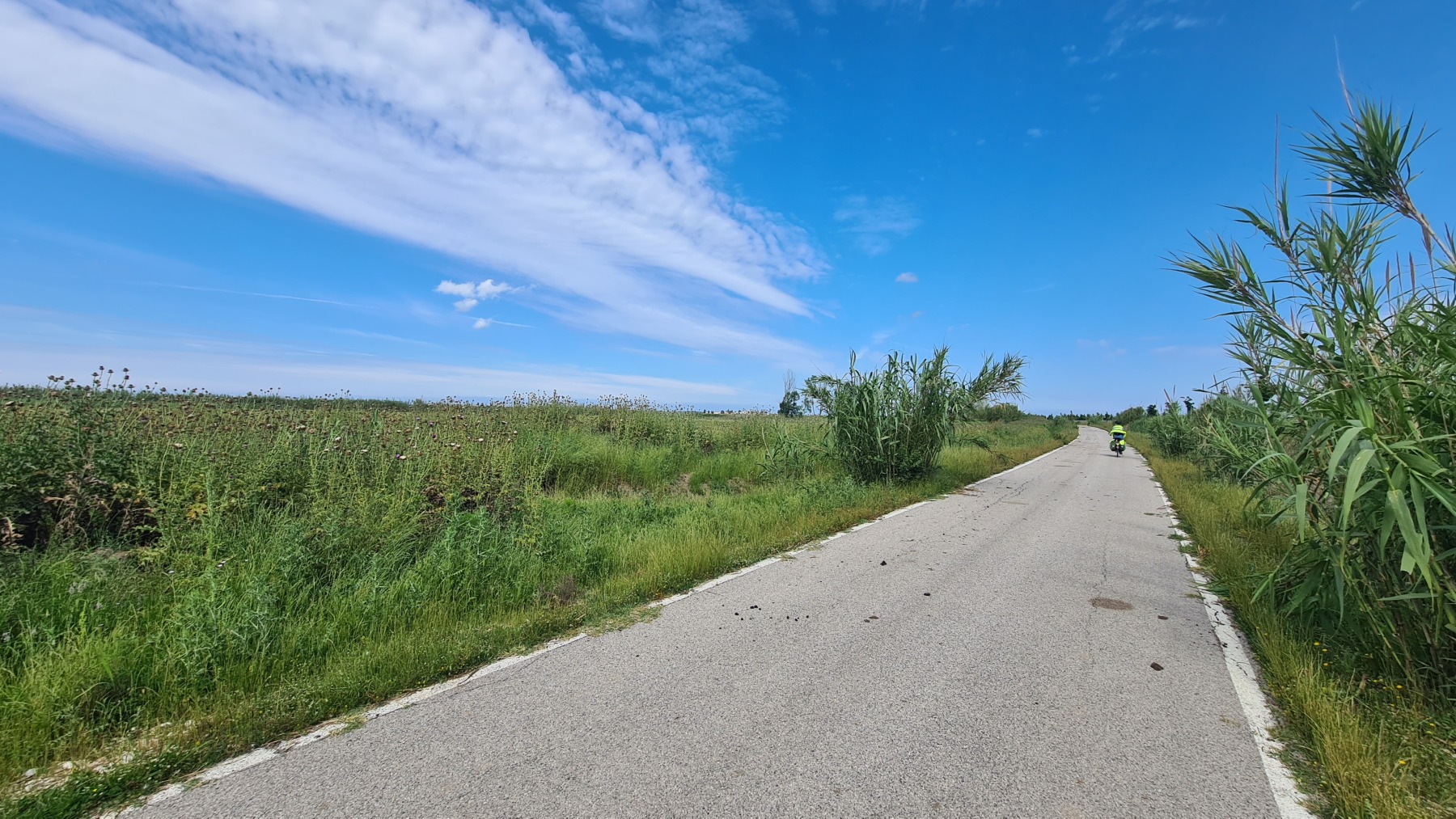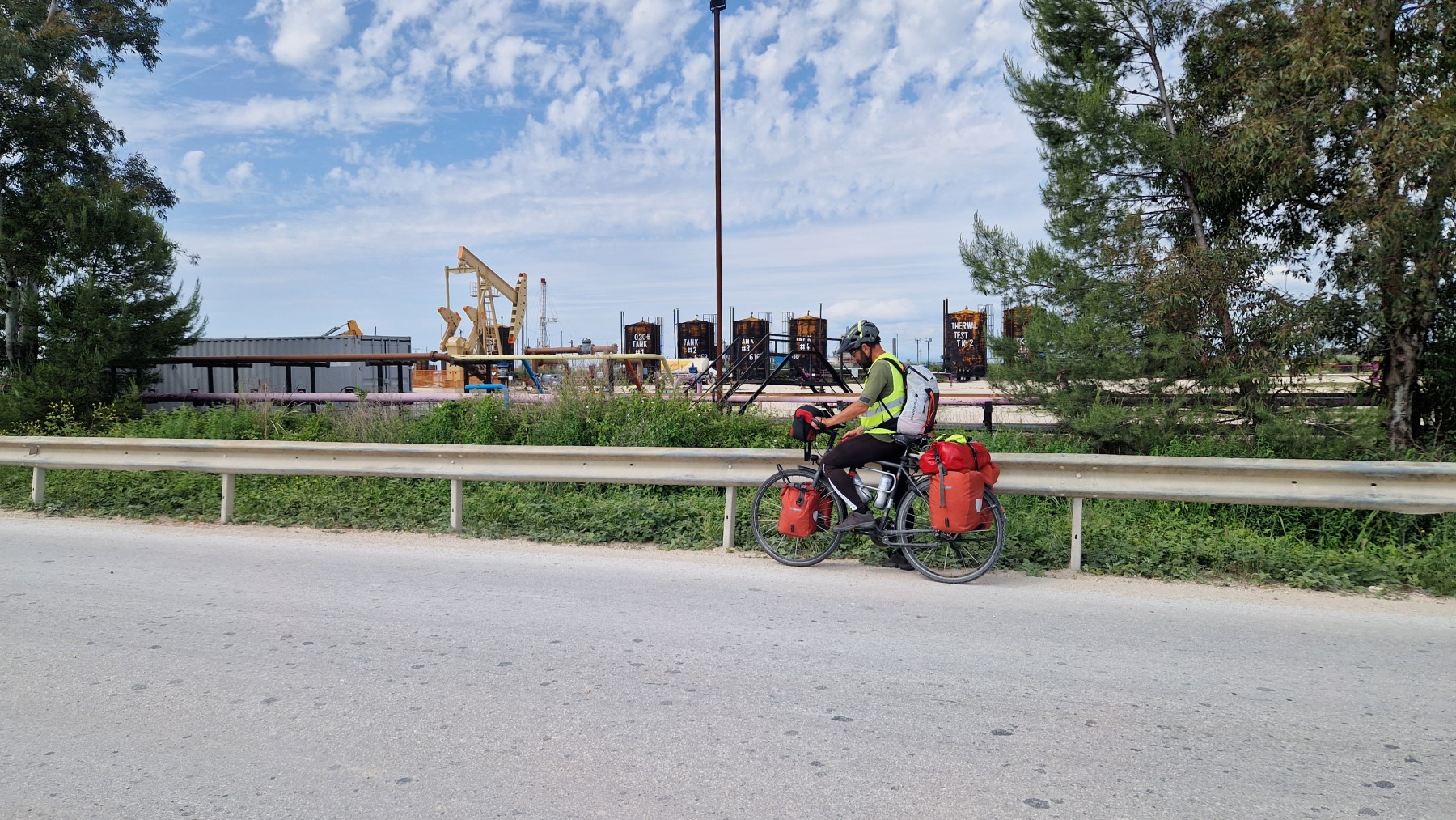 Le trajet entre notre hébergement du matin et Apollonia sur une petite route goudronnée qui longe l’autoroute était parfait. Entre Apollonia et Fier Brouter nous a trouvé une piste caillouteuse un peu limite avant de rejoindre un village dans lequel nous avons du faire demi tour dans une petite route qui devenait privée.