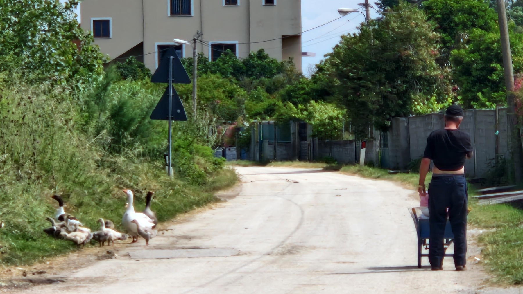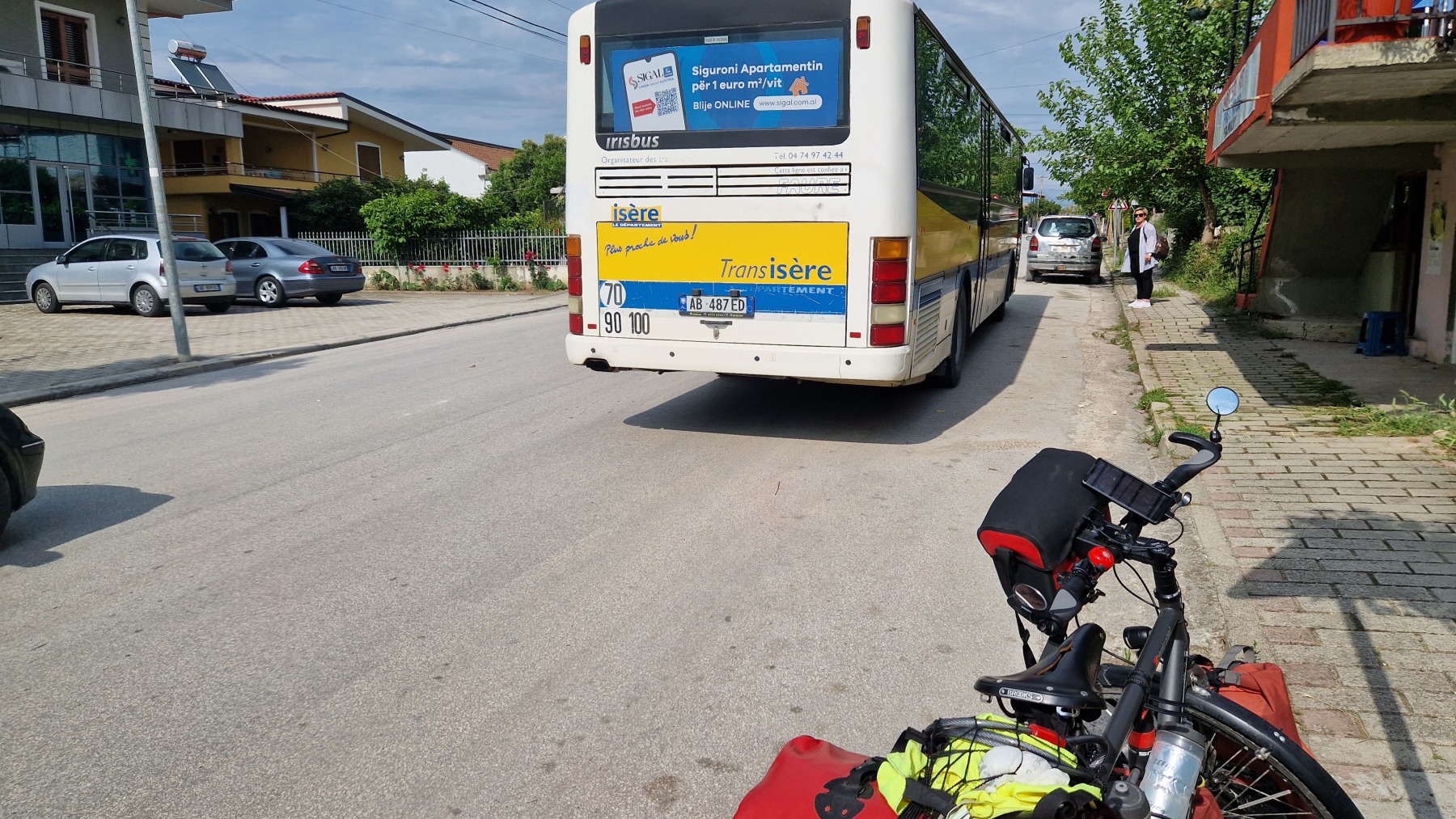 Je pense que le paramétrage de Brouter (qui évite les nationales et privilégie les itinéraires vélo et routes secondaires et agricoles) que j’utilise habituellement n’est pas vraiment adapté à un pays comme l’Albanie. Ici, à part Eurovelo 8, il n’y a quasiment pas d’itinéraires vélo et les données OpenStreetMap concernant la viabilité des routes agricoles et leur caractère public/privé manquent de fiabilité. A l’inverse, les vélos sont relativement bien respectés sur les nationales qui sont larges, moins fréquentées qu’en France, ont souvent une bande latérale et sont empruntées non seulement par les voitures, camions et motos mais aussi par des tracteurs, des remorques tractés par des motoculteurs, des bergers avec leurs troupeaux et quelques ânes.
