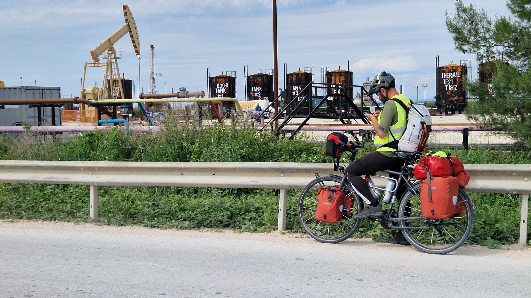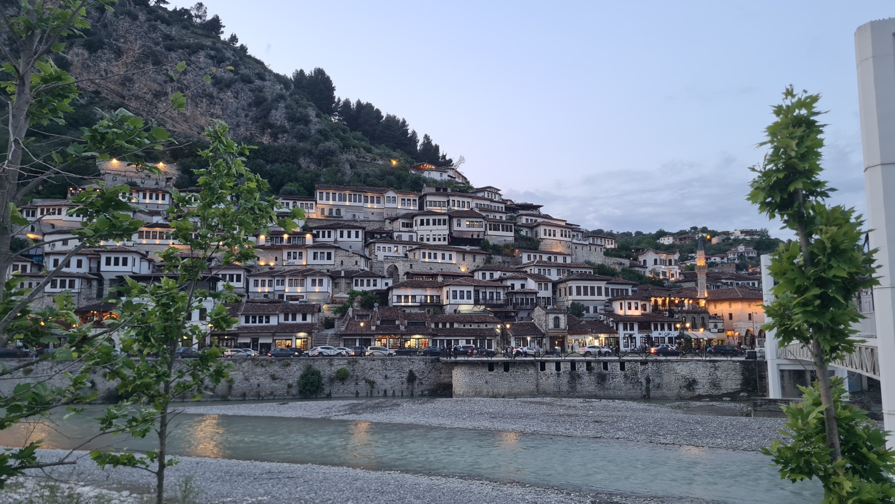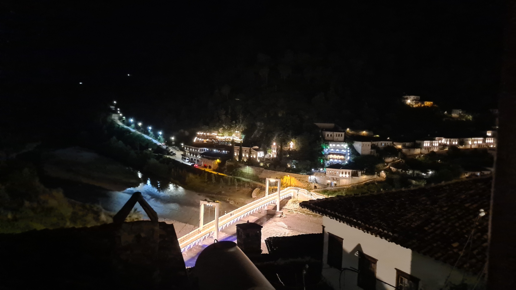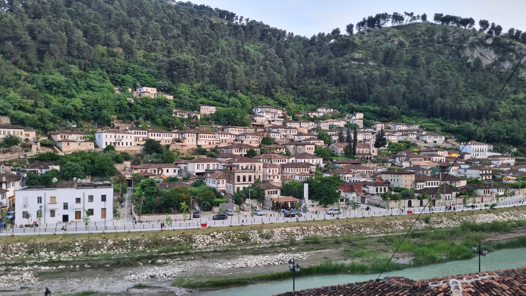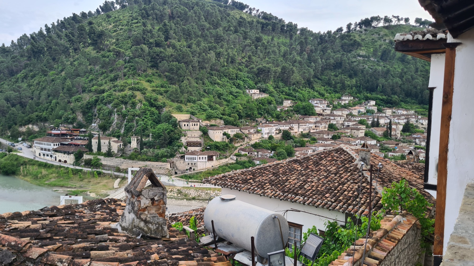 Les premiers kilomètres après Fier étaient également parfaits, sur de petites routes de campagne où on rencontrait plus de volailles en vadrouille (poules, canards, oies, pintades, …) que de voitures. Tout allait bien jusqu’à ce que Brouter veuille nous faire prendre une route privée de Bankers Petroleum, la compagnie canadienne à capitaux chinois qui exploite 95% des ressources en pétrole albanaises. On a donc fini sur la nationale qui conduit à Berat ce qui a rallongé l’étape et nous sommes arrivés vers 18h00.