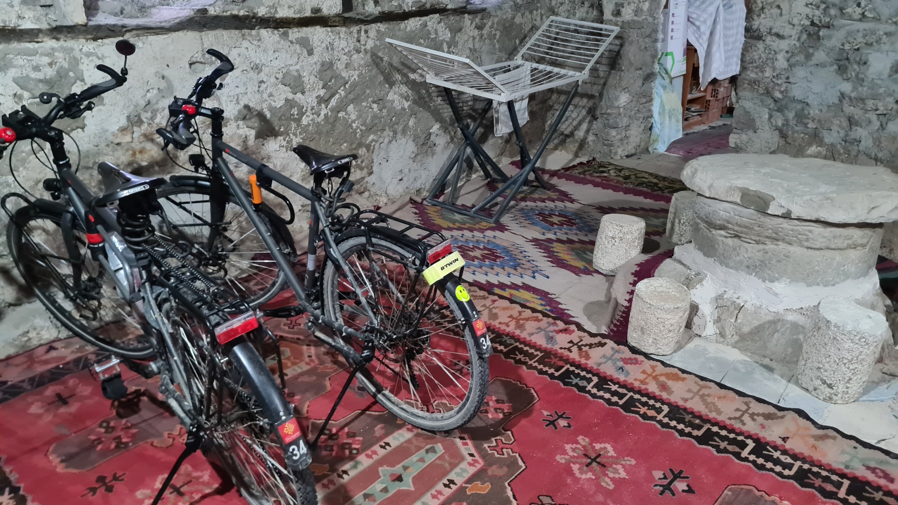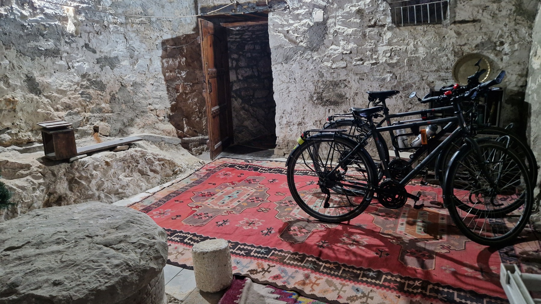 Nous logeons dans une maison du quartier historique de Mangalem qui est bâti à flanc de colline et il a fallu porter bagages et vélos dans les ruelles en escalier qui montent à la maison mais l’endroit en vaut vraiment la peine.