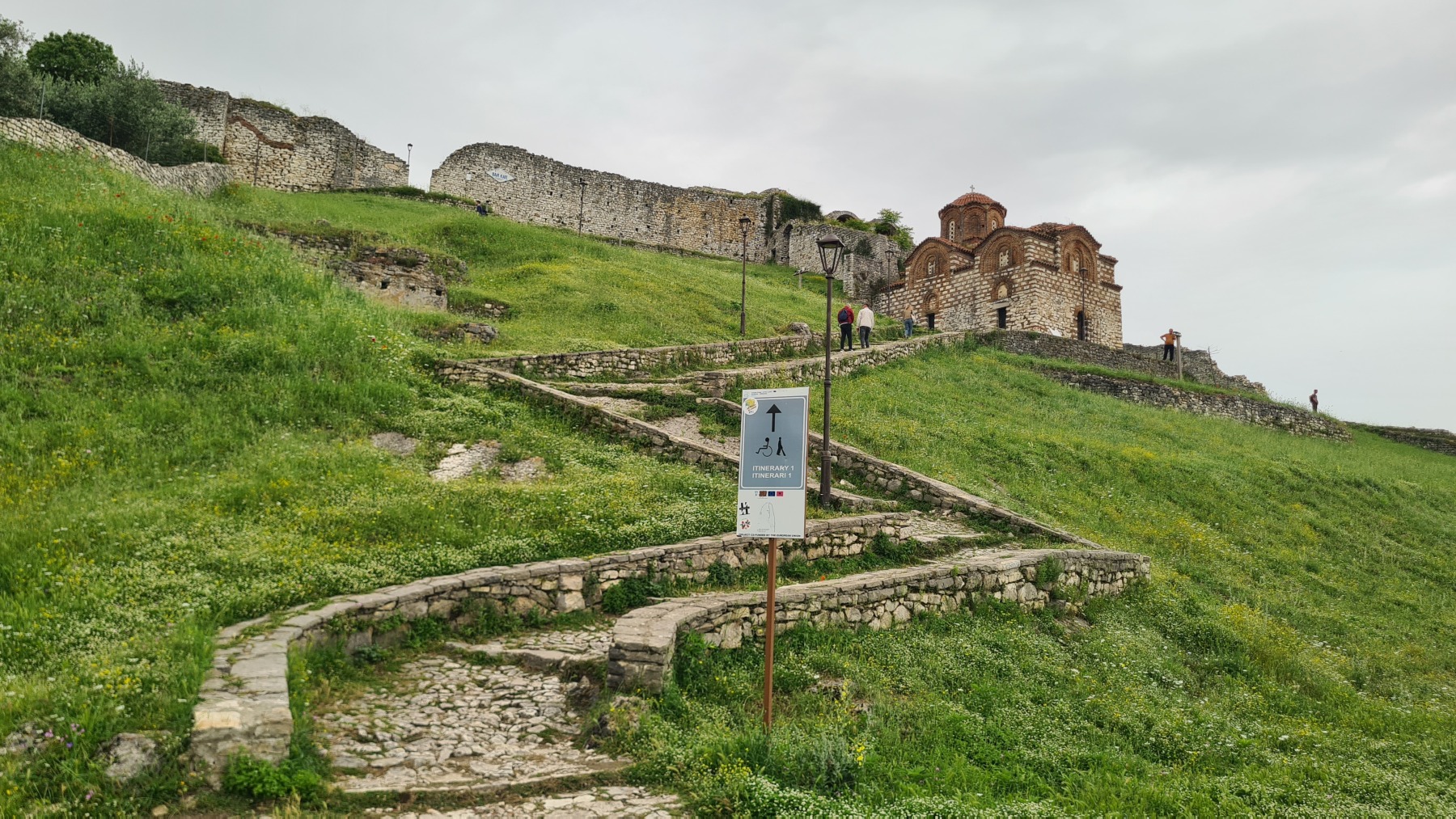 Aujourd’hui nous nous sommes promenés dans les quartiers historiques de Berat et plus particulièrement sa citadelle. C’est une vraie journée de repos puisque nous n’avons marché que 7 km !