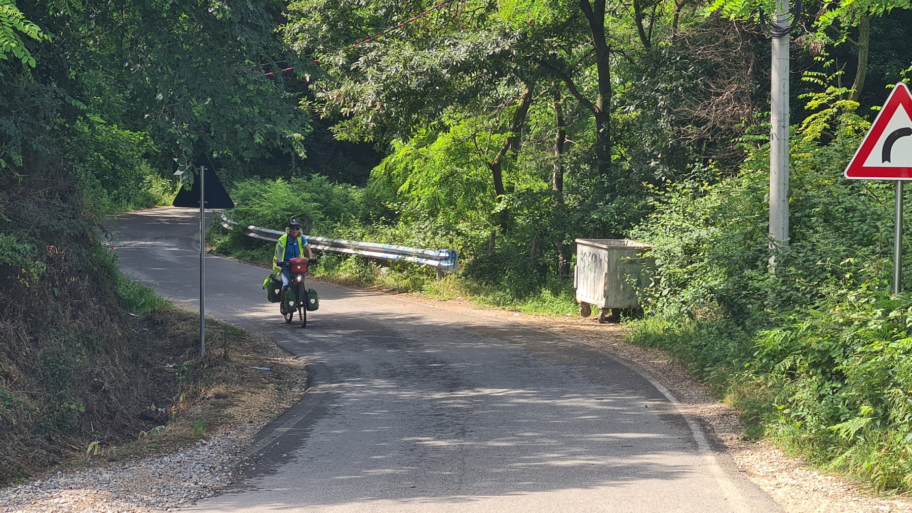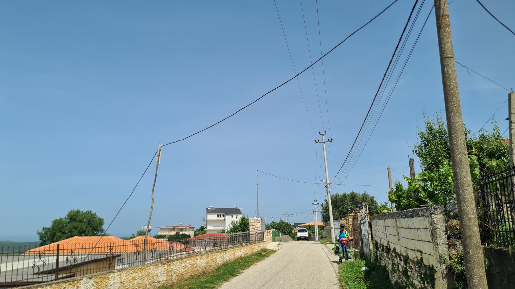 C’est également à Thumanë que nous avons rejoint Eurovelo 8 et nous y avons vu trois paires de cyclotouristes, notamment un couple d’Anglais. Le monsieur, très digne sur son vélo m’a demandé : « warn, isn’t it » avec un accent digne des cassettes de cours d’anglais.