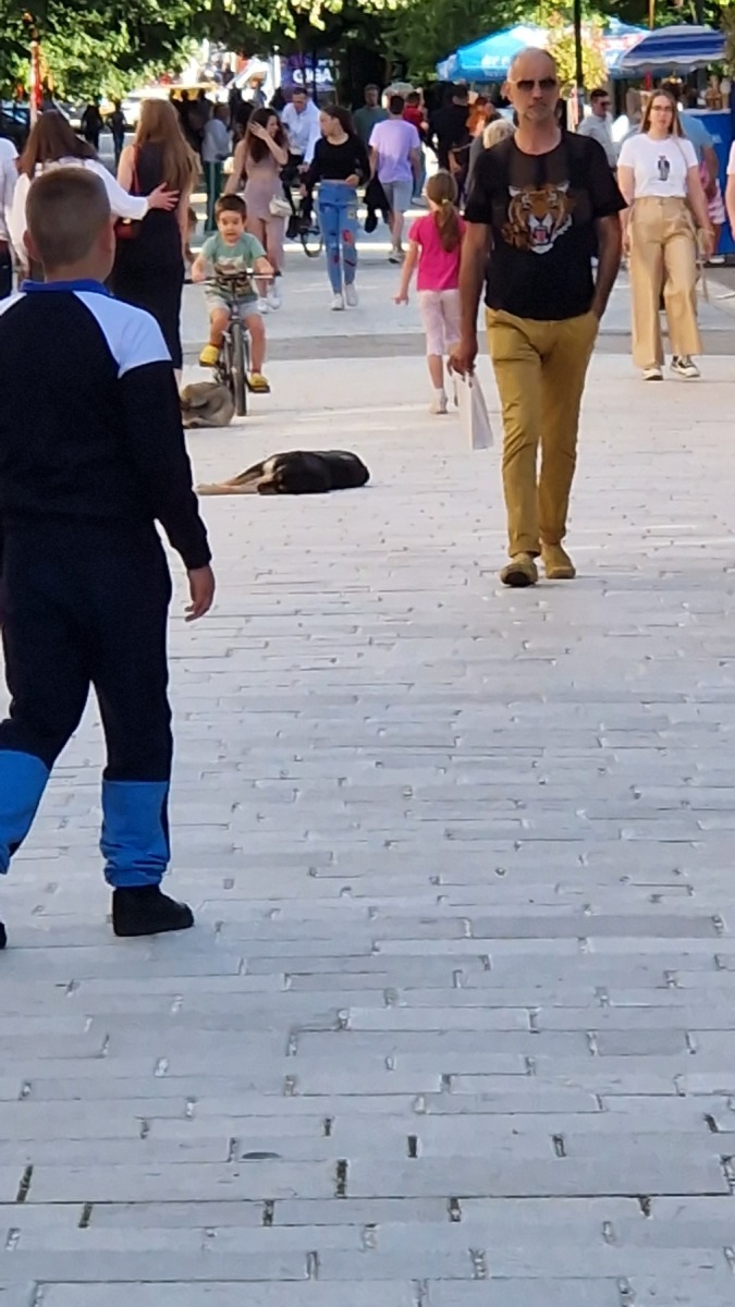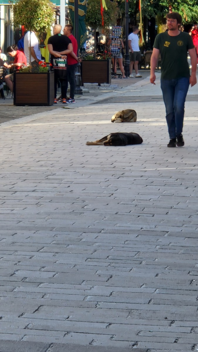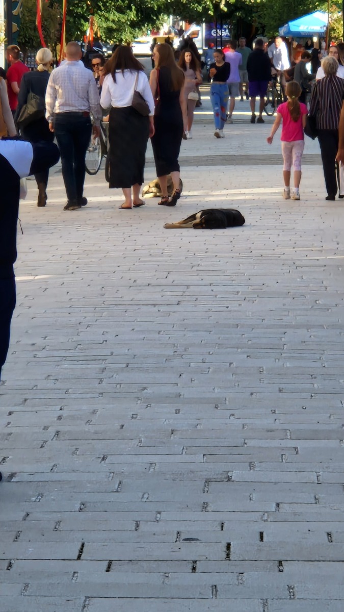 Depuis que nous sommes dans les Balkans nous voyons beaucoup de chiens en liberté et bon nombre d’entre eux sont assoupis au soleil, parfois au beau milieu de la route. Gisèle en a pris en photo dans les rues de Celinje.