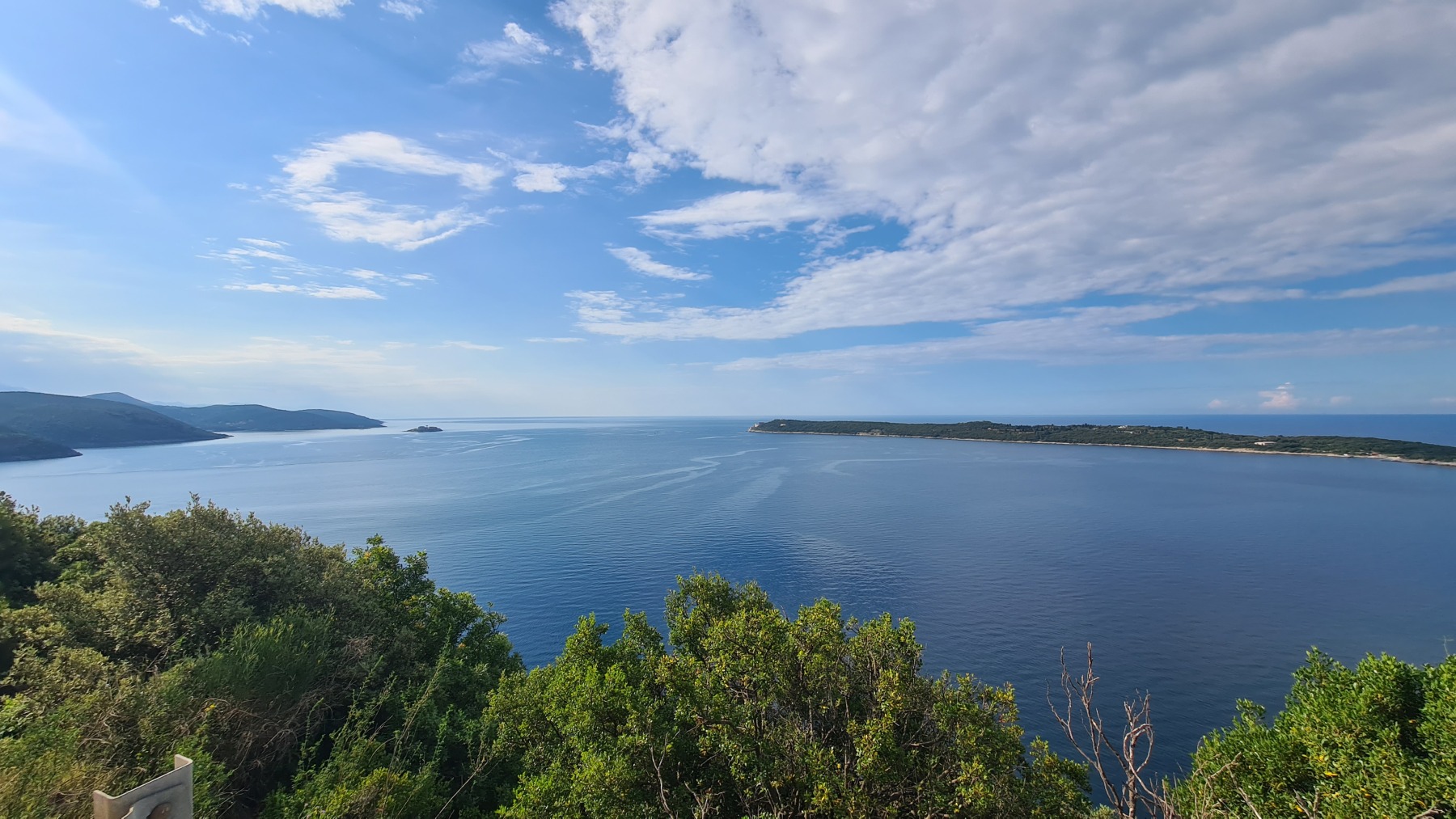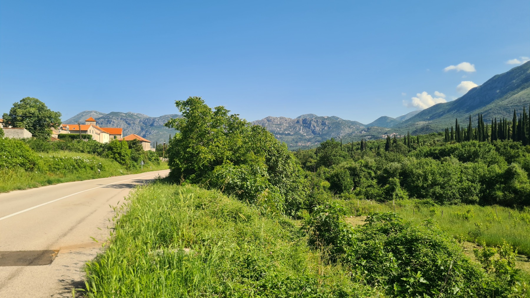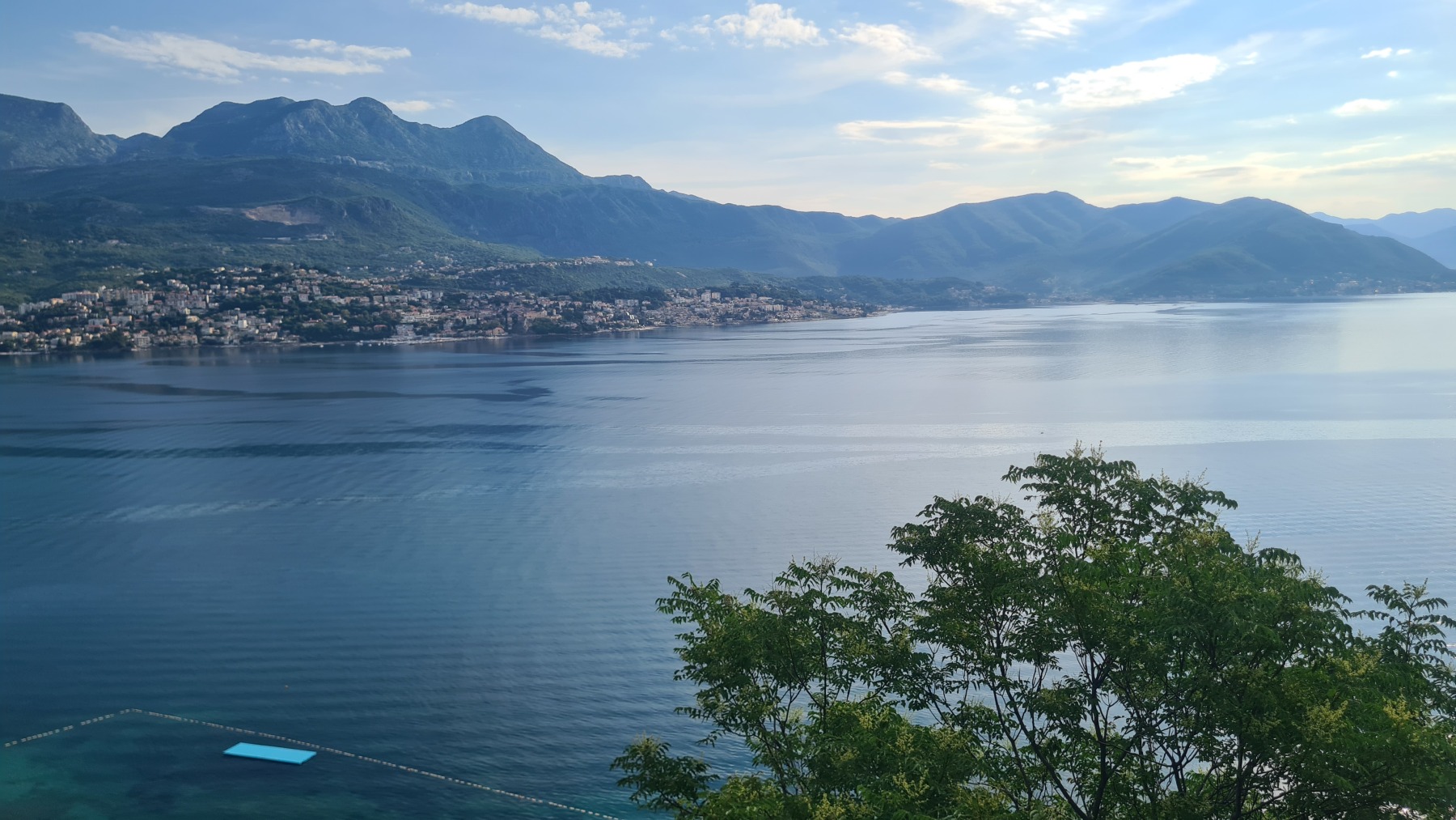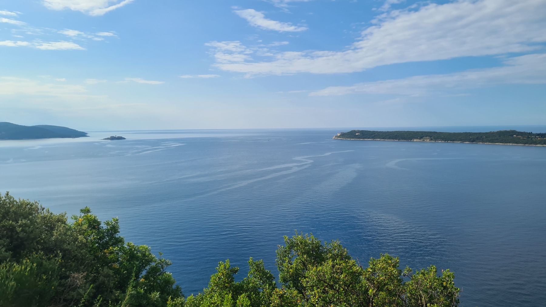 Nous sommes arrivés à la sortie des bouches de Kotor et le passage de la frontière -et notre rentrée dans l’espace Schengen- s’est fait sans problème. La barrière coté croate est situé à la fin d’une belle descente et juste avant une belle montée ce qui a un peu énervé Gisèle !