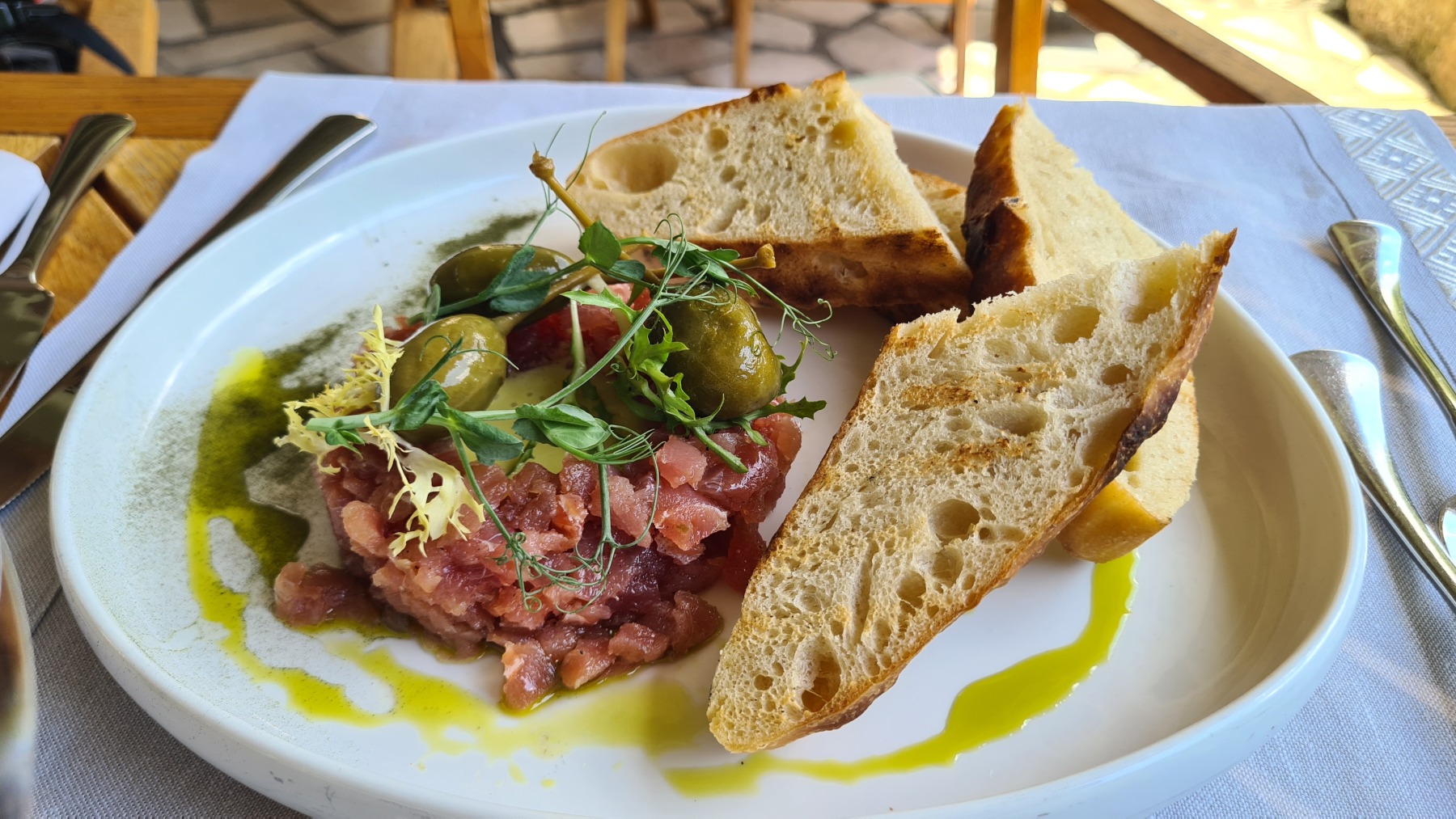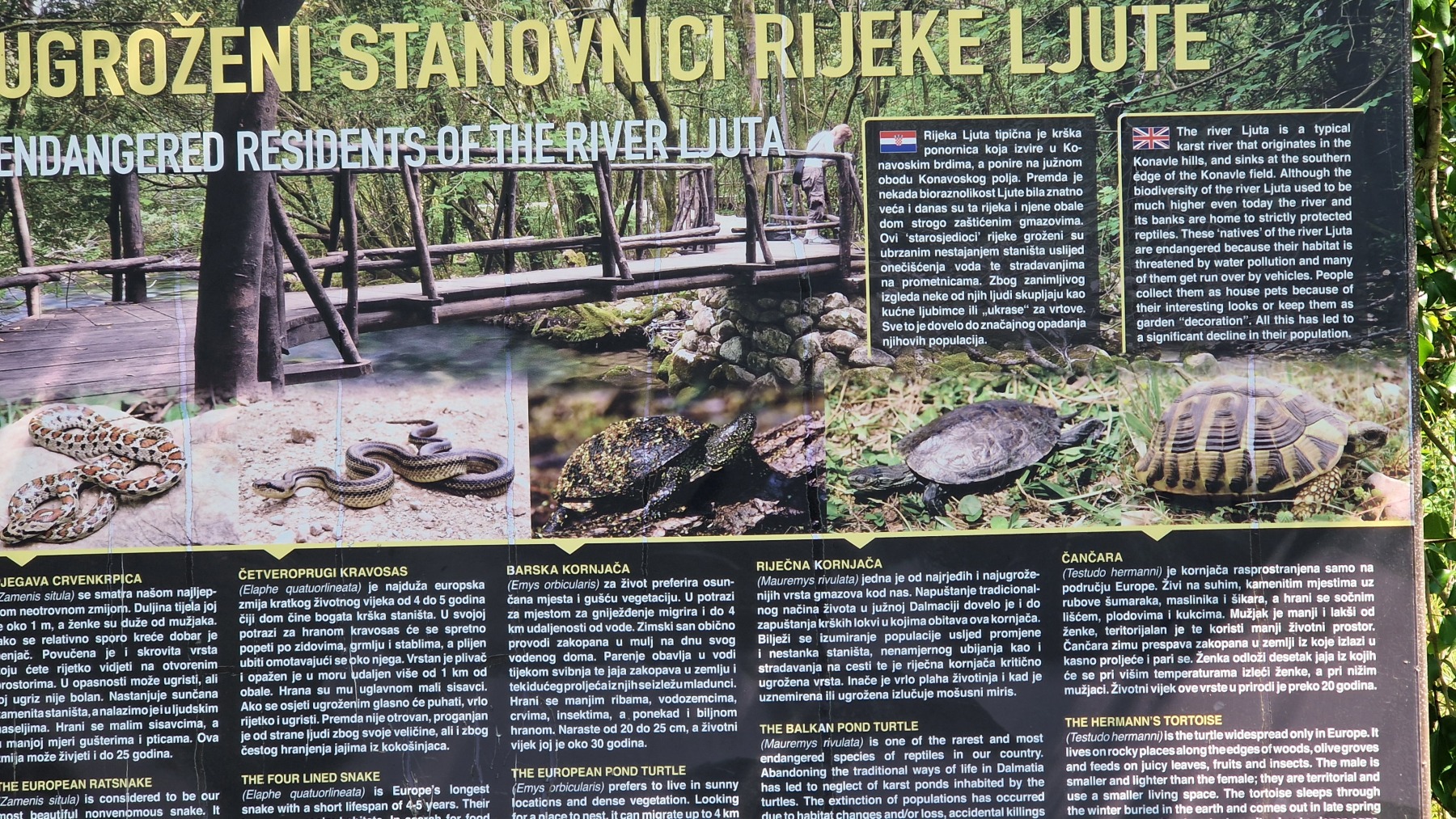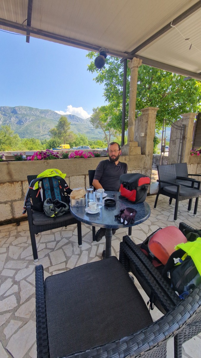 Nous sommes arrivés à Ljuta (célèbre pour ses moulins à eau) un peu avant 11h00 et nous avons suivi la rivière et visité quelques moulins avant de nous installer en terrasse au restaurant installé dans un de ces moulins. En Croatie comme au Monténégro les gens semblent manger à toute heure et les restaurants sont souples sur les horaires. Le notre commençait à servir à 11h00 ce qui nous convenait bien. Pendant le déjeuner nous avons observé le balais d’un couple de cincles plongeurs qui se relayaient pour aller pécher et nourrir leurs rejetons dans un nid installé sur une poutre de la terrasse. Je ne connaissais pas ces oiseaux et leur technique de pêche est impressionnante.