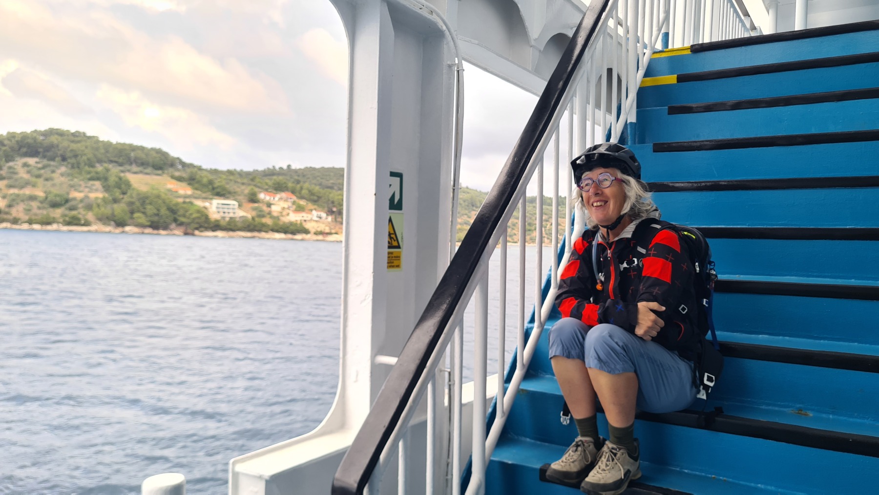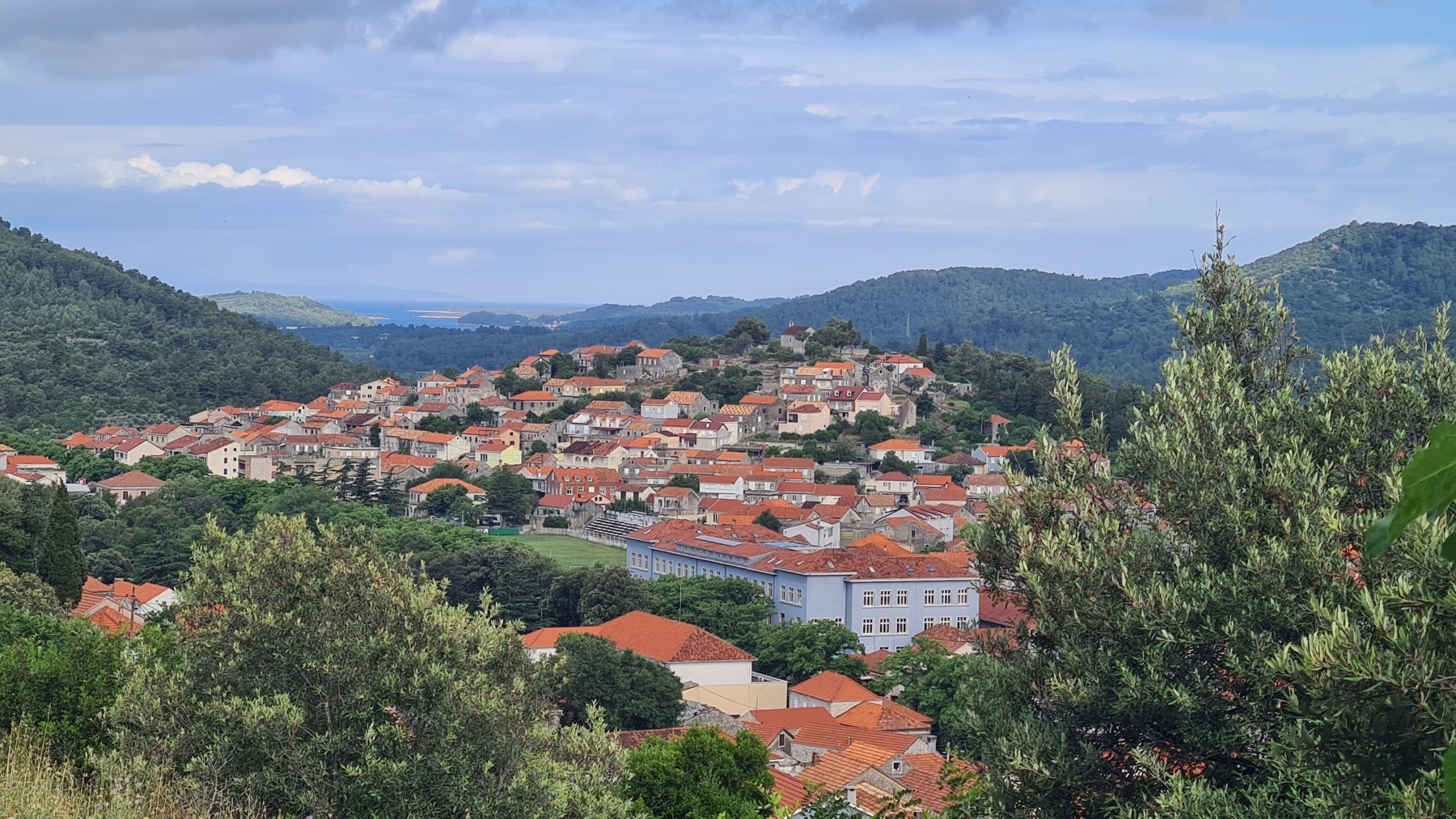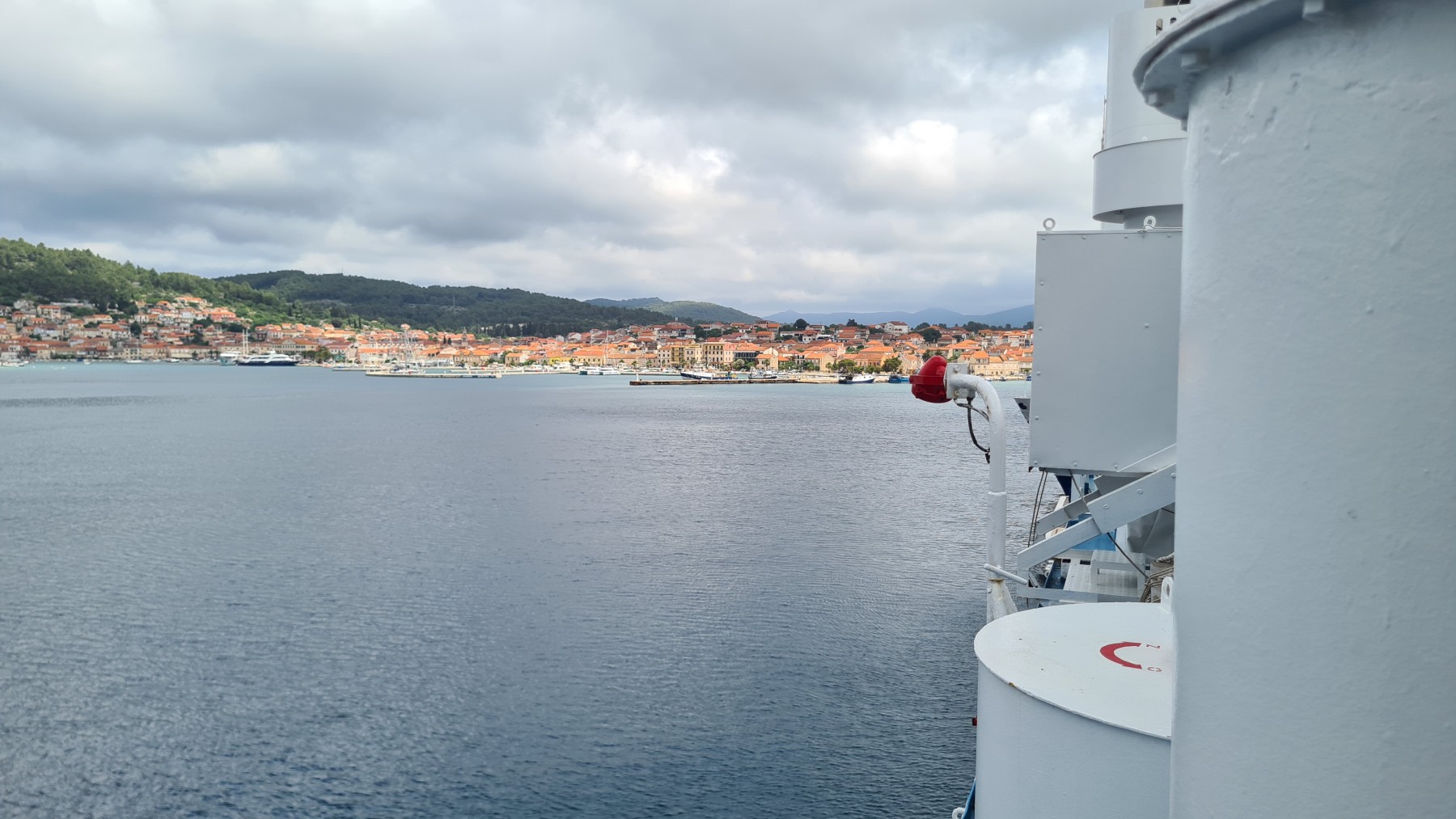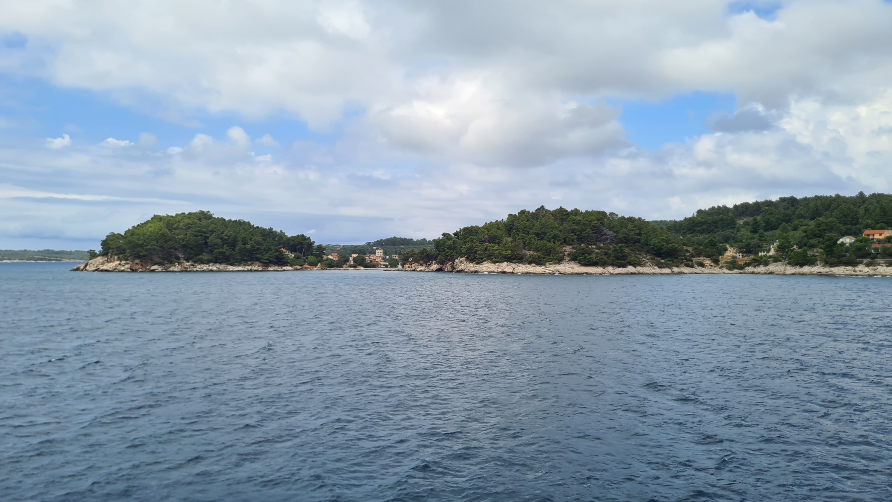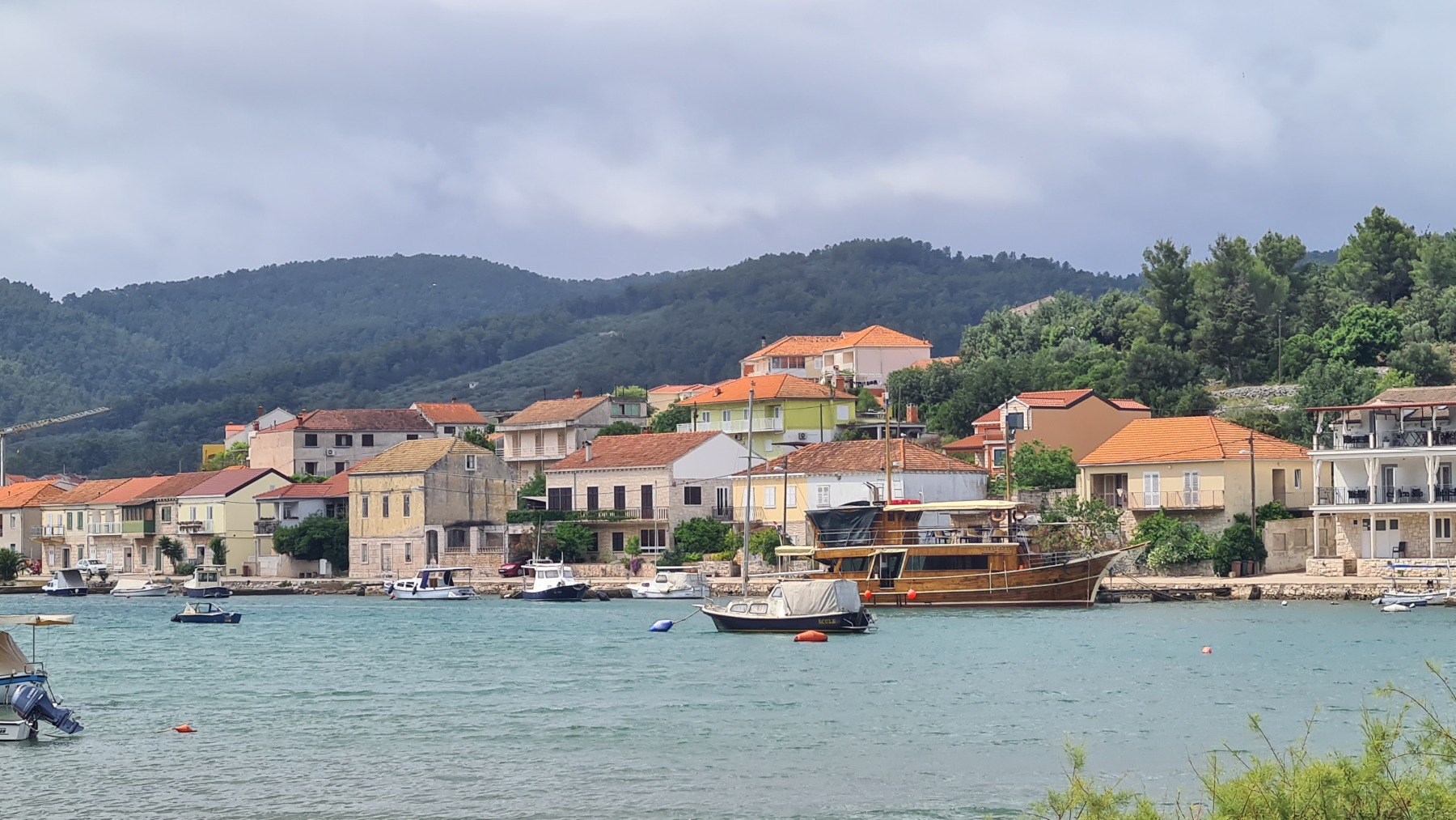 Ce matin nous avons rejoint le port de Vela Luka. Les 250 m de montée à 6% à la fraiche ont été un vrai bonheur par rapport à celle d’hier et nous sommes arrivés à Vela Luka pour le premier café.