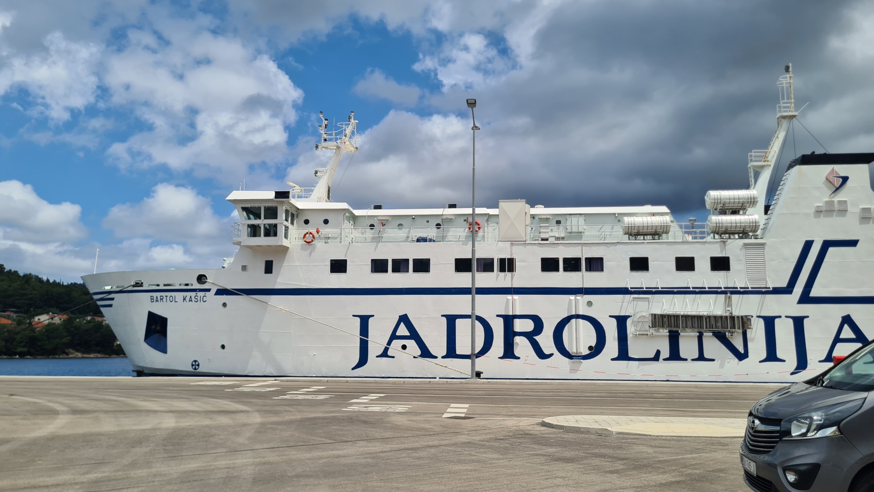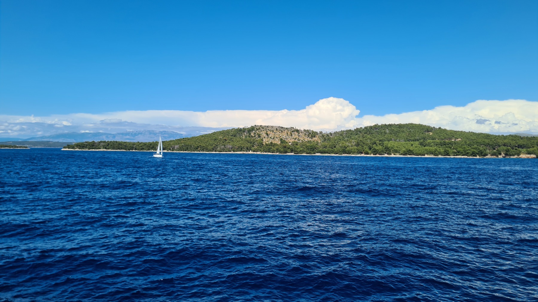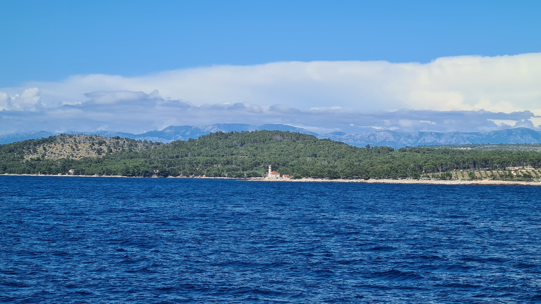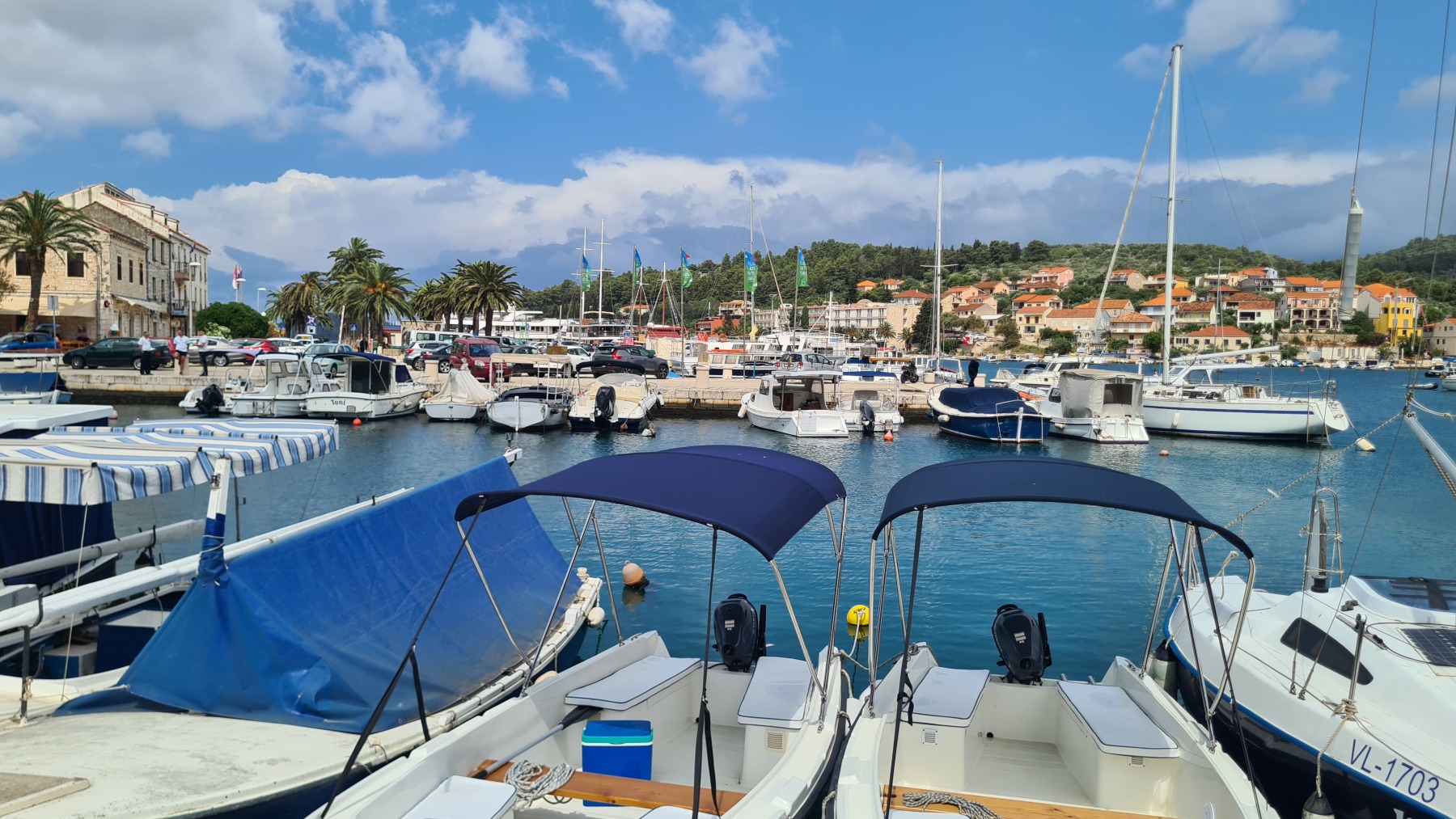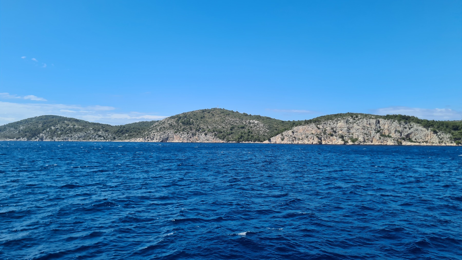 Ce matin nous avons rejoint le port de Vela Luka. Les 250 m de montée à 6% à la fraiche ont été un vrai bonheur par rapport à celle d’hier et nous sommes arrivés à Vela Luka pour le premier café.