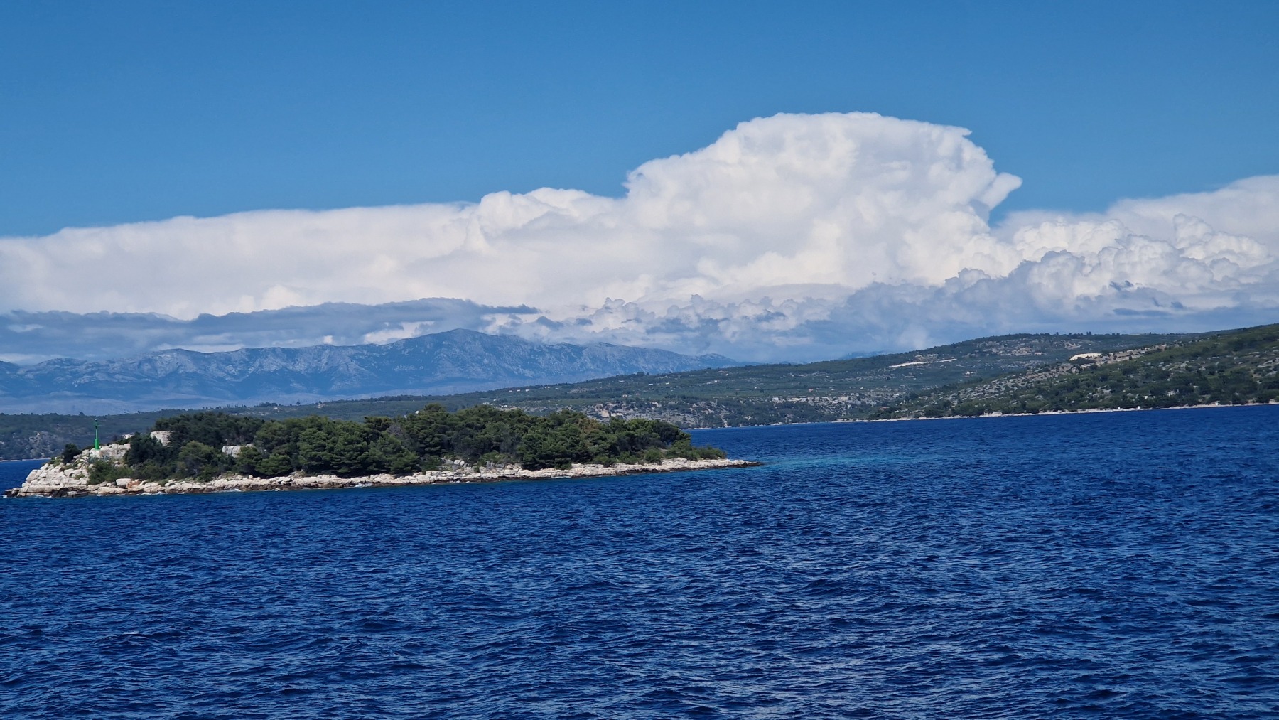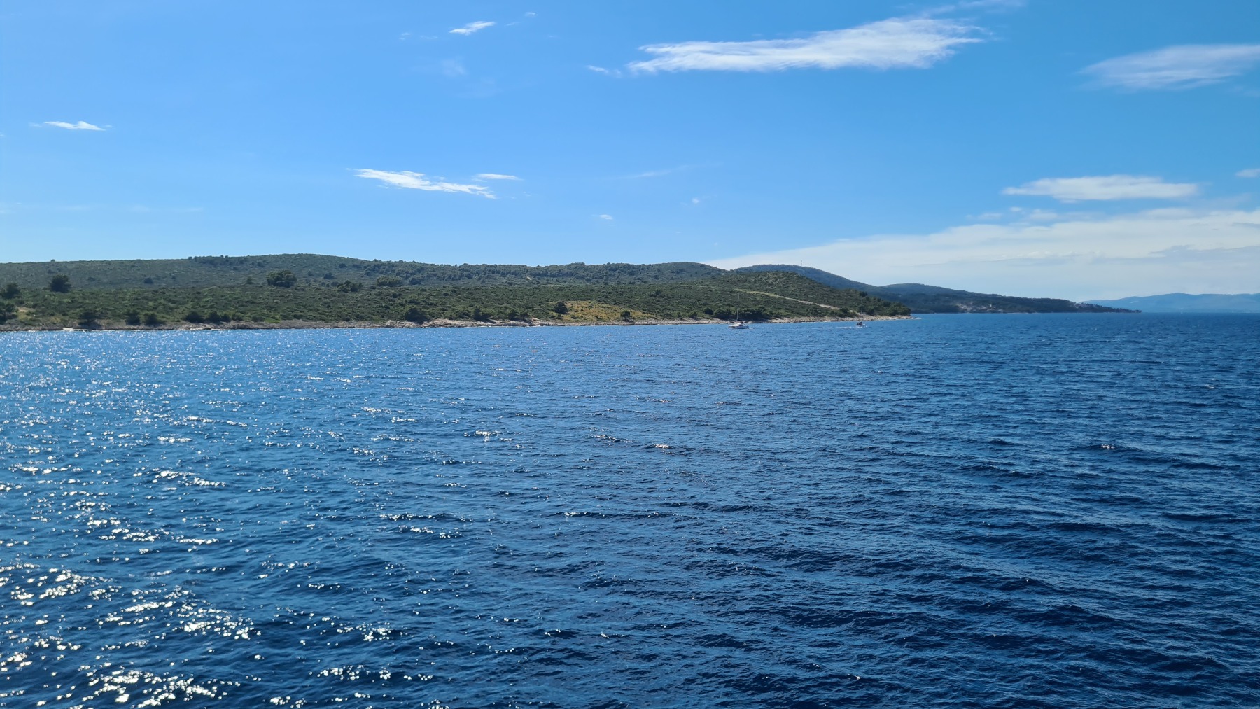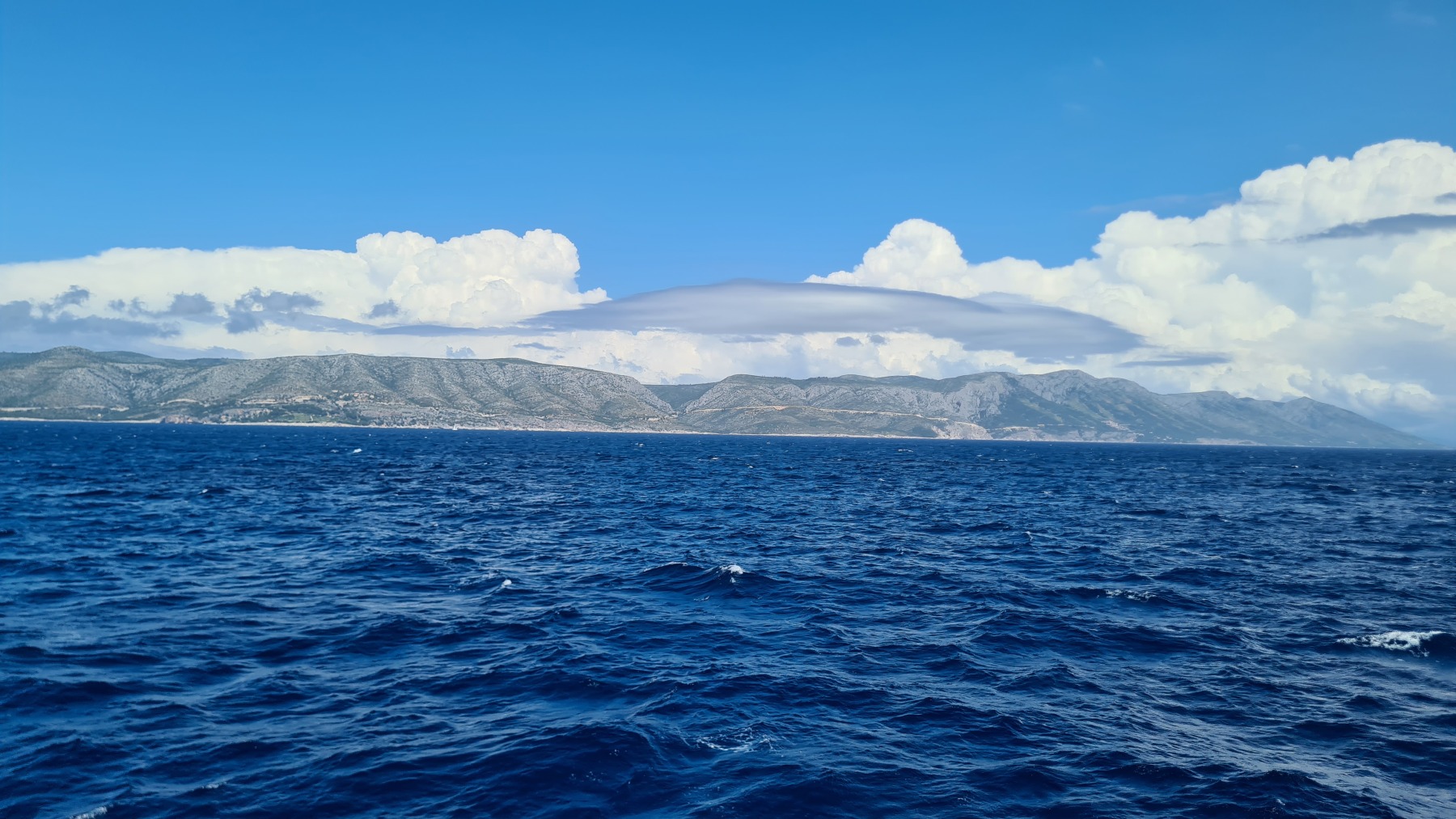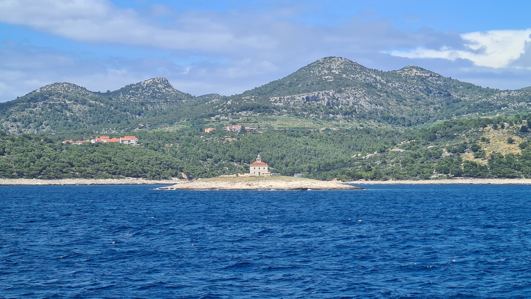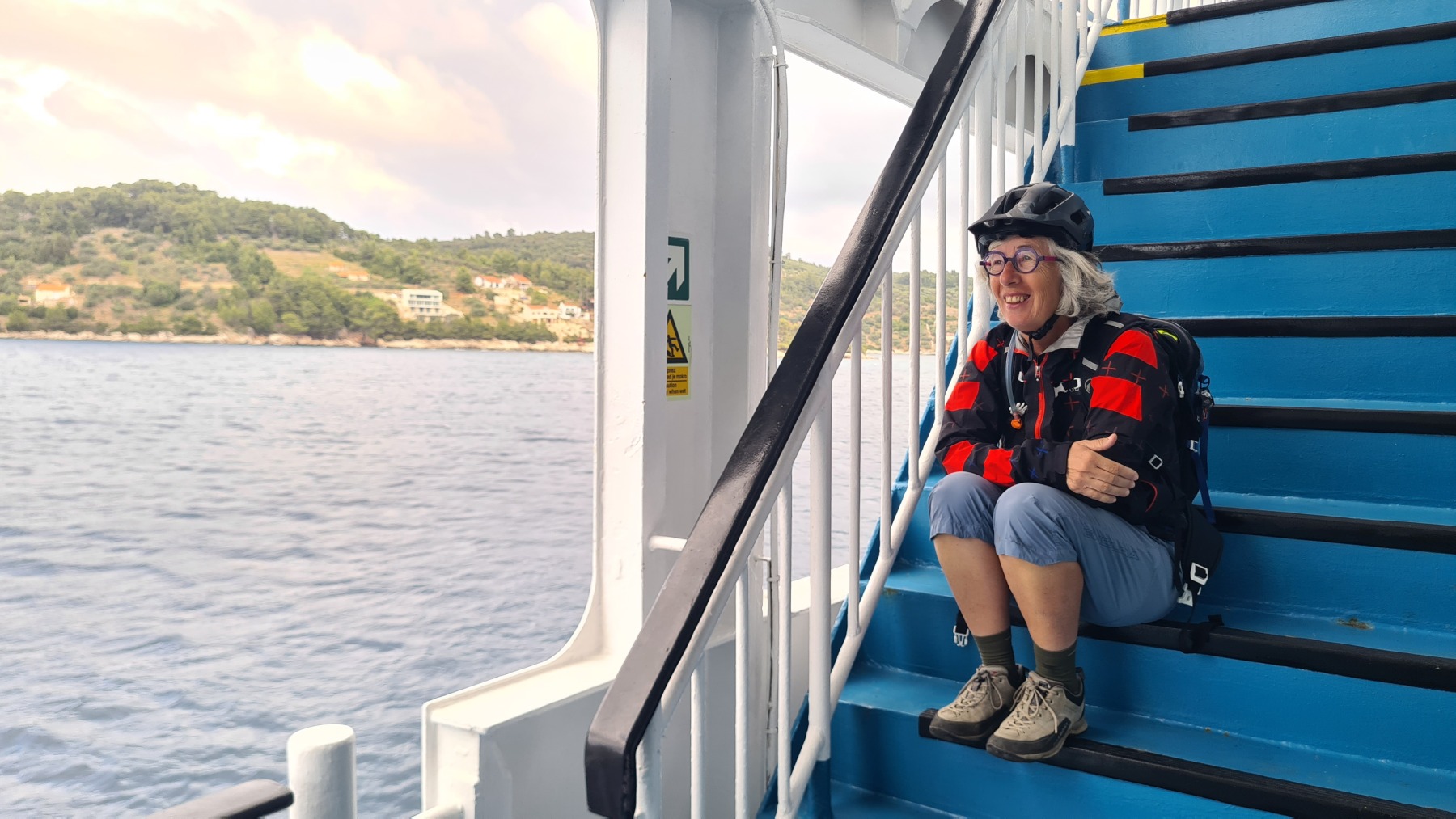 Ce matin nous avons rejoint le port de Vela Luka. Les 250 m de montée à 6% à la fraiche ont été un vrai bonheur par rapport à celle d’hier et nous sommes arrivés à Vela Luka pour le premier café.