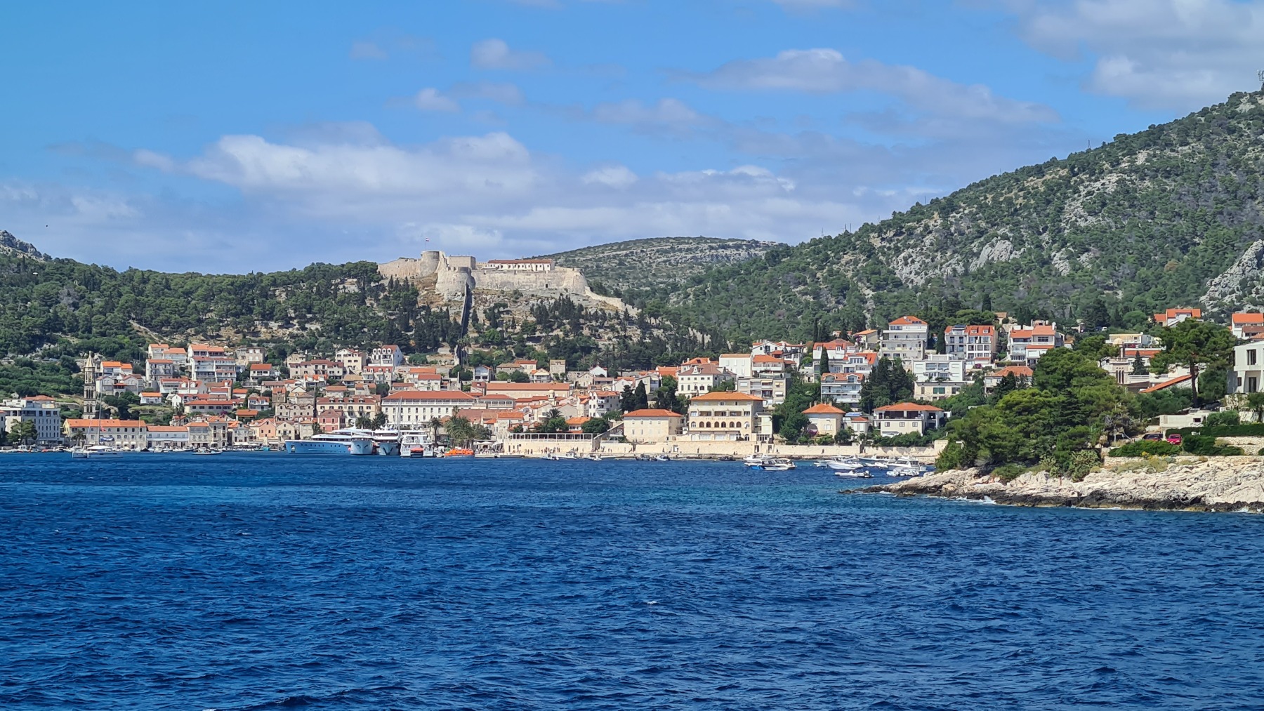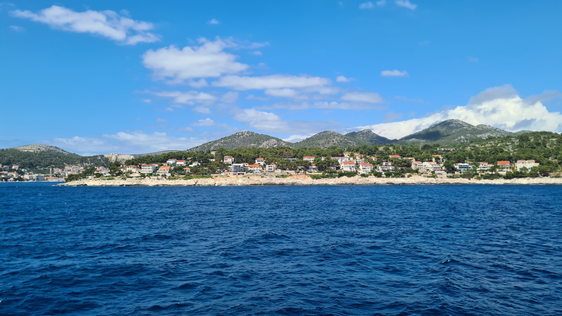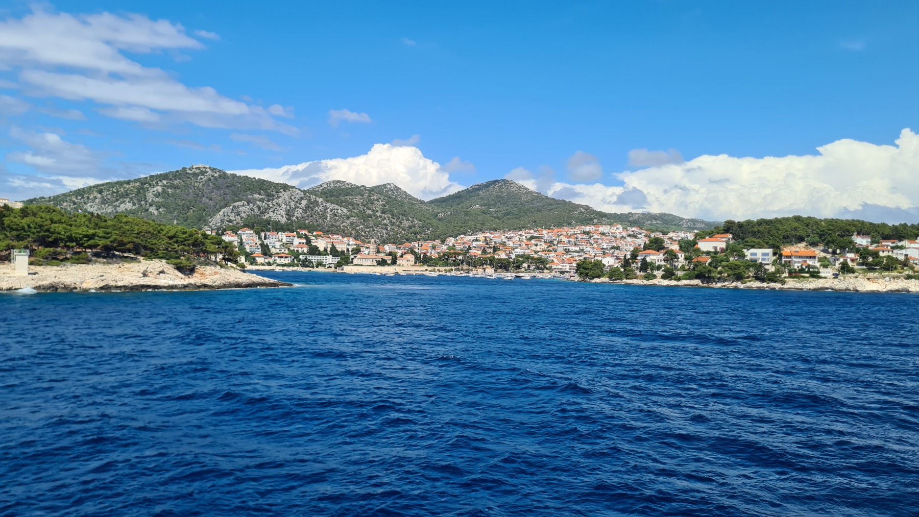 Nous avons attendu, fait un petit tour du port et déjeuné avant de prendre le ferry pour Split. Le trajet de Vela Luka à Split longe les iles de Hvar et de Brač et c’est un vrai plaisir pour les yeux.