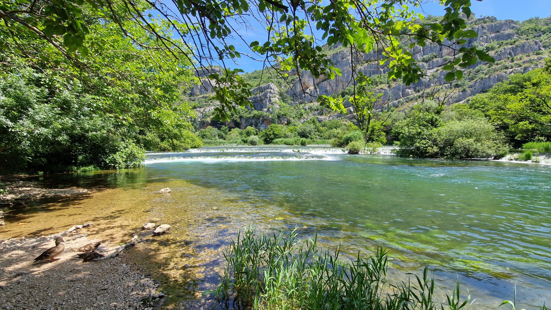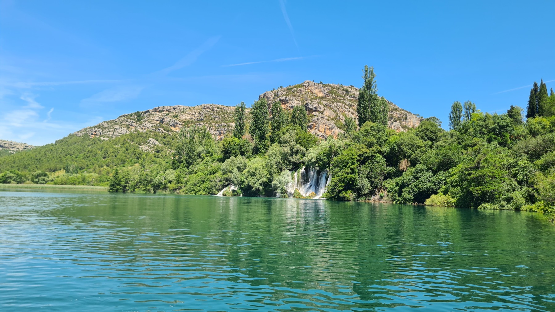 Aujourd’hui, pour cette journée de repos dans le parc national de Krka nous avons fait une excursion en bateau jusqu’aux chutes de Roski avec une escale au monastère de l’ile de Visovac (la trace ne décompte pas le trajet en bateau).