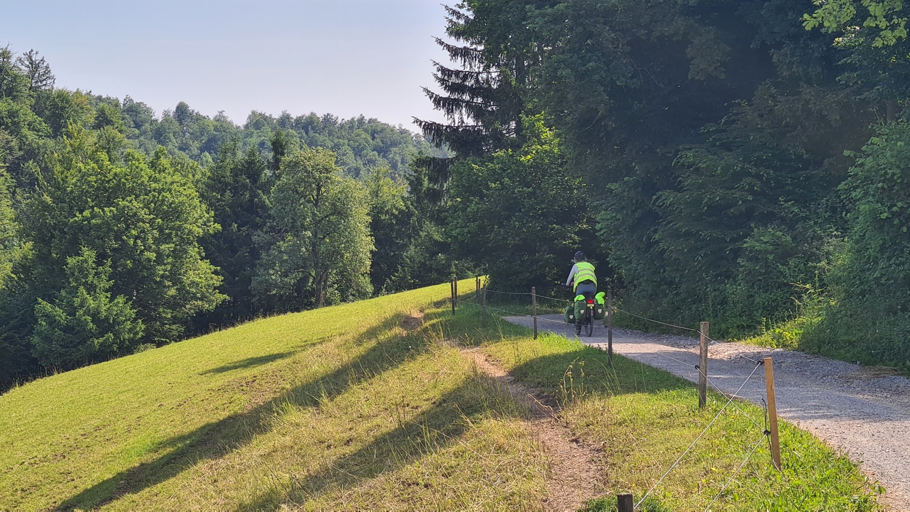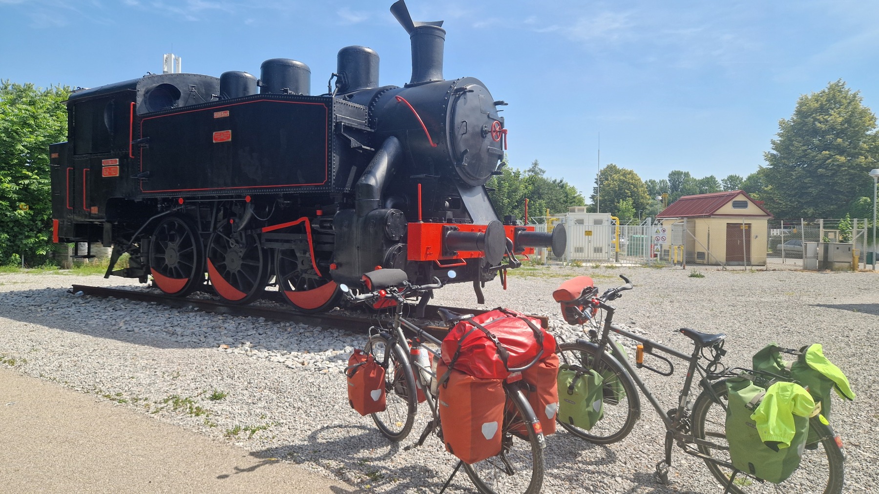 Sur le trajet nous avons retrouvé les Kozolec et les maisonnettes à ruches que nous avions découvert en 2019. L’approche de Ljubljana est bien sécurisée pour les vélos. Il y a des pistes (ou au minimum des bandes) cyclables un peu partout et les automobilistes semblent assez respectueux des vélos.