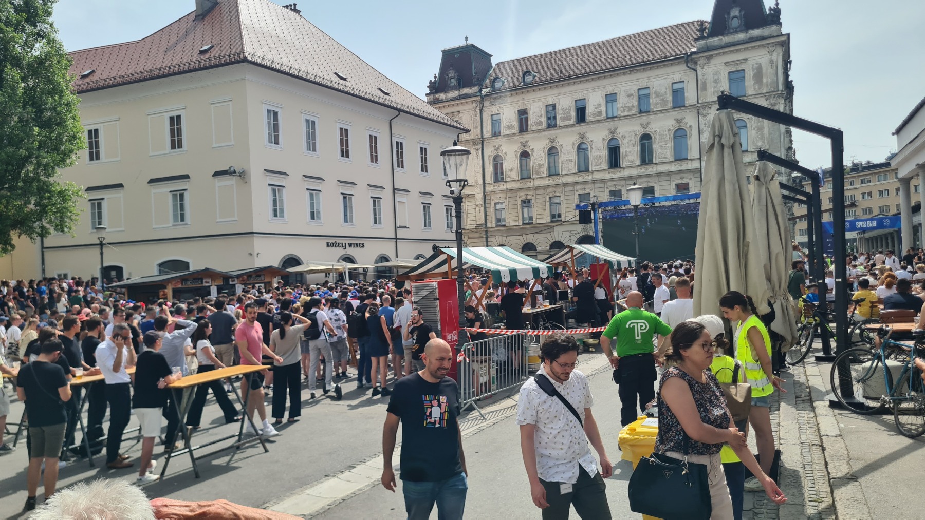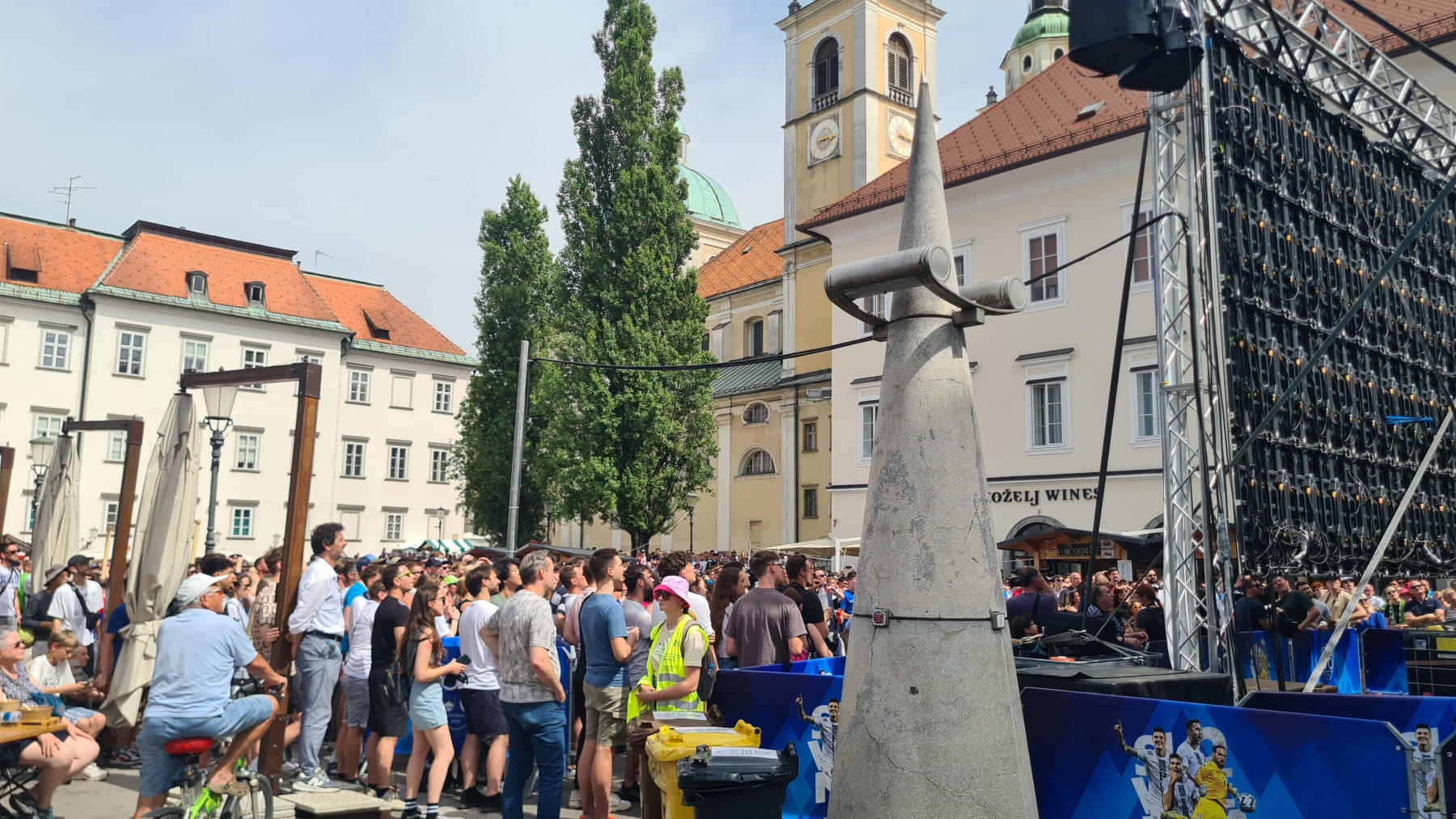 Dans la ville, le match Slovénie-Serbie bâtait son plein. Il y avait foule autour de l’écran géant installé près du marché et sur les terrasses des cafés qui semblaient tous retransmettre l’évènement.