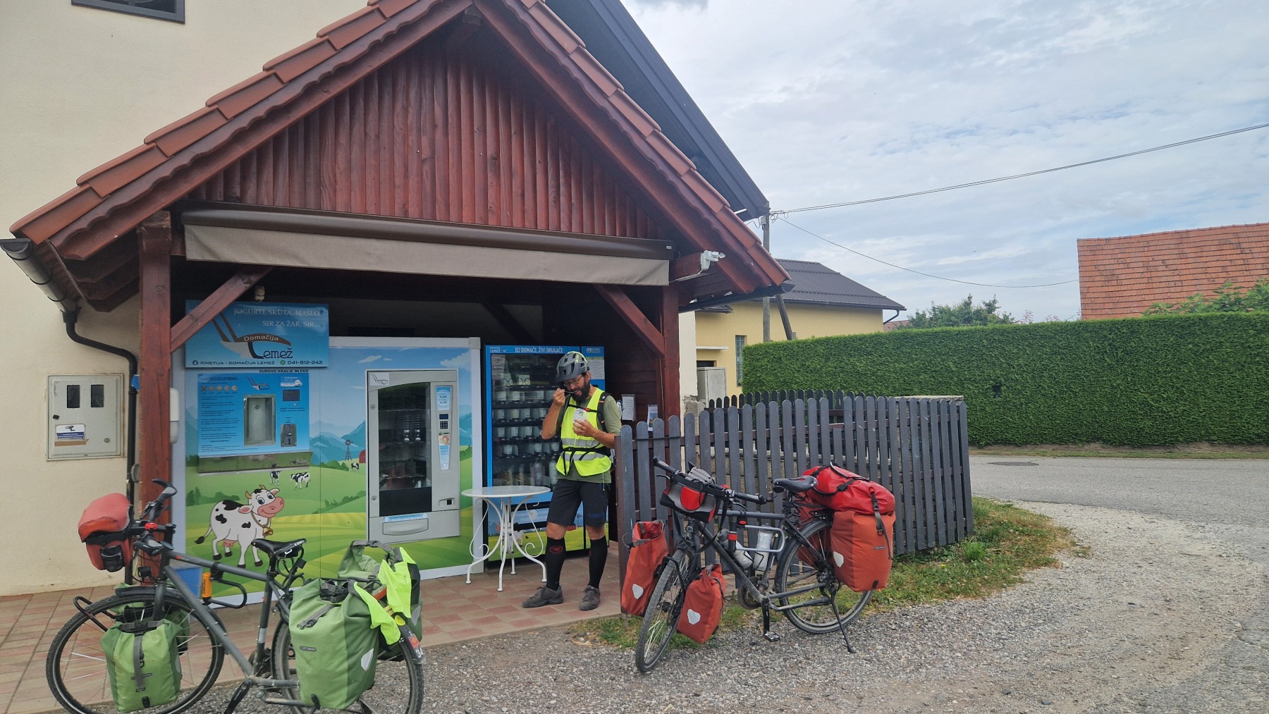 La Slovénie est bien équipée en itinéraires cyclables notamment le long de la Drave que nous avons remonté de Ptuj à Maribor et l’étape a été agréable. Dans un village nous avons même trouvé un distributeur de yaourt à côté d’une ferme !