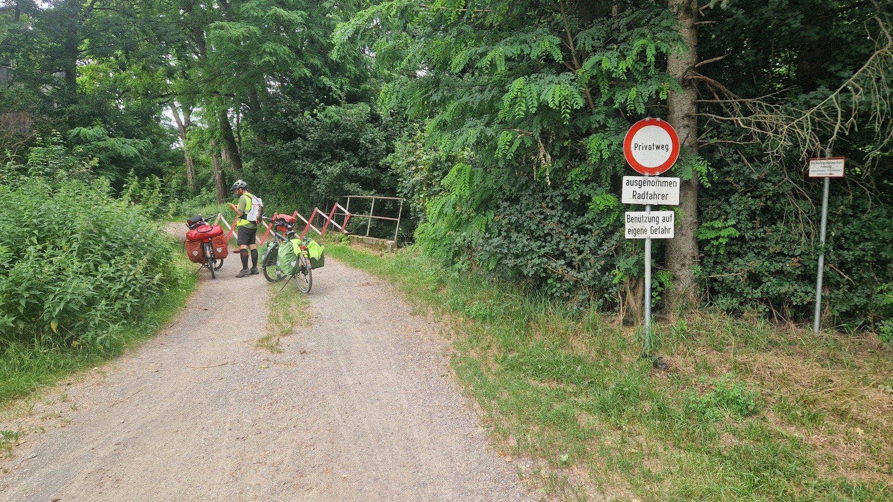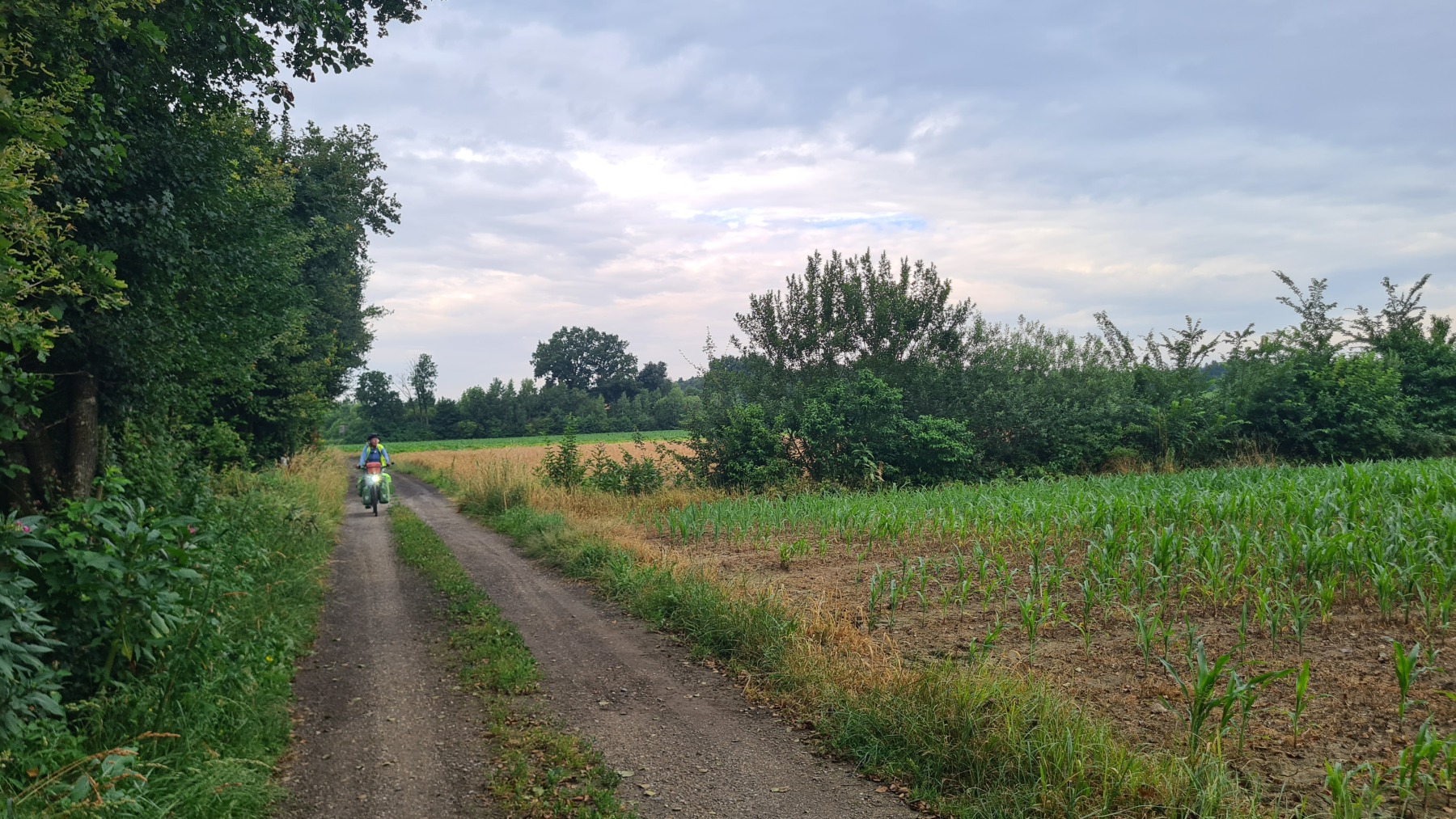 Le tracé de l’Eurovelo 9 est toujours aussi agréable et bien balisé. Nous n’avons eu que deux hésitations, la première sur un chemin agricole qui ne correspondait pas aux traces GPS et où il n’y avait aucune balise, la seconde devant un panneau accès interdit où nous avons eu recours au traducteur pour comprendre la mention « sauf aux cyclistes ».