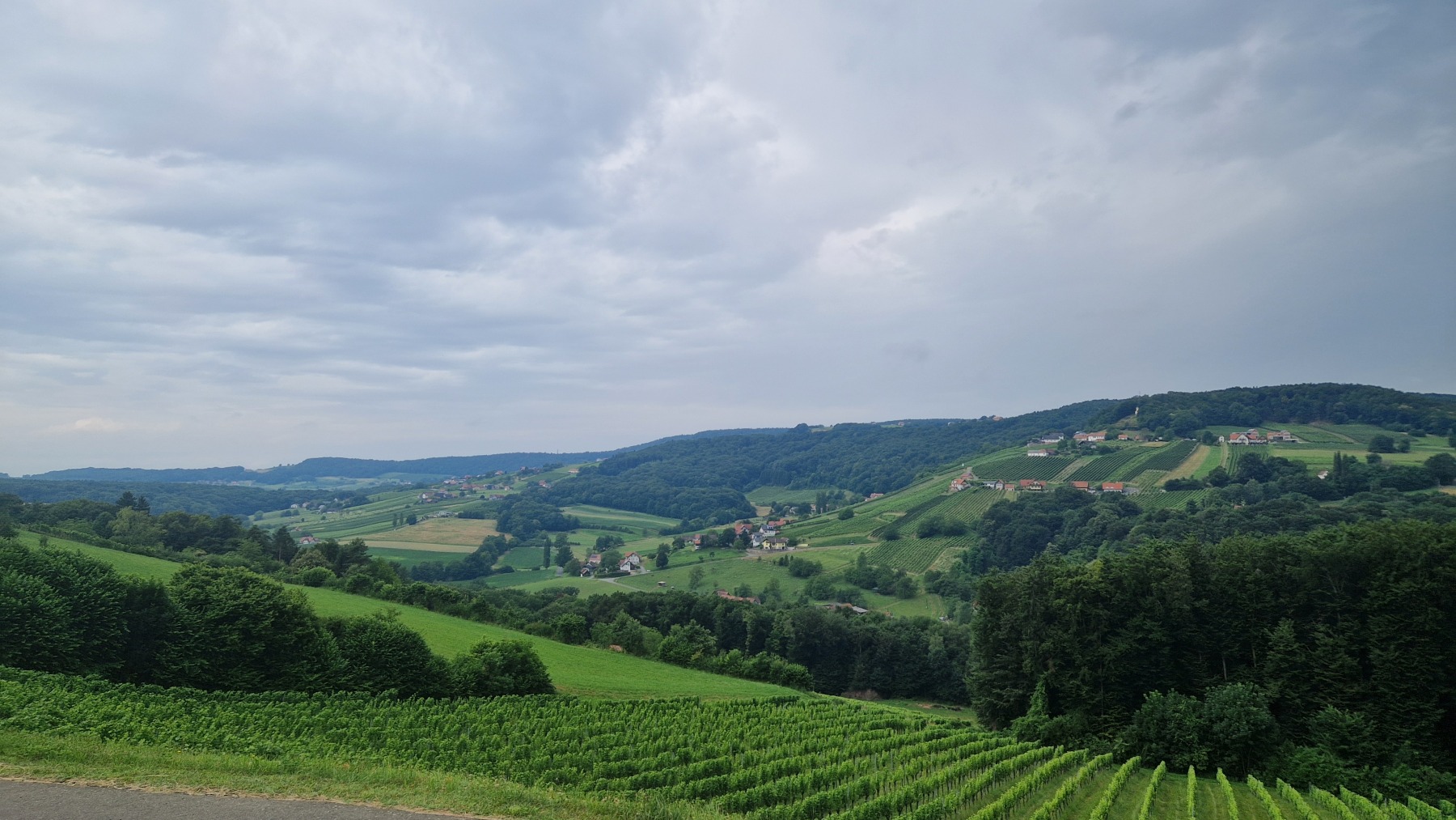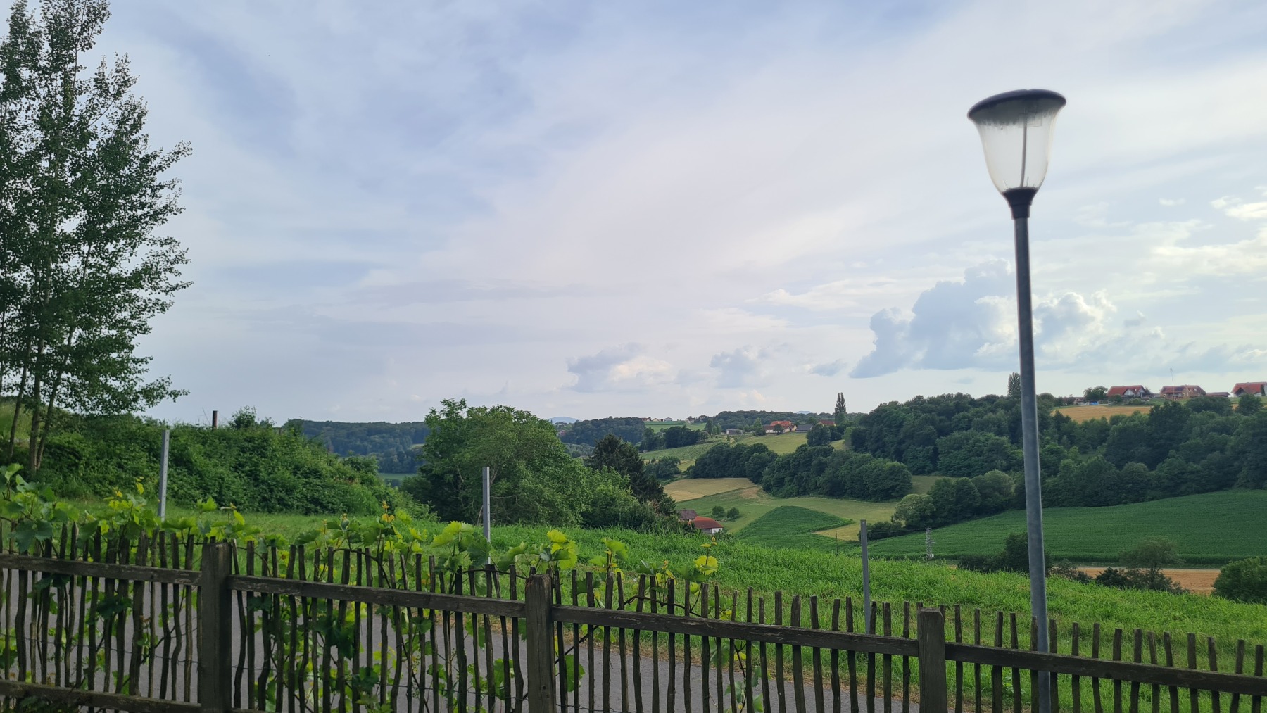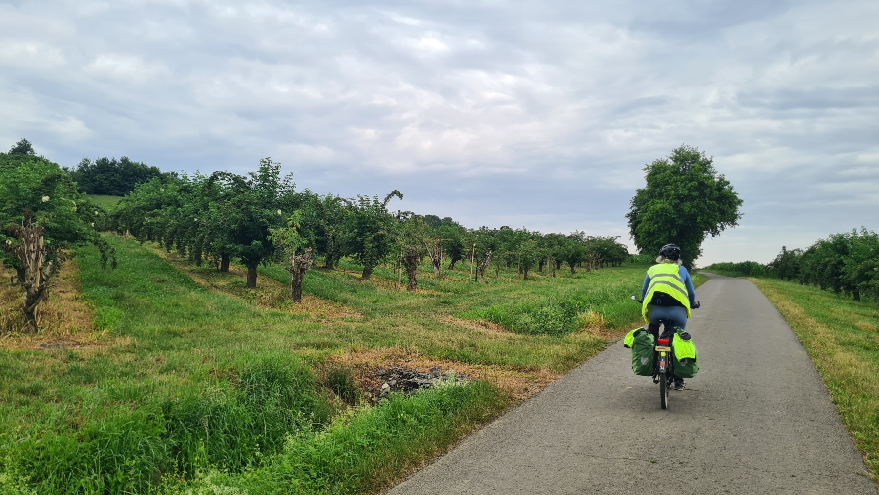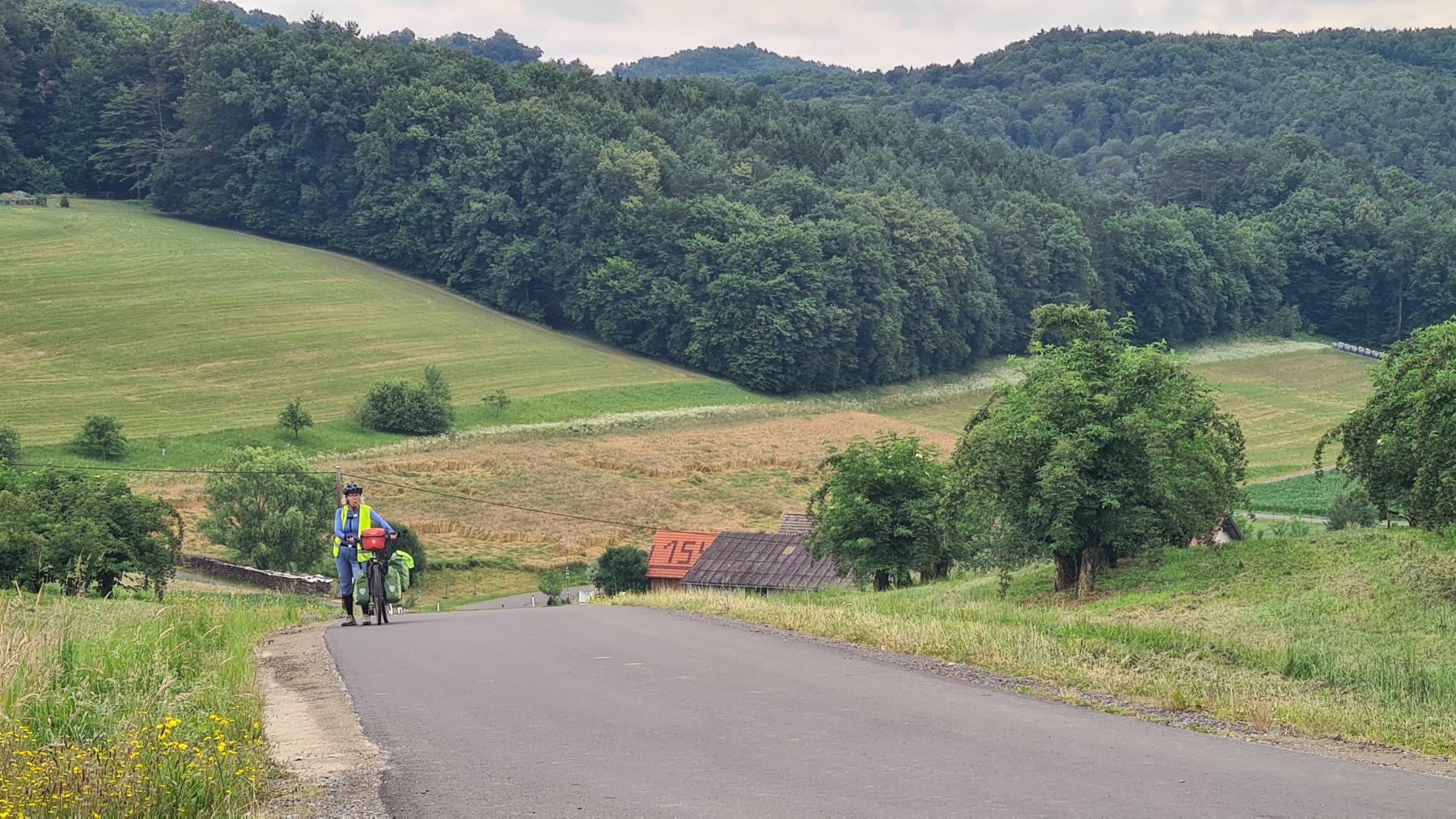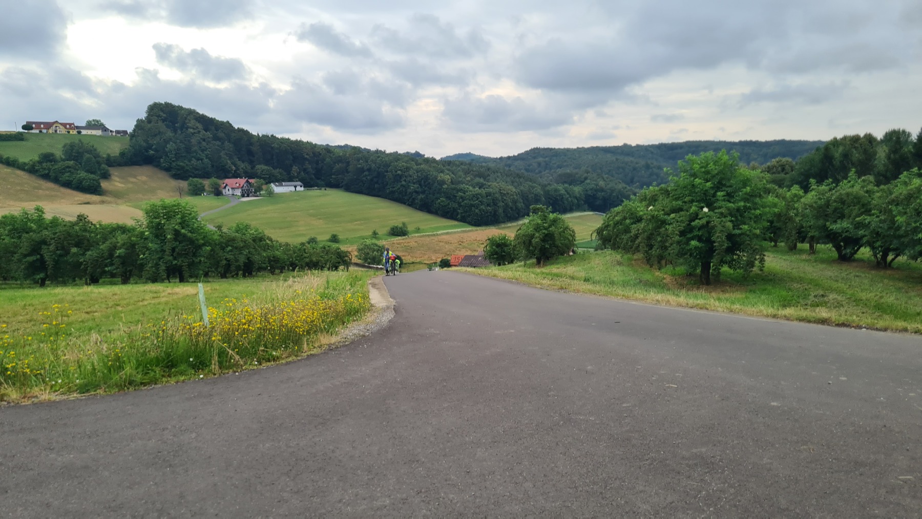Après Bad Radkersburg, l’Eurovelo 9 reprend sa progression vers le nord. Le terrain est d’abord très plat et suit la frontière avec la Slovénie. Il devient ensuite de plus en plus vallonné avec de beaux paysages. Nous avons traversé beaucoup de vergers, de pommes mais aussi de sureau (ce que je n’avais jamais vu en France) et de belles forêts de feuillus.