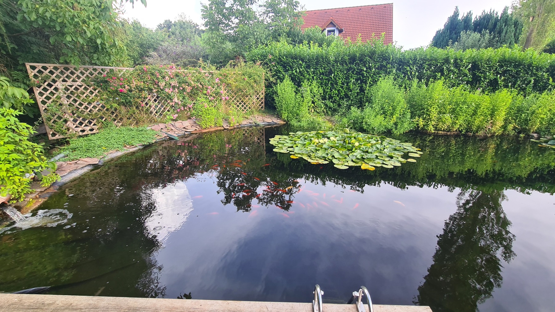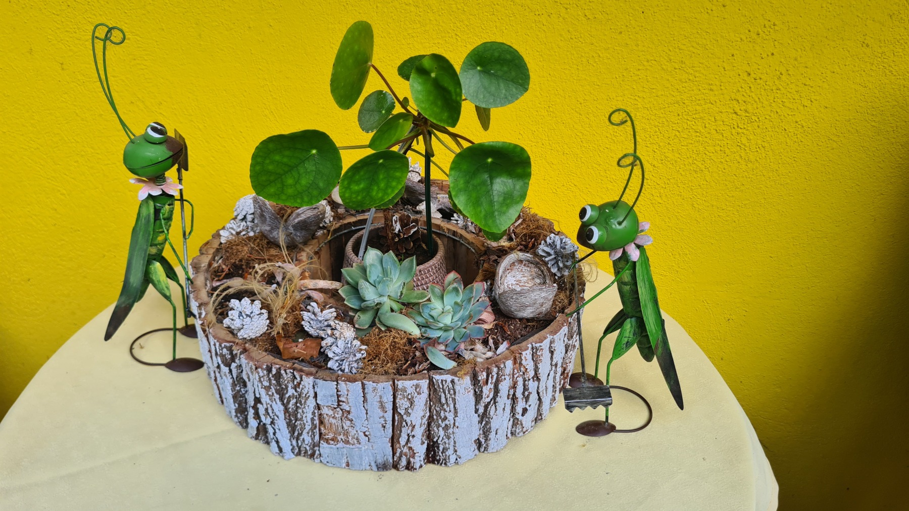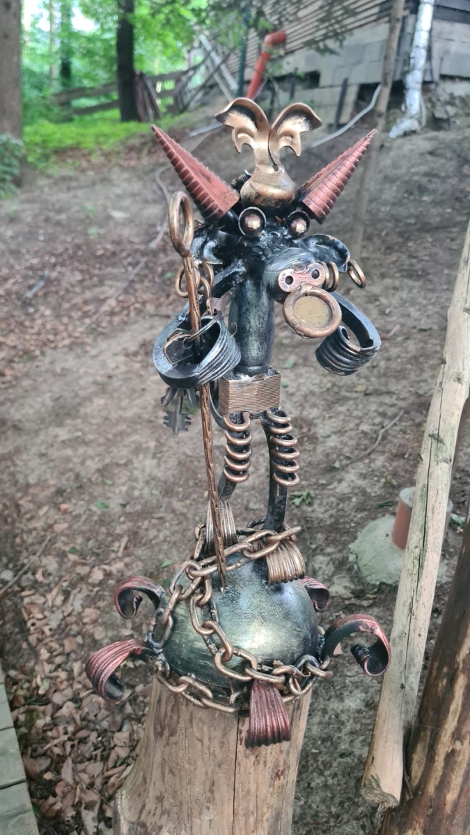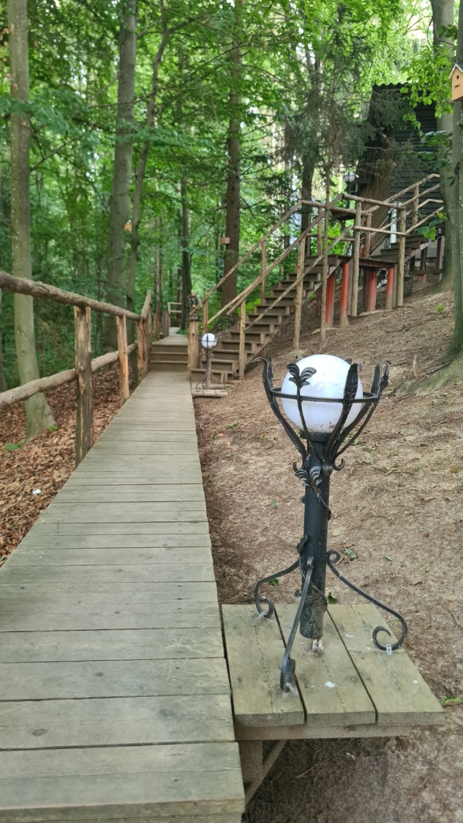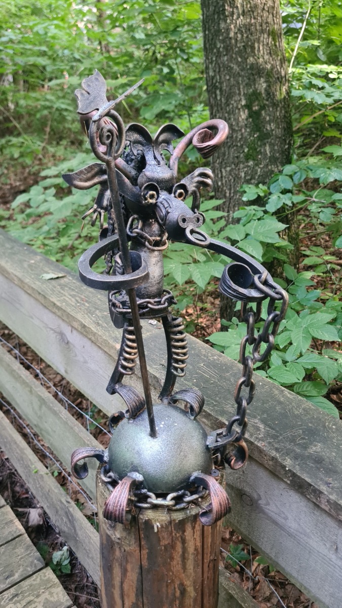 Ce soir nous dormons dans un studio en pleine campagne sur un terrain dans lequel le propriétaire a aussi aménagé une promenade dans la forêt et une mare. Le tout est décoré de sculptures que je trouve plutôt réussies.
