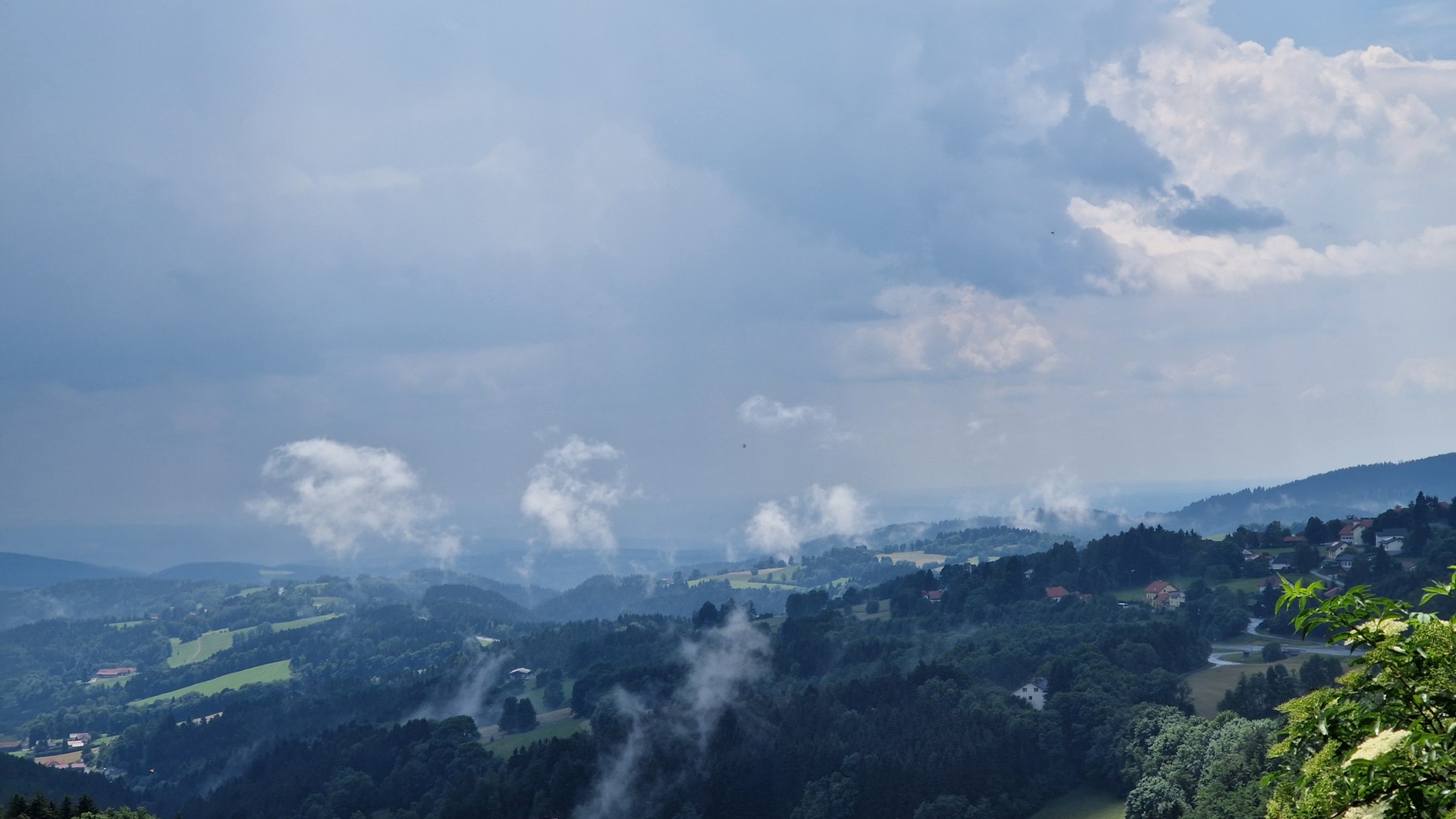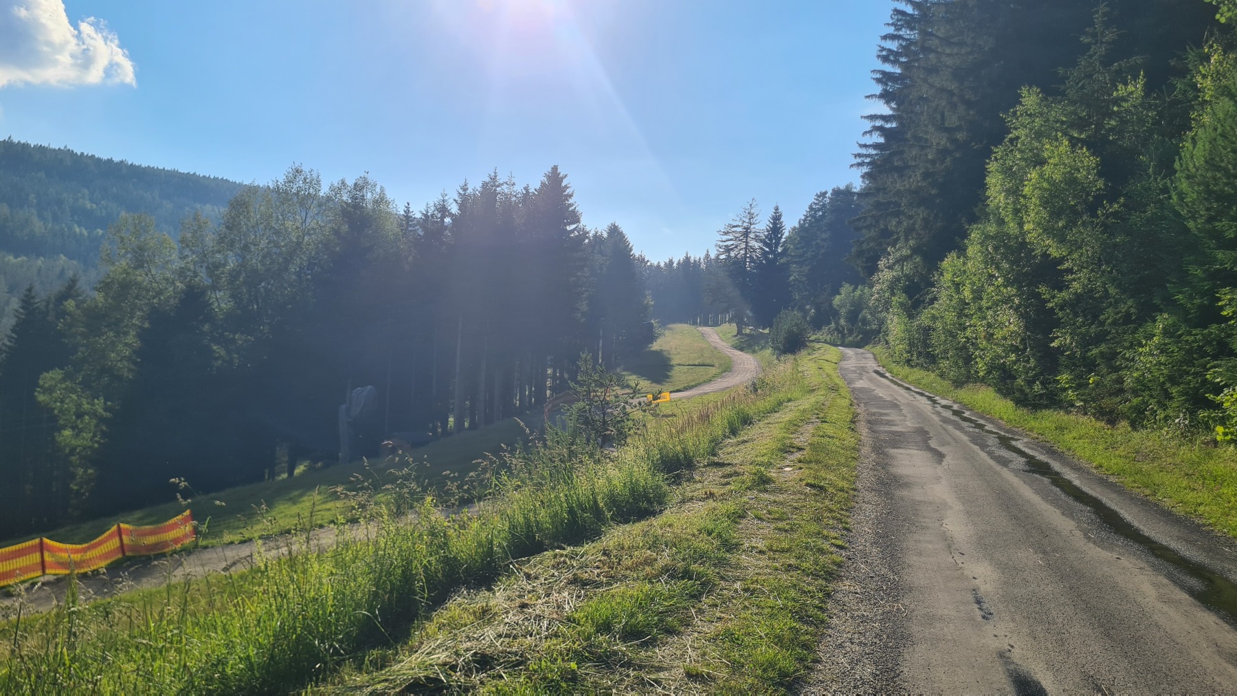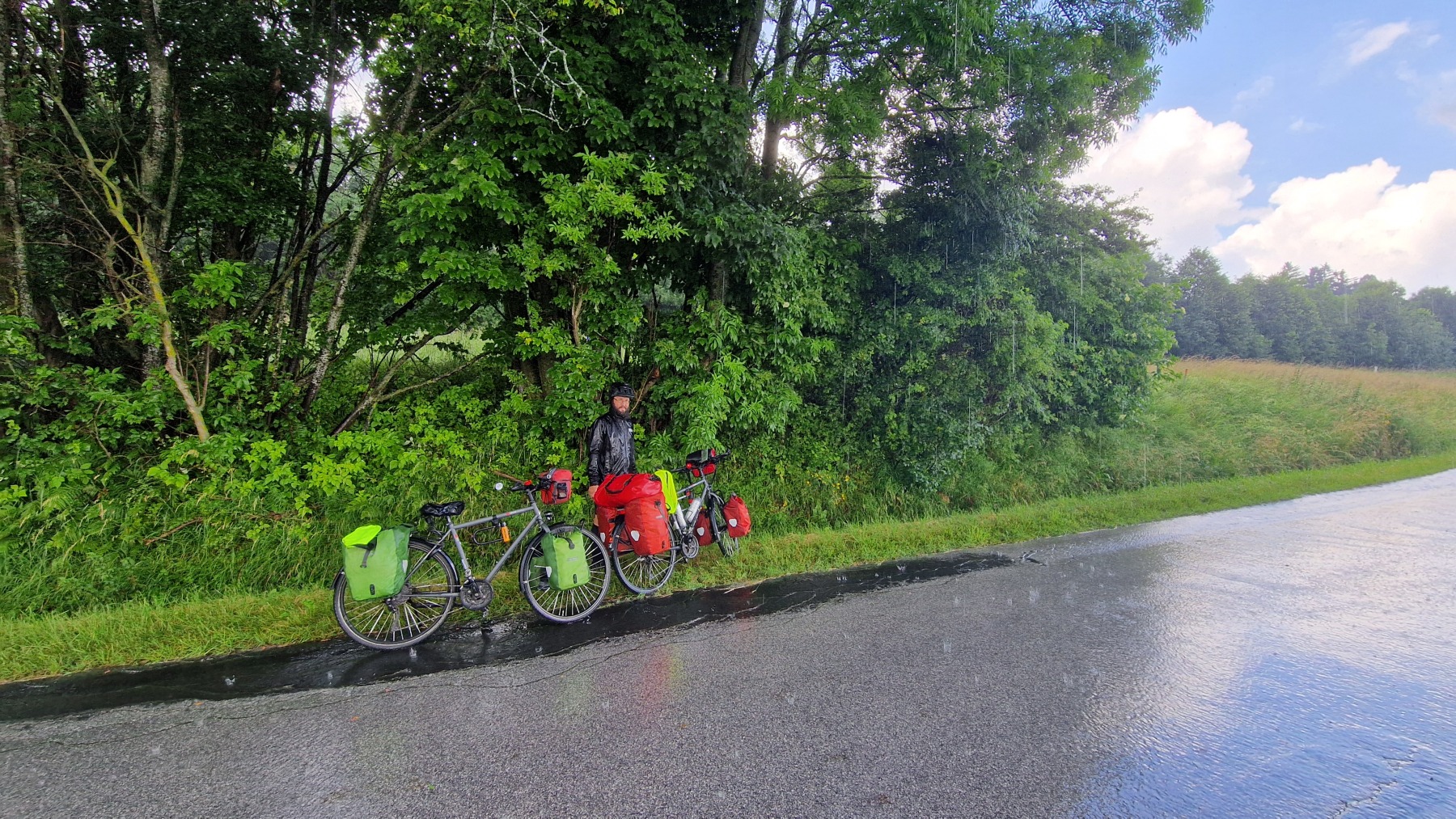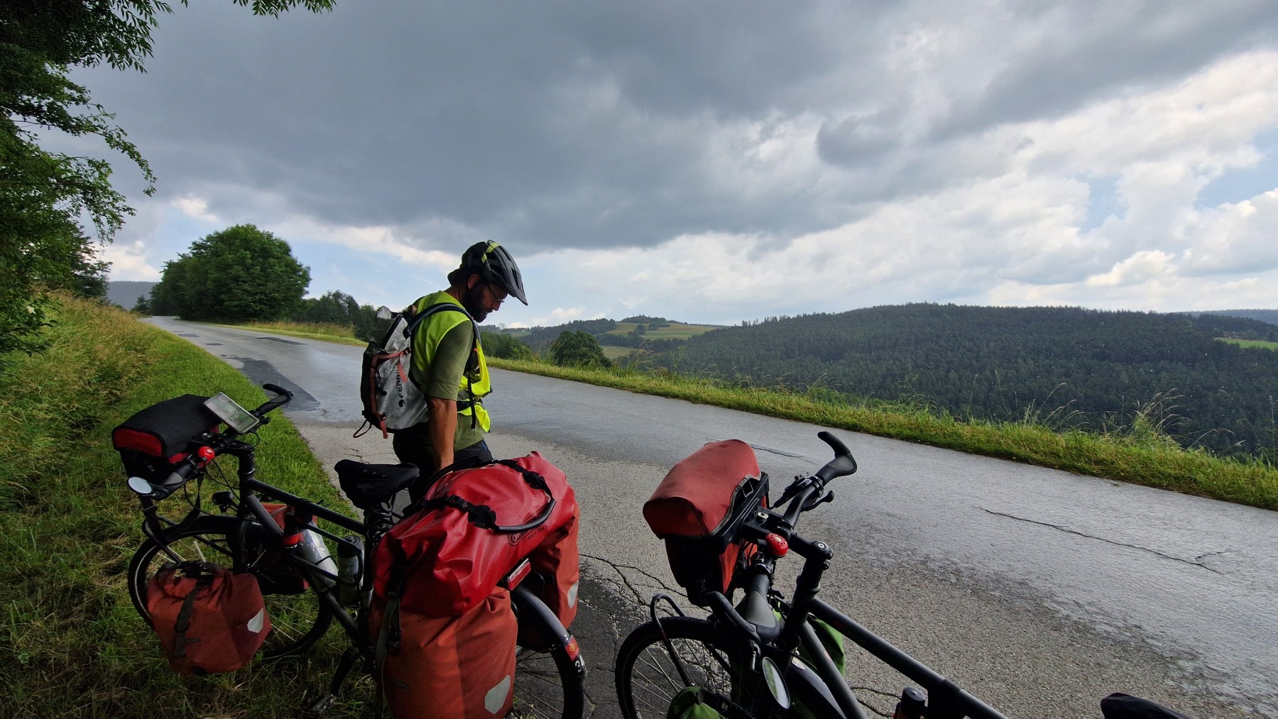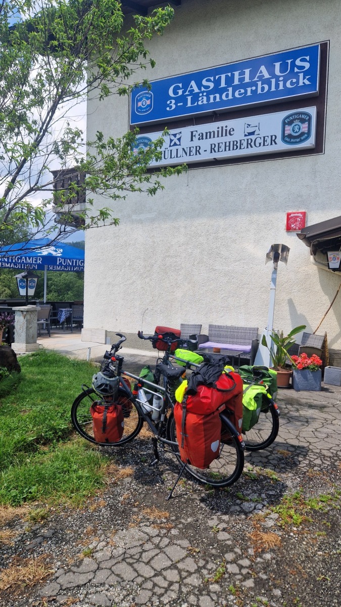 Aujourd’hui nous nous sommes attaqués au Wechsel, cette extrémité est des Alpes qui sépare la Styrie de la Basse Autriche et nous dormons à Mönichkirchen. Nous n’avons gagné que 650 m d’altitude mais le parcours est très ondulant avec des passages raides et des descentes et le dénivelé positif est bien plus important. Une des montées, pavée avec de jolis petits pavés disjoints est particulièrement éprouvante.