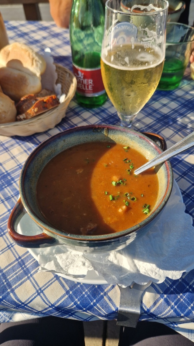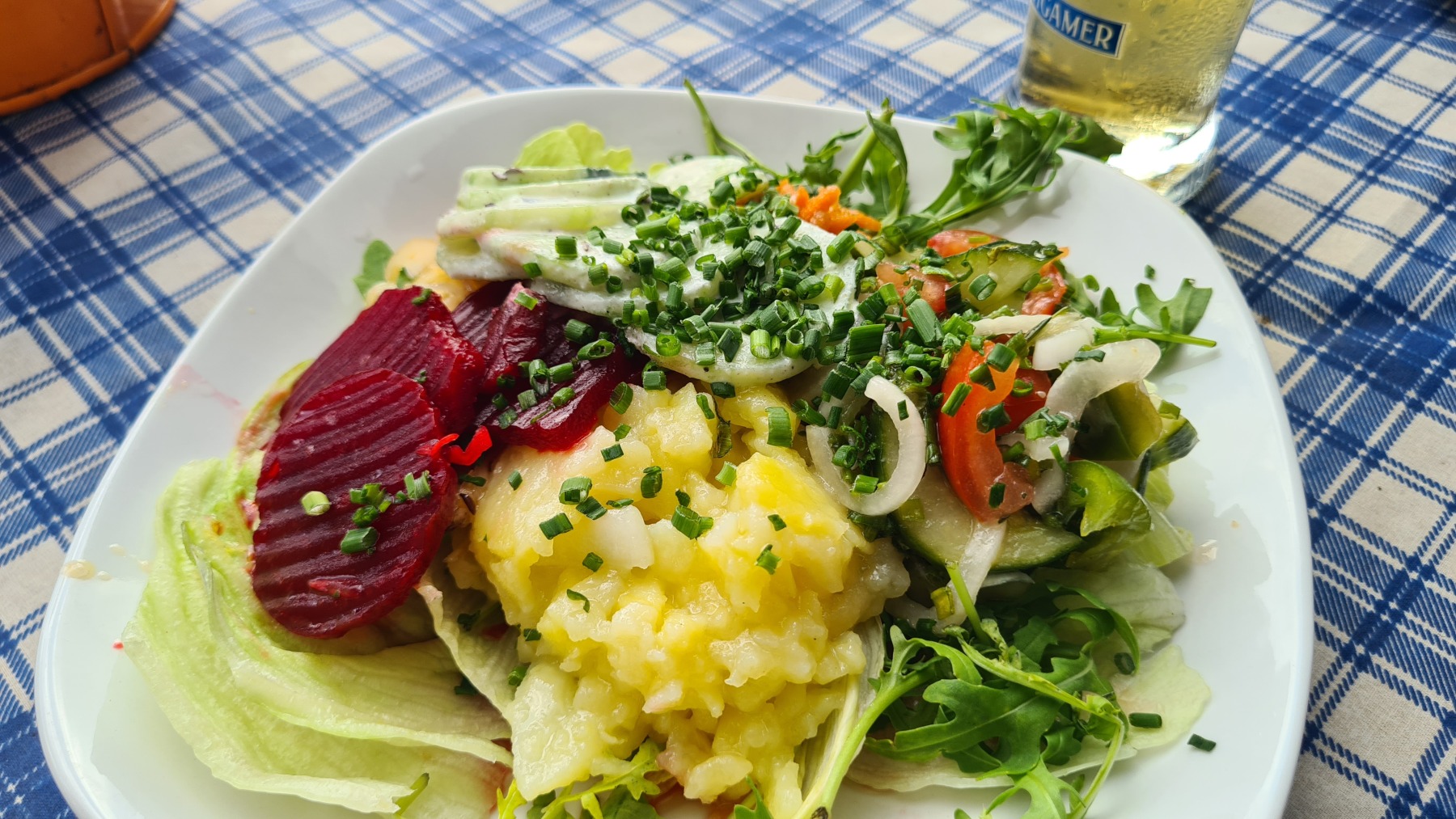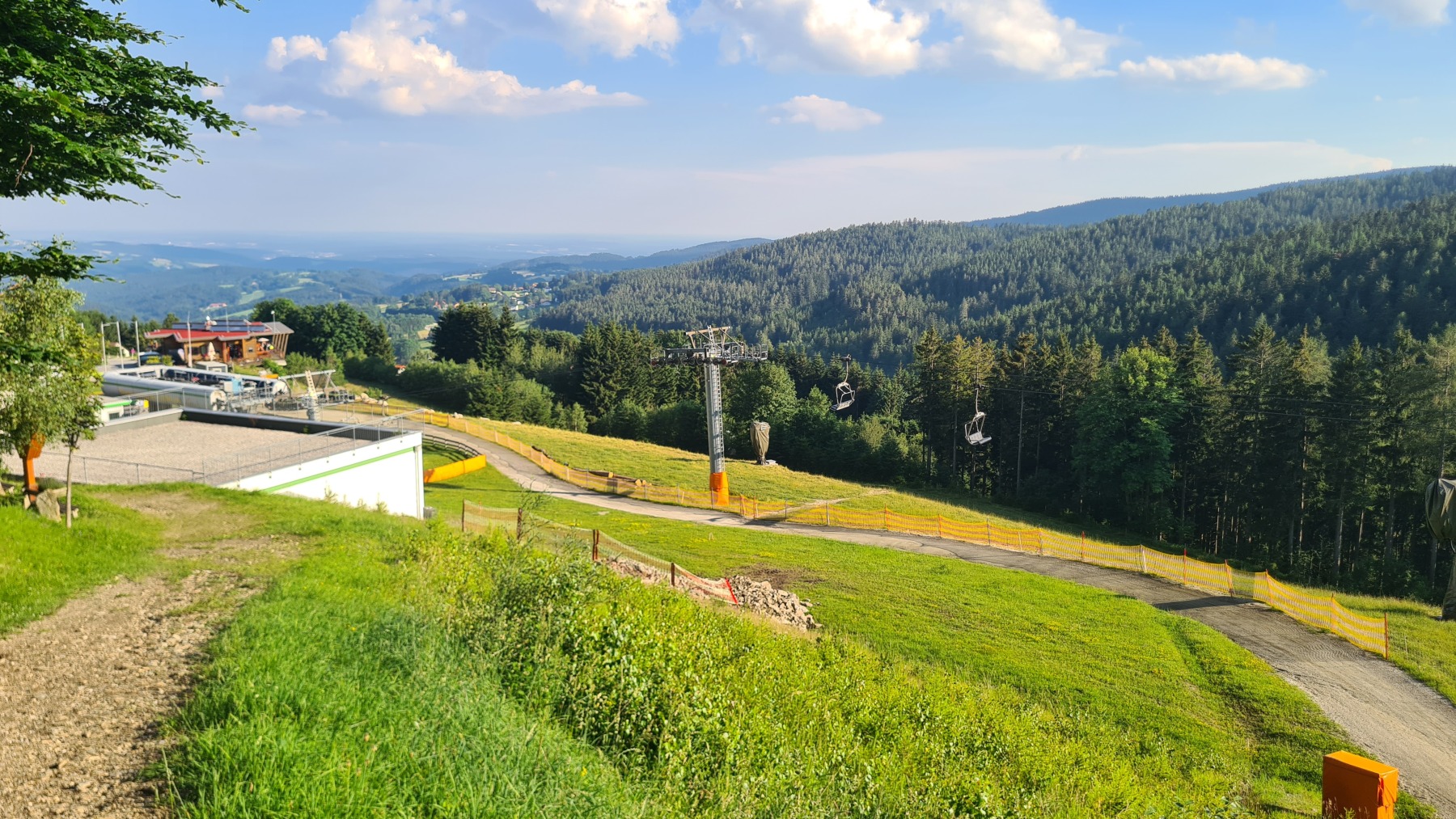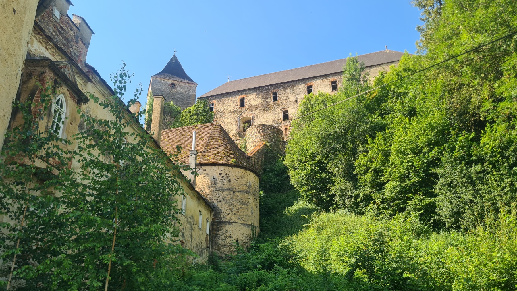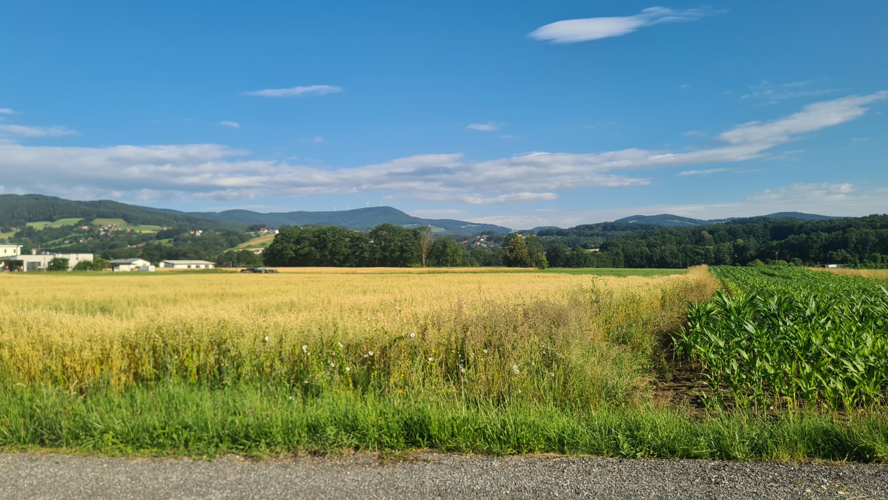 Aujourd’hui nous nous sommes attaqués au Wechsel, cette extrémité est des Alpes qui sépare la Styrie de la Basse Autriche et nous dormons à Mönichkirchen. Nous n’avons gagné que 650 m d’altitude mais le parcours est très ondulant avec des passages raides et des descentes et le dénivelé positif est bien plus important. Une des montées, pavée avec de jolis petits pavés disjoints est particulièrement éprouvante.