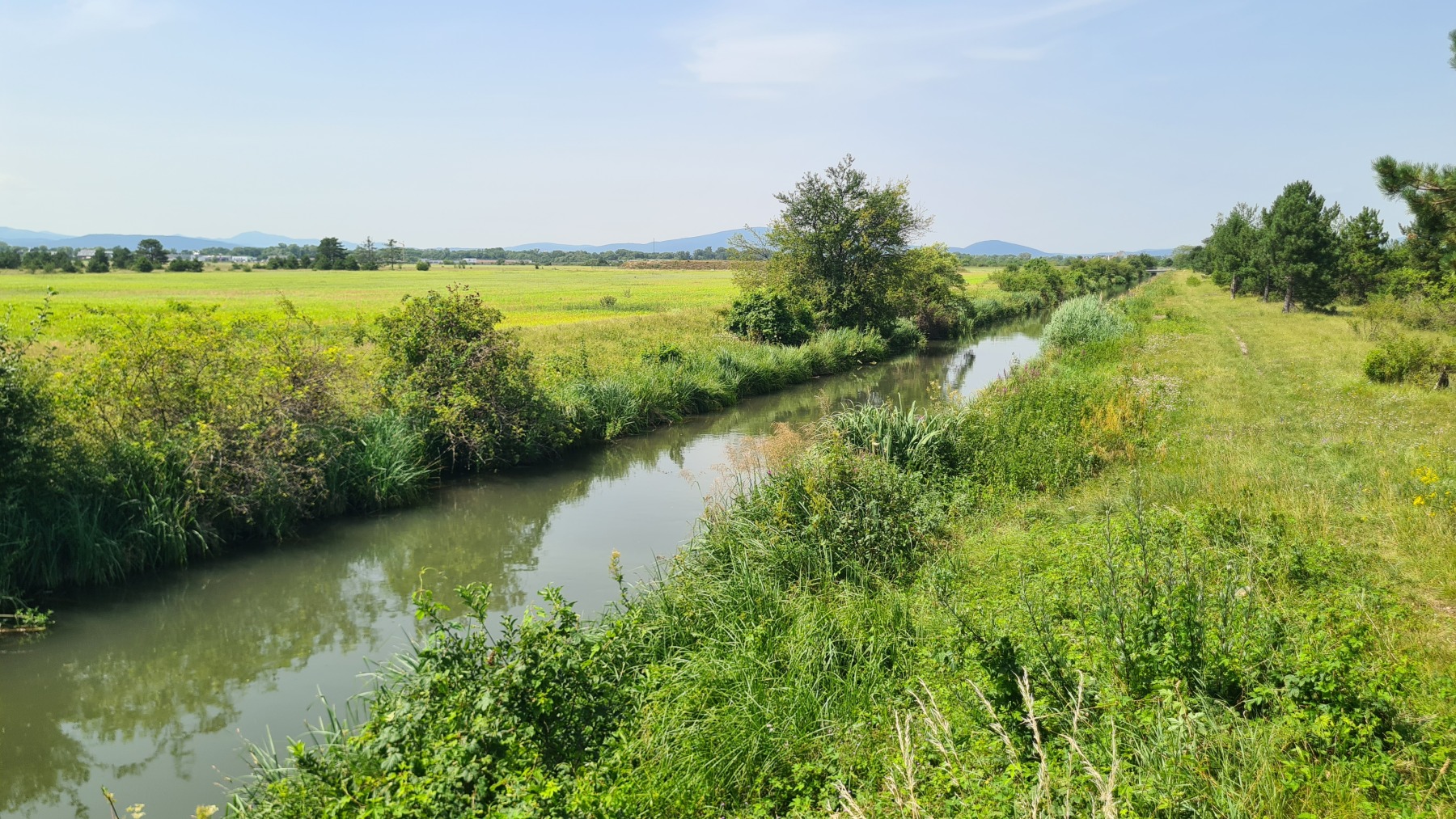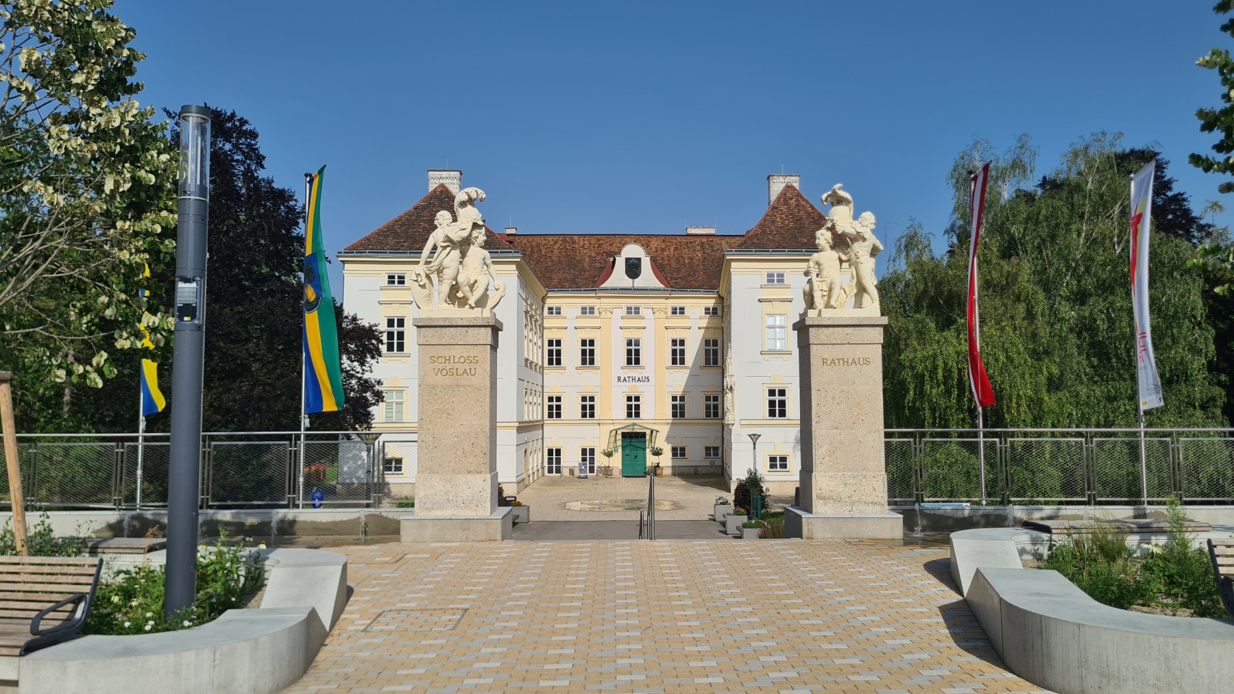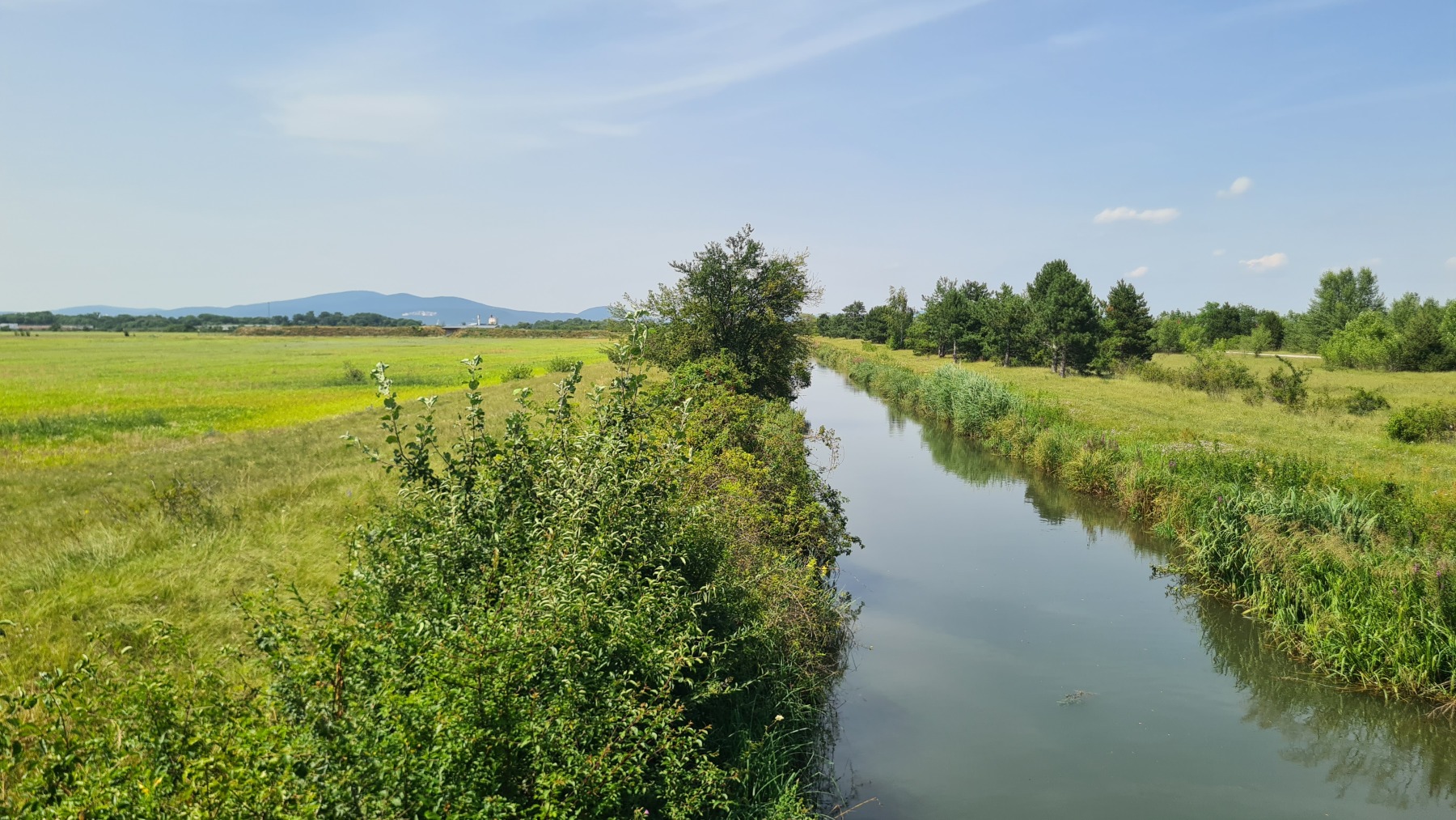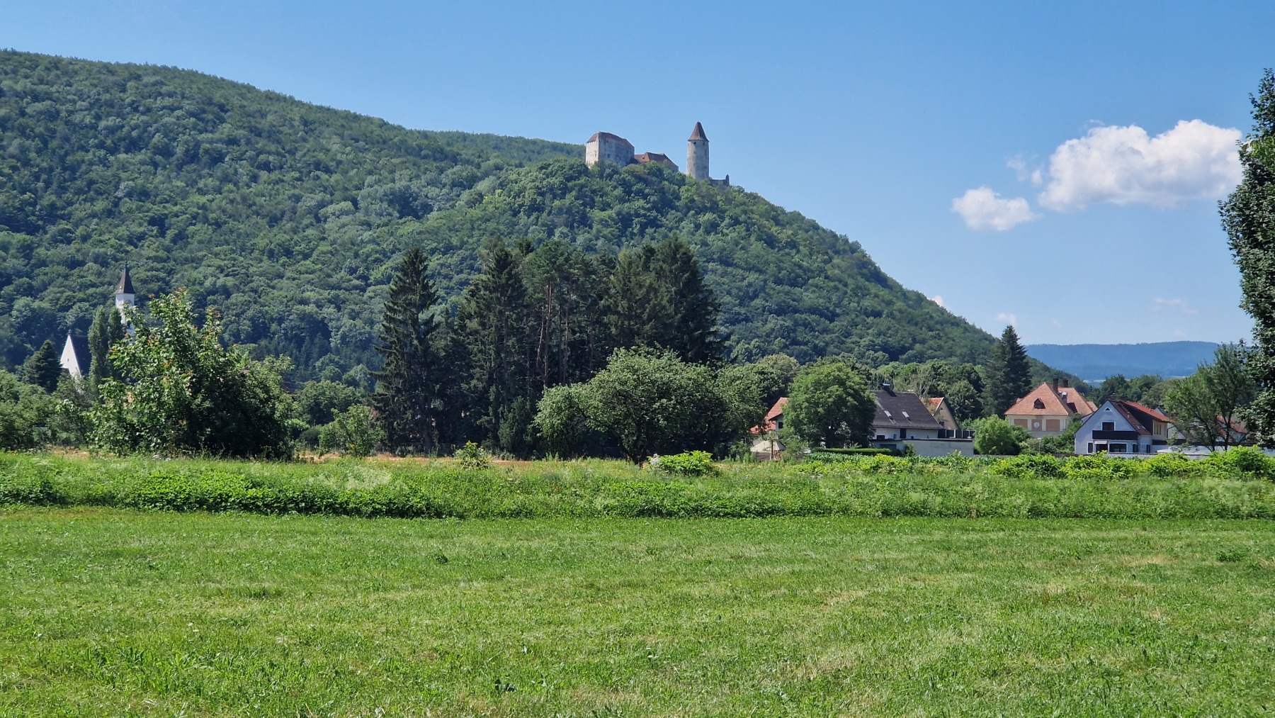 Après une courte descente/montée nous avons quitté les Alpes en descendant du Wechsel pour rejoindre la plaine qui va nous mener à Vienne. Nous avons quitté Eurovelo 9 (toujours aussi bien aménagée et balisée) pour aller déjeuner à Wiener Neustadt et nous avons pu constater que l’itinéraire pour aller en ville puis rejoindre Eurovelo 9 depuis la ville est balisé !