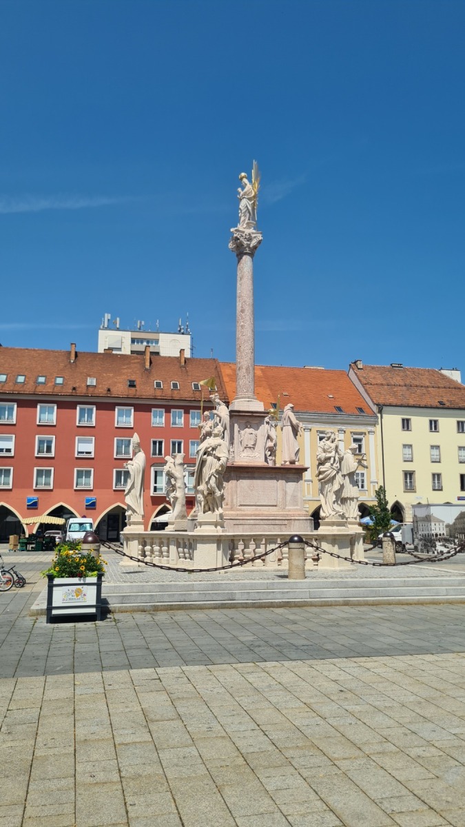 A Wiener Neustadt j’ai photographié une croix de peste. Nous en voyons un peu partout depuis la Slovénie.