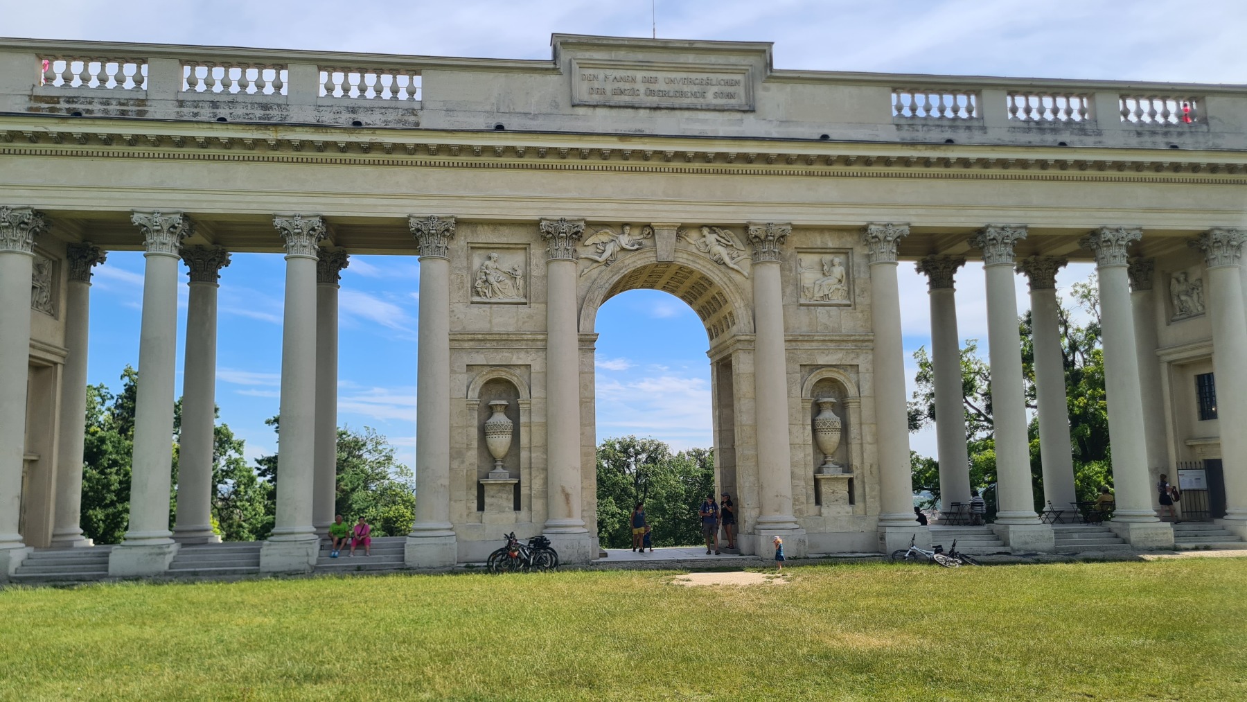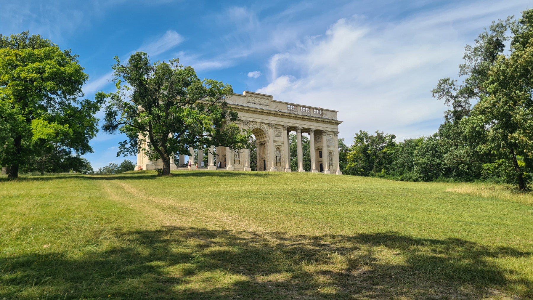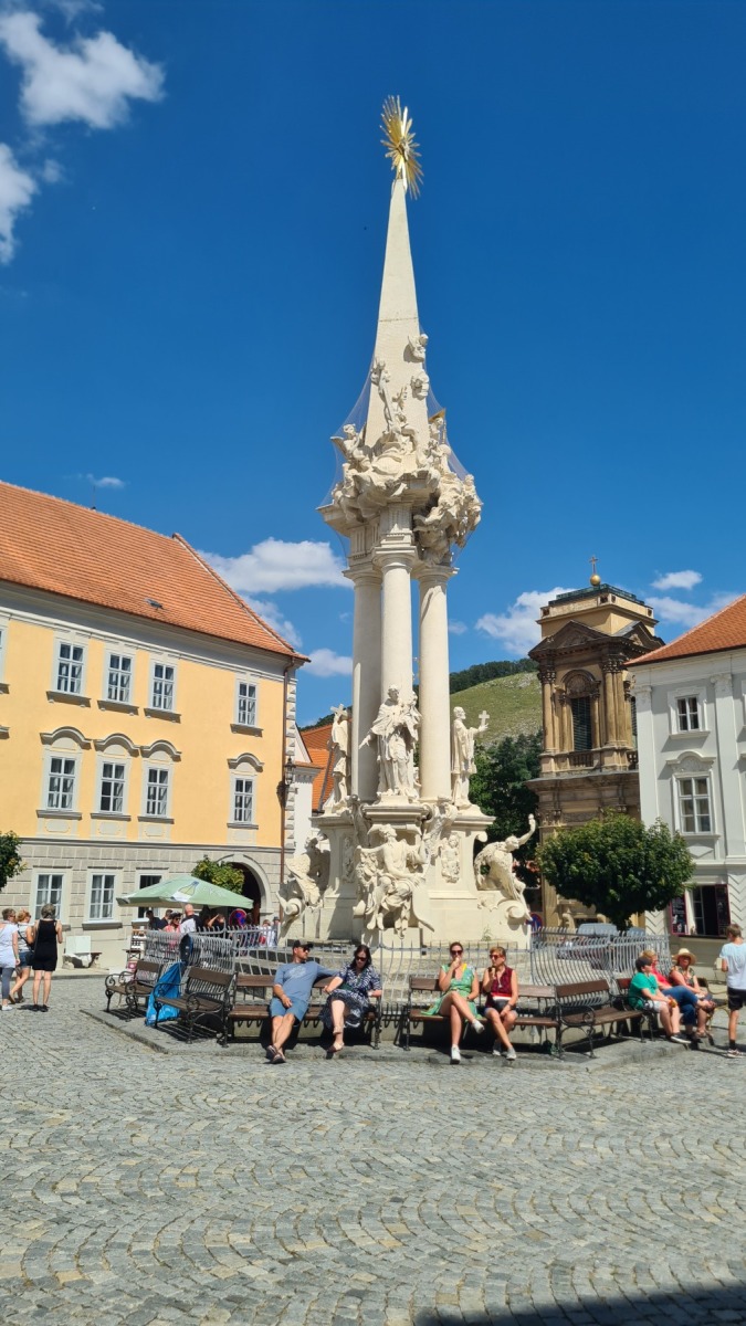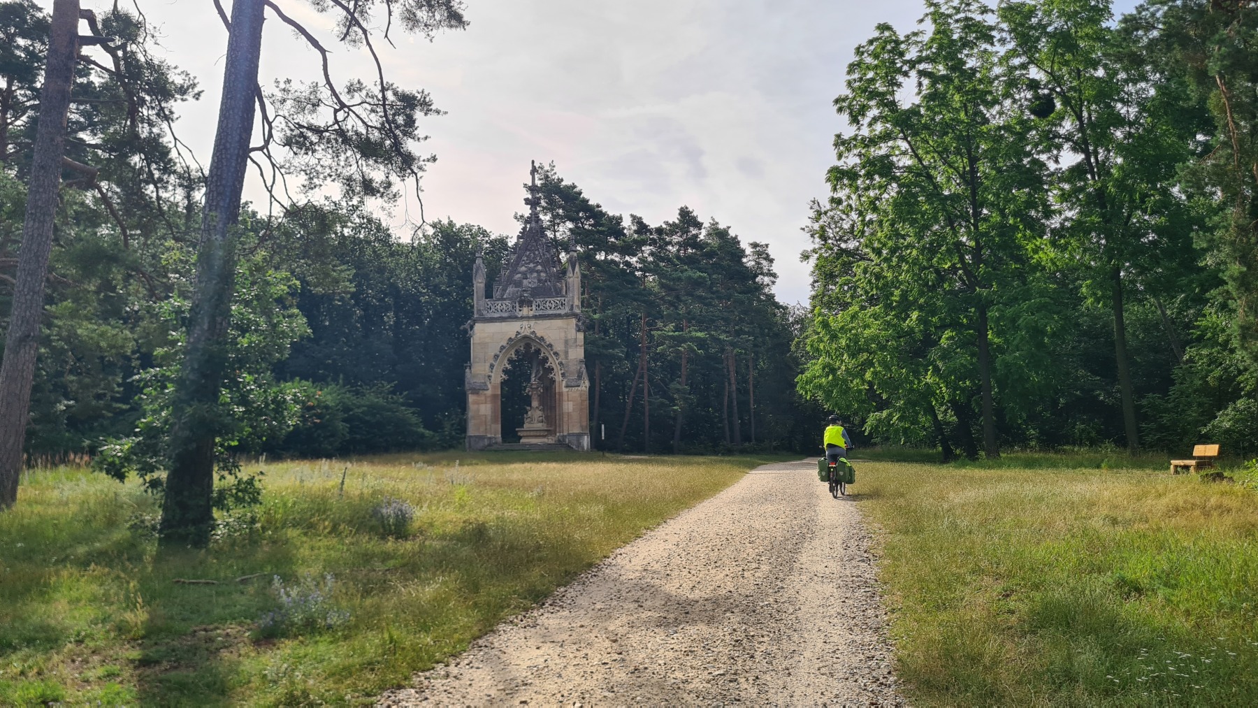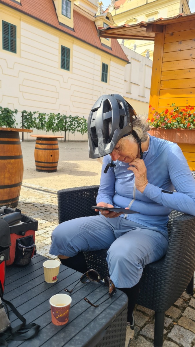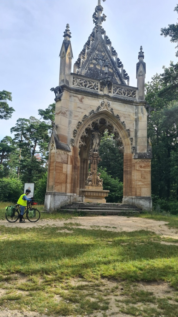 Depuis hier soir nous sommes sur l’ancien territoire de la maison de Liechtenstein qui possédait ici une surface plus grande de celle de la principauté. Au dix-neuvième siècle ils ont construit des monuments un peu kitch autour de Valtice que l’Eurovélo 9 nous a fait découvrir ce matin. Nous avons également visité les jardins de leur château de Valtice dans lesquels nous avons pu prendre un café.