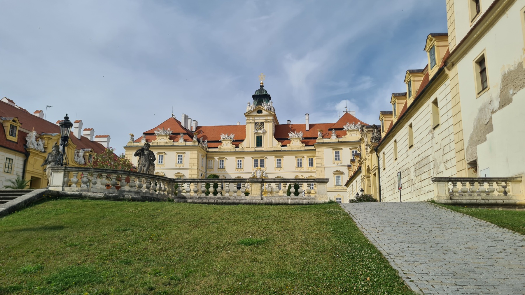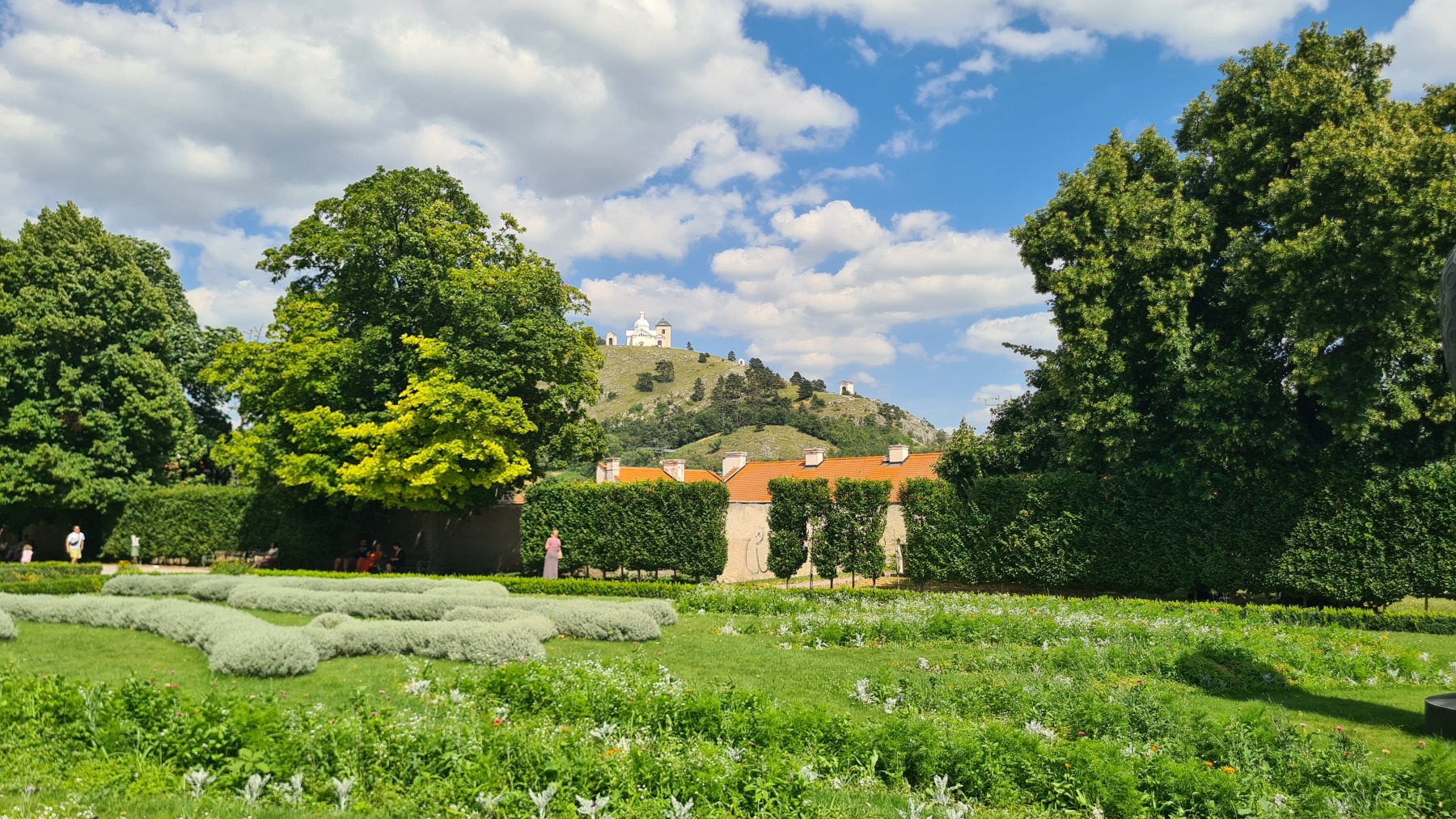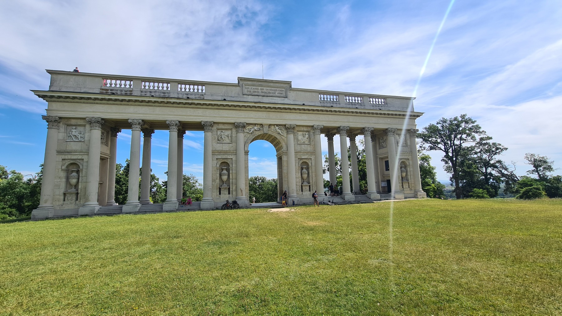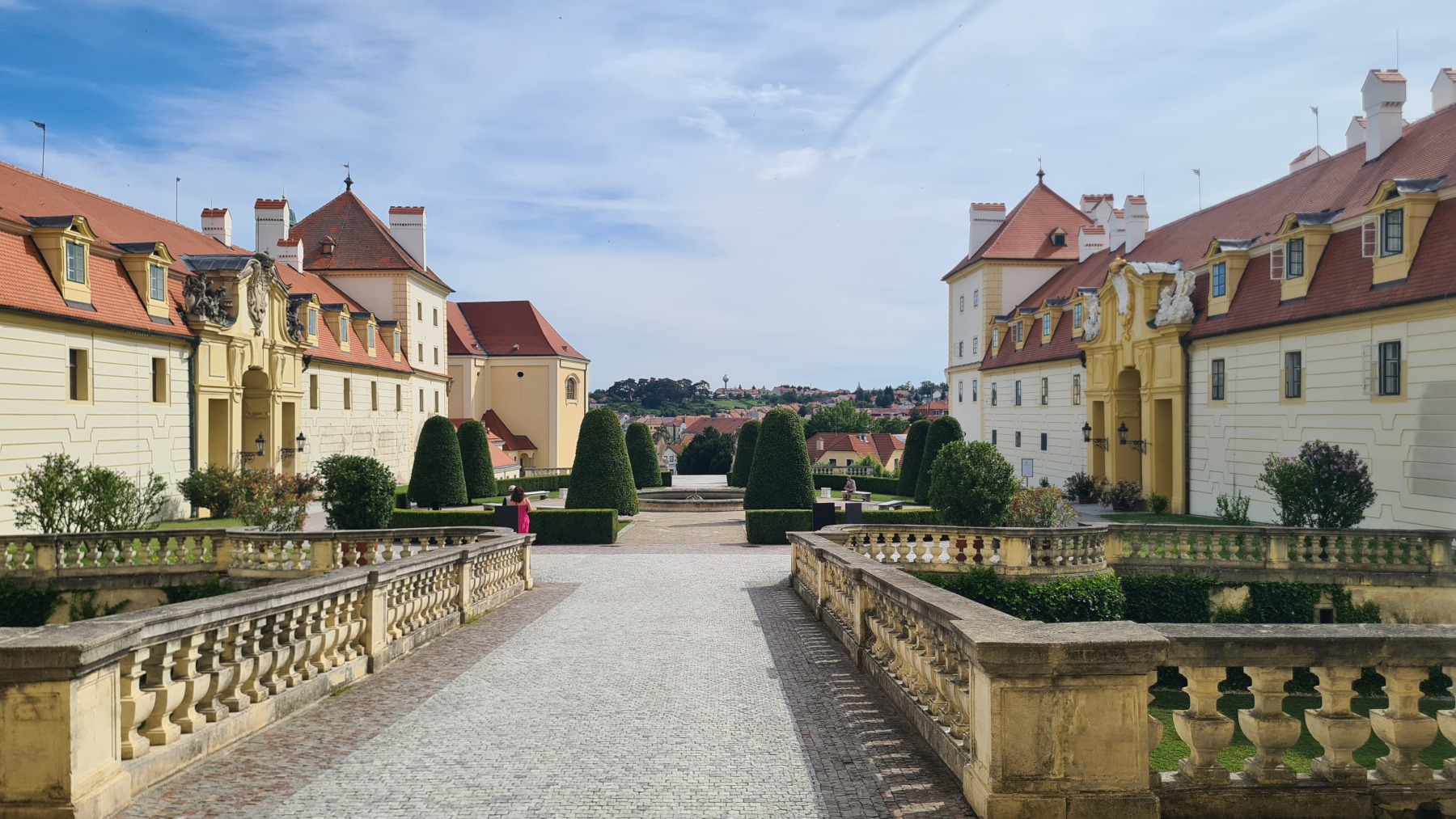 Depuis hier soir nous sommes sur l’ancien territoire de la maison de Liechtenstein qui possédait ici une surface plus grande de celle de la principauté. Au dix-neuvième siècle ils ont construit des monuments un peu kitch autour de Valtice que l’Eurovélo 9 nous a fait découvrir ce matin. Nous avons également visité les jardins de leur château de Valtice dans lesquels nous avons pu prendre un café.