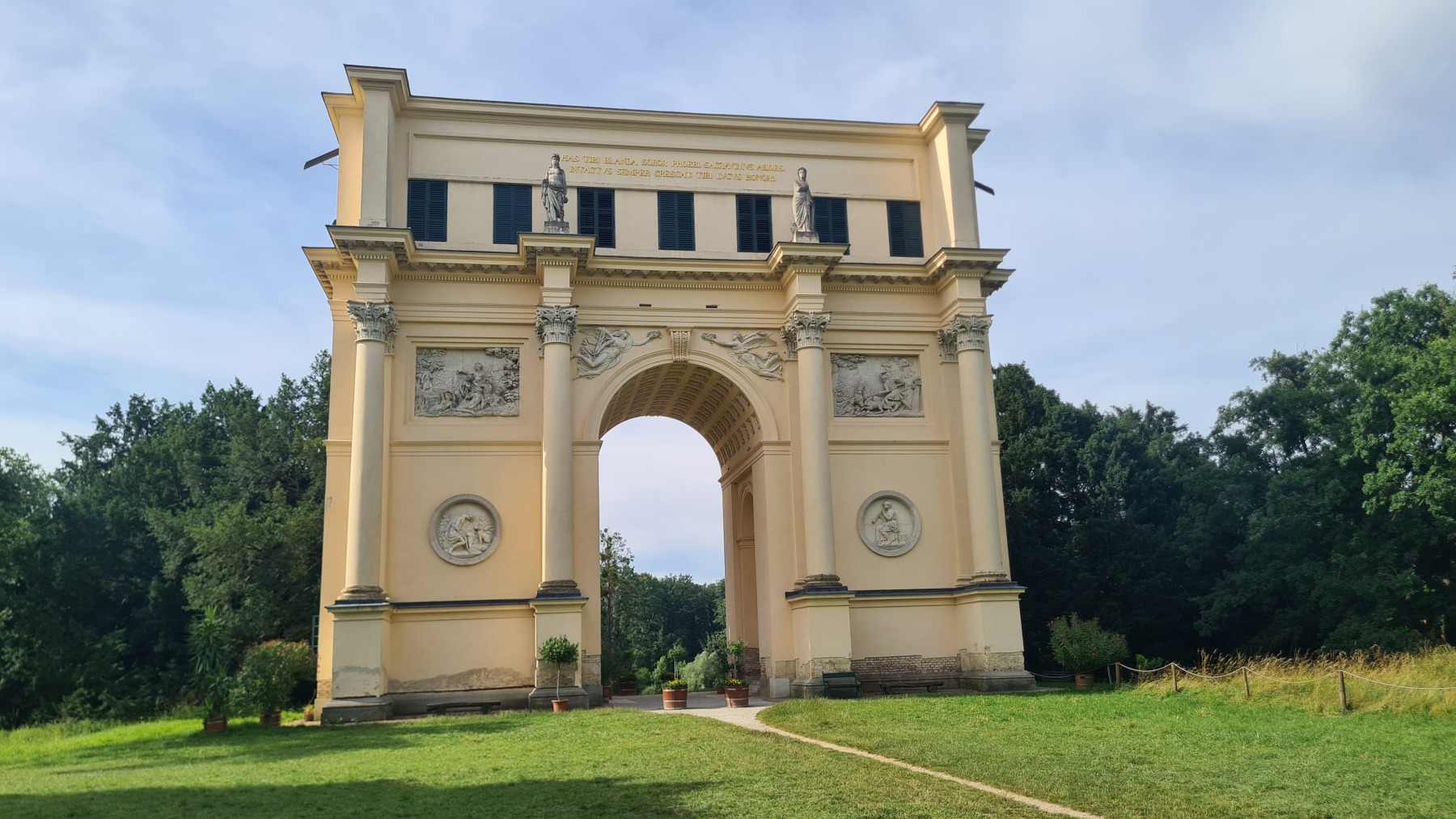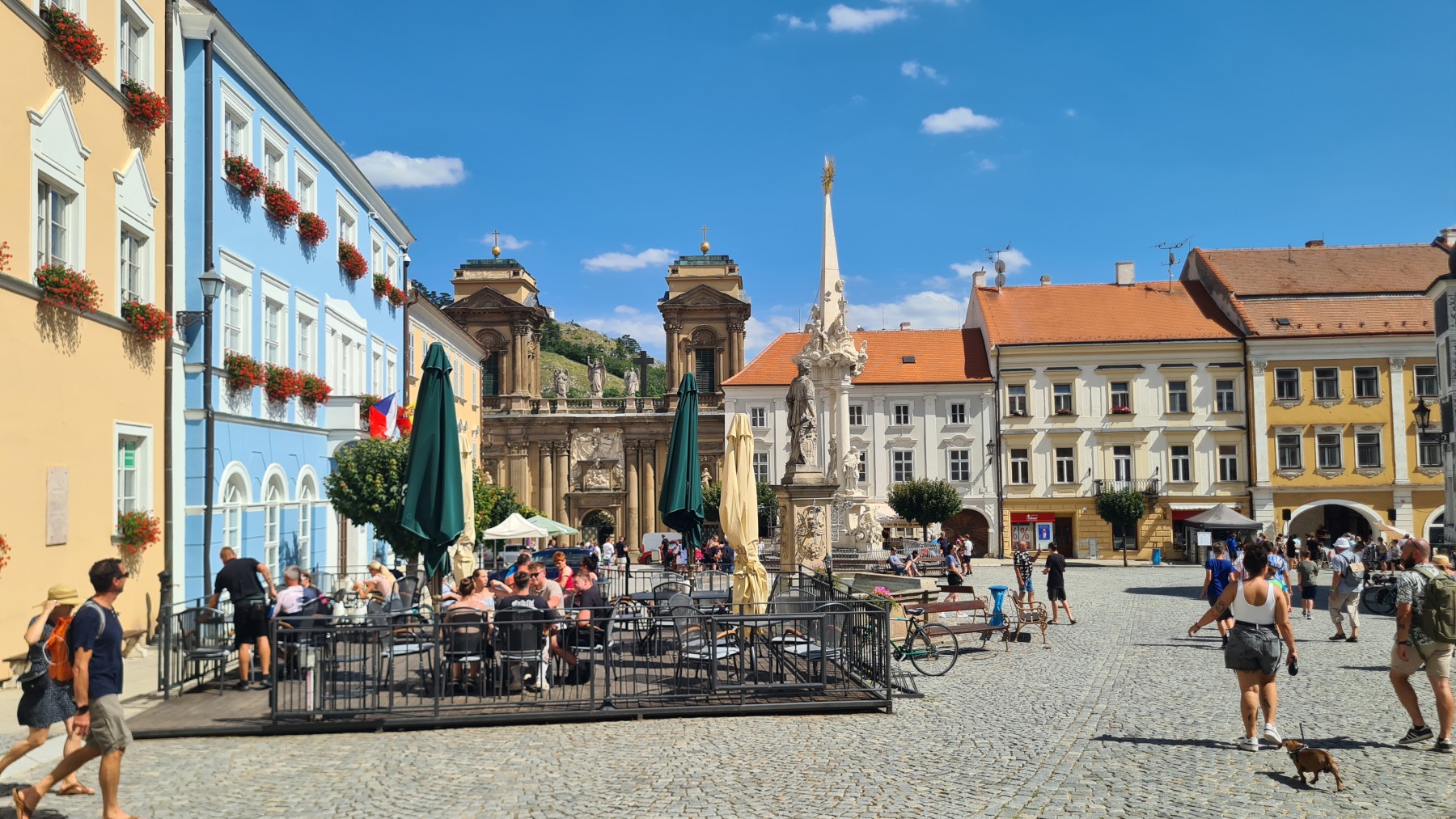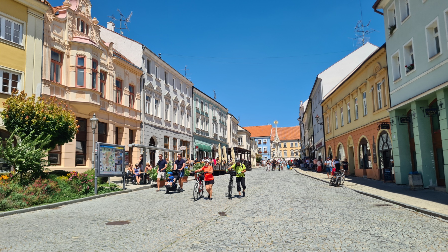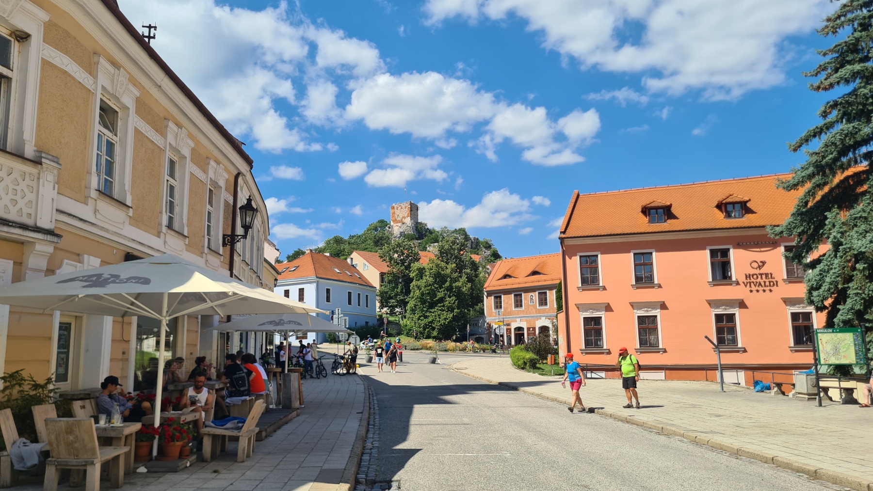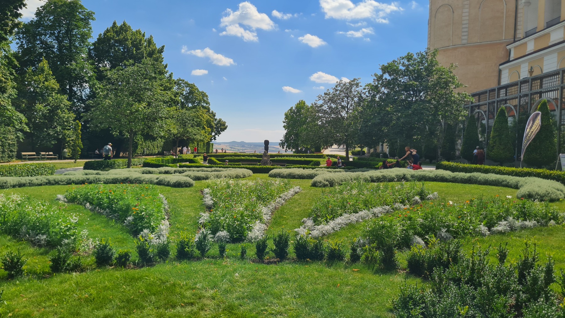 Depuis hier soir nous sommes sur l’ancien territoire de la maison de Liechtenstein qui possédait ici une surface plus grande de celle de la principauté. Au dix-neuvième siècle ils ont construit des monuments un peu kitch autour de Valtice que l’Eurovélo 9 nous a fait découvrir ce matin. Nous avons également visité les jardins de leur château de Valtice dans lesquels nous avons pu prendre un café.
