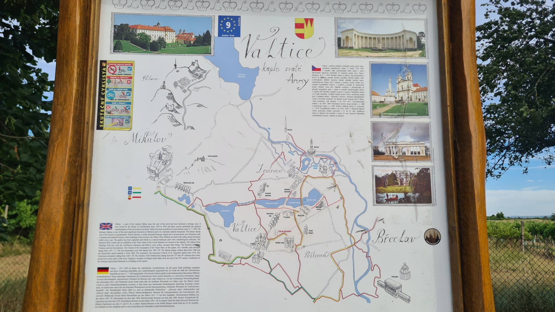 Cette portion de l’Eurovelo 9, proche de la frontière autrichienne est commune avec Eurovelo 13 « véloroute du rideau de fer » et elle est émaillée d’évocations du rideau de fer.