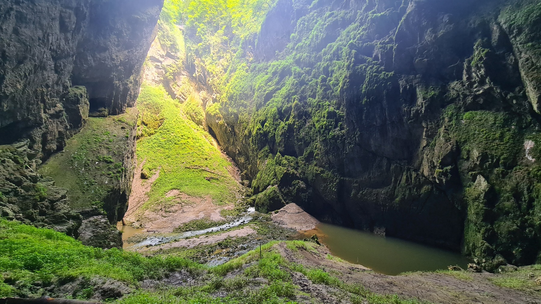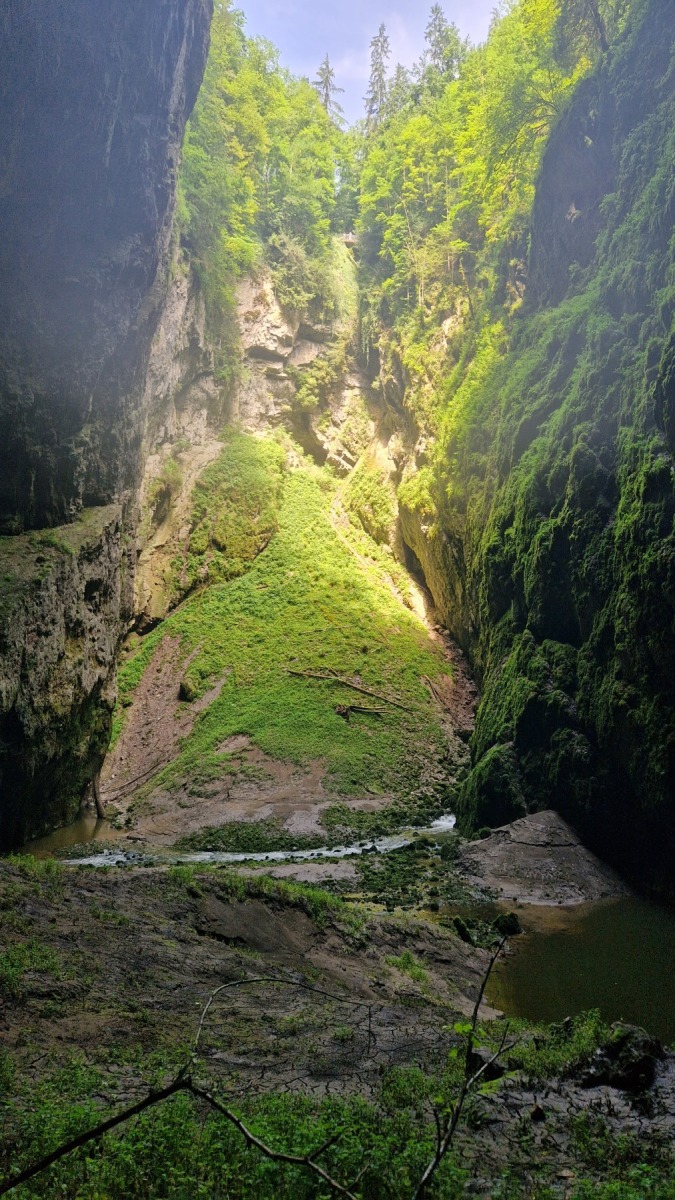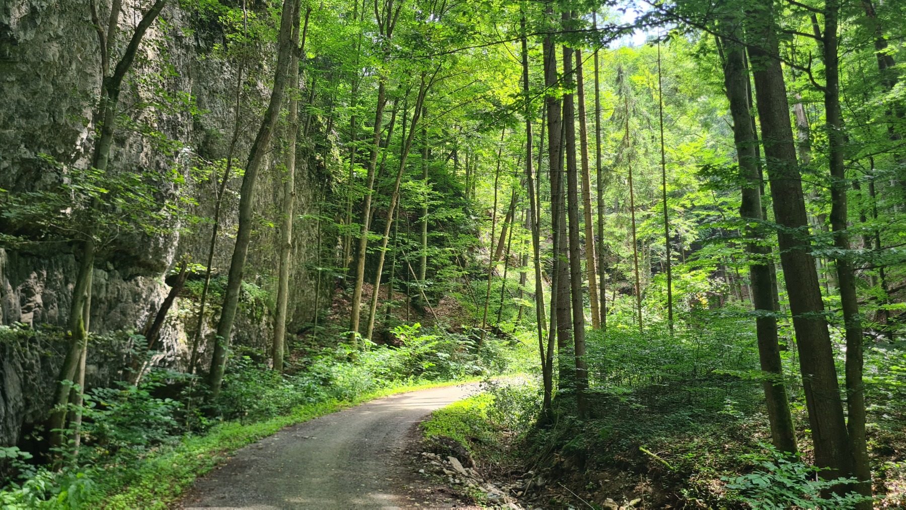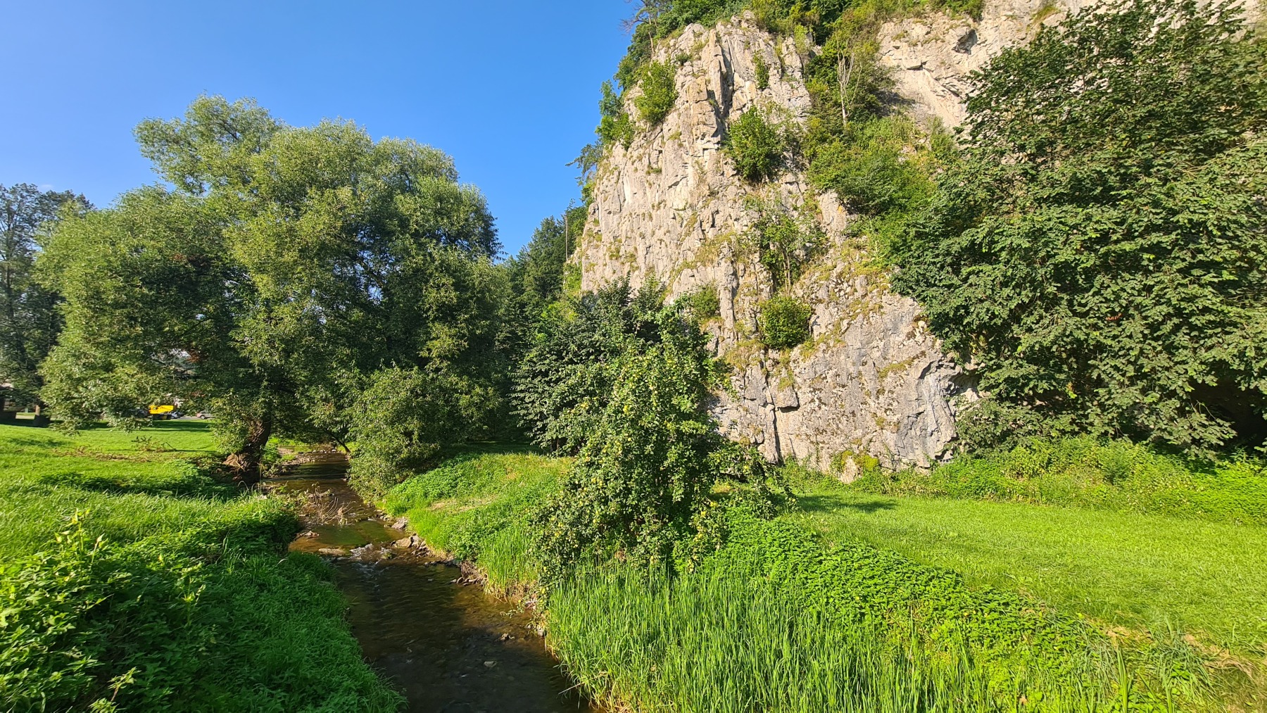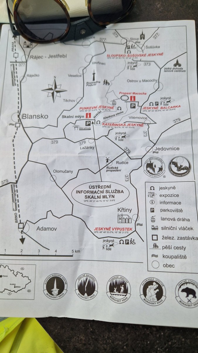 Nous avons repris notre progression vers le nord pour une petite étape très agréable. L’itinéraire de l’Eurovelo 9 a été vraiment cool (à part une petite portion sur une route assez fréquentée où il y avait tout de même une bande cyclable). Il suit la Svitava pour nous amener dans le Karst Morave et suivre les gorges creusées par la Punkva. Le dénivelé est très régulier avec une moyenne de 1% et nous avons monté sans nous en rendre compte. Sur le chemin nous avons visité les grottes de Punkva et nous sommes arrivés à Sloup pour le déjeuner.
