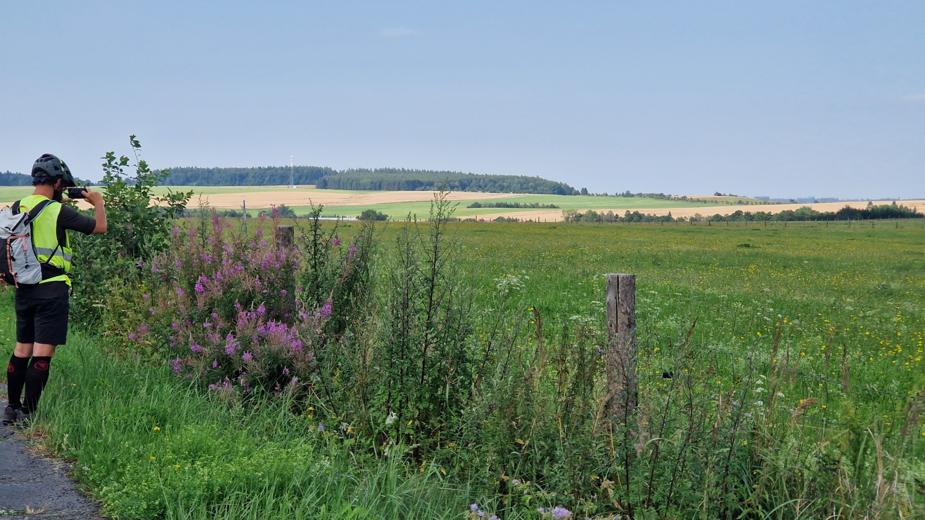 En regardant le profil de l’étape nous nous étions demandé comment expliquer un dénivelé positif de 500m alors que le profil semblait assez plat à part une descente de 200m. Nous avons vite compris que si on alterne des petites montées et descentes raides on atteint facilement ces 500m avec des dents de scie à peine visibles parce qu’écrasées sur la courbe. Par contre nos jambes ont bien senti ces 500m !