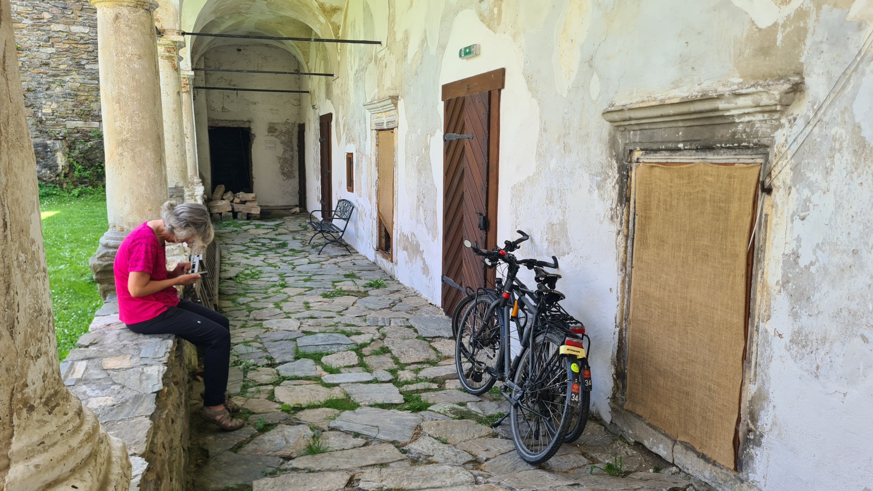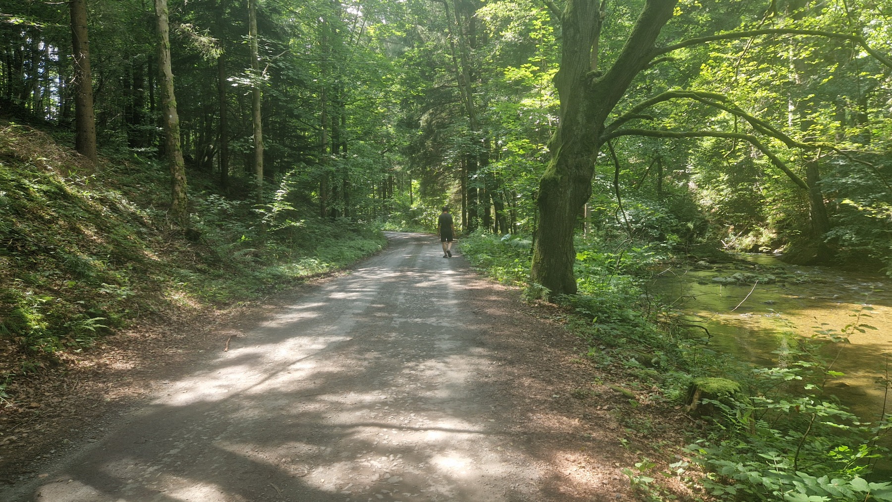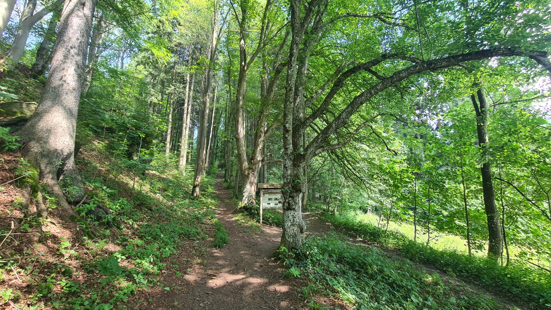 Après le déjeuner au restaurant du village nous avons suivi un sentier dans la forêt qui nous a ramené au château en bouclant par le chemin que nous suivrons demain sur Eurovelo 9.