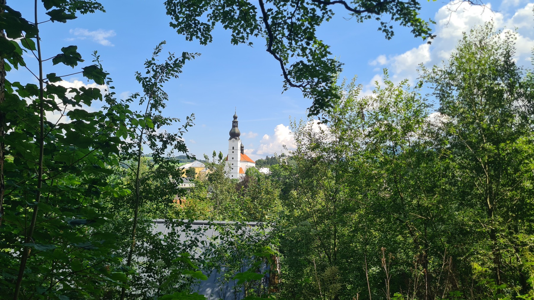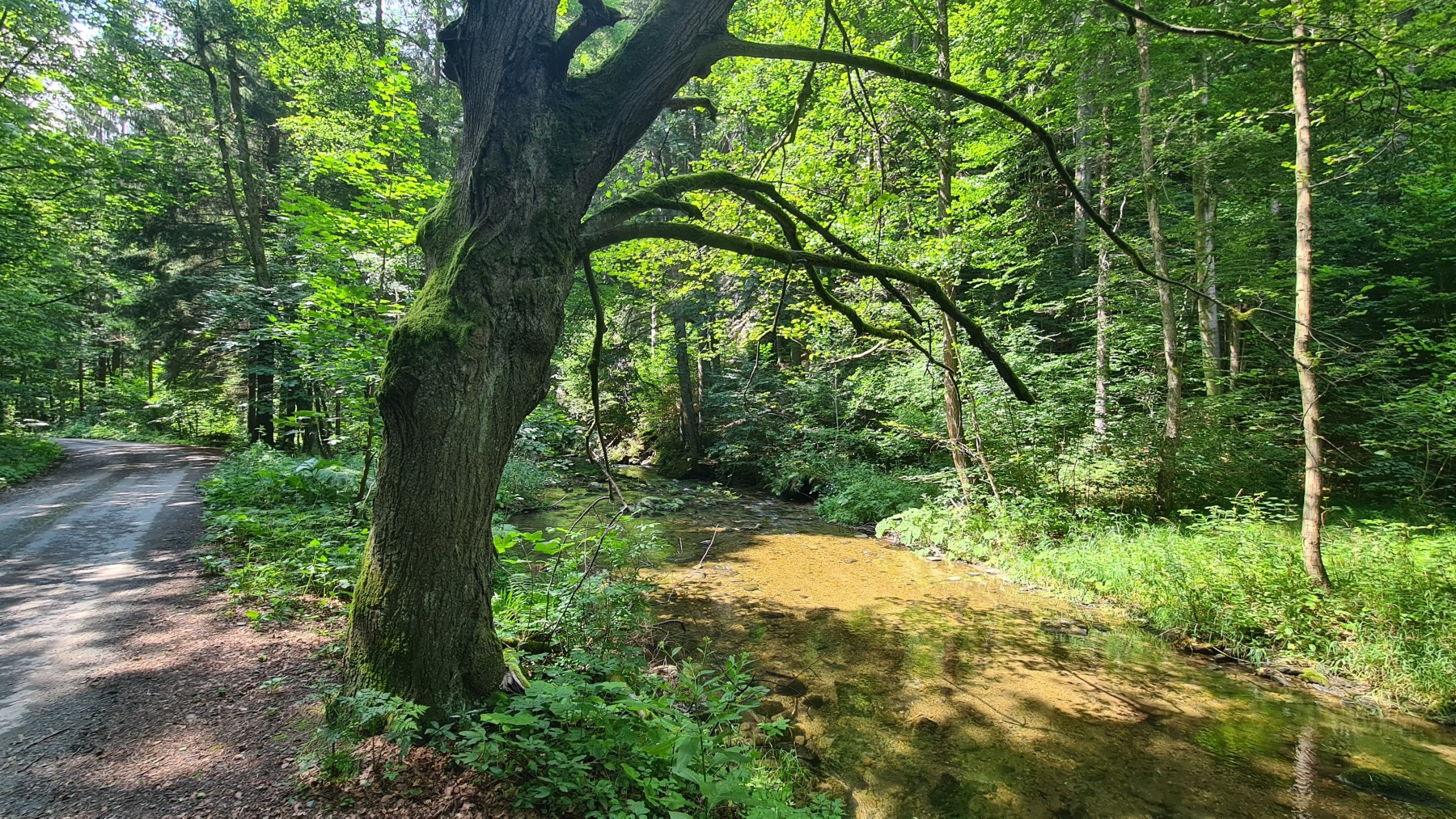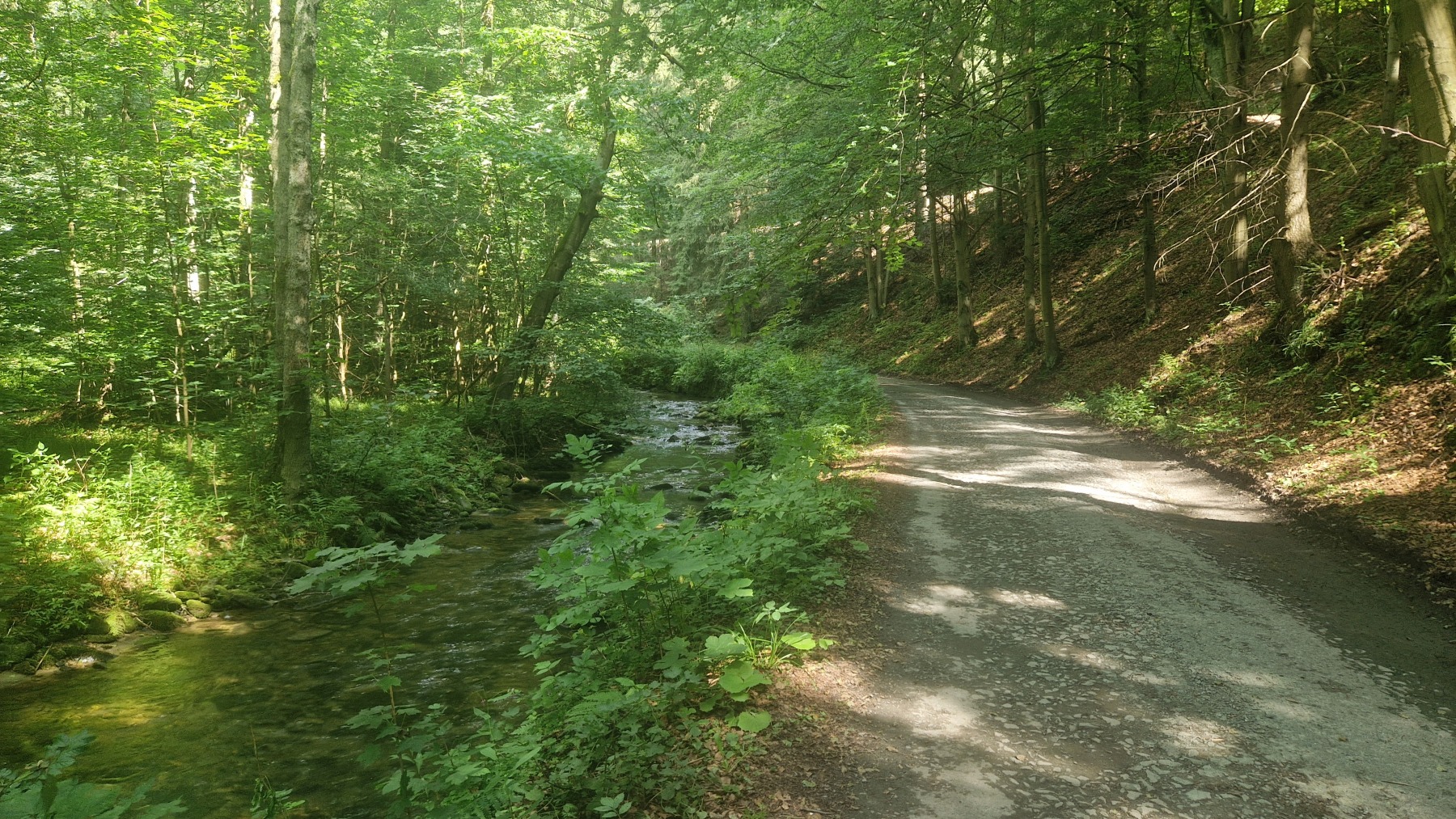 Après le déjeuner au restaurant du village nous avons suivi un sentier dans la forêt qui nous a ramené au château en bouclant par le chemin que nous suivrons demain sur Eurovelo 9.