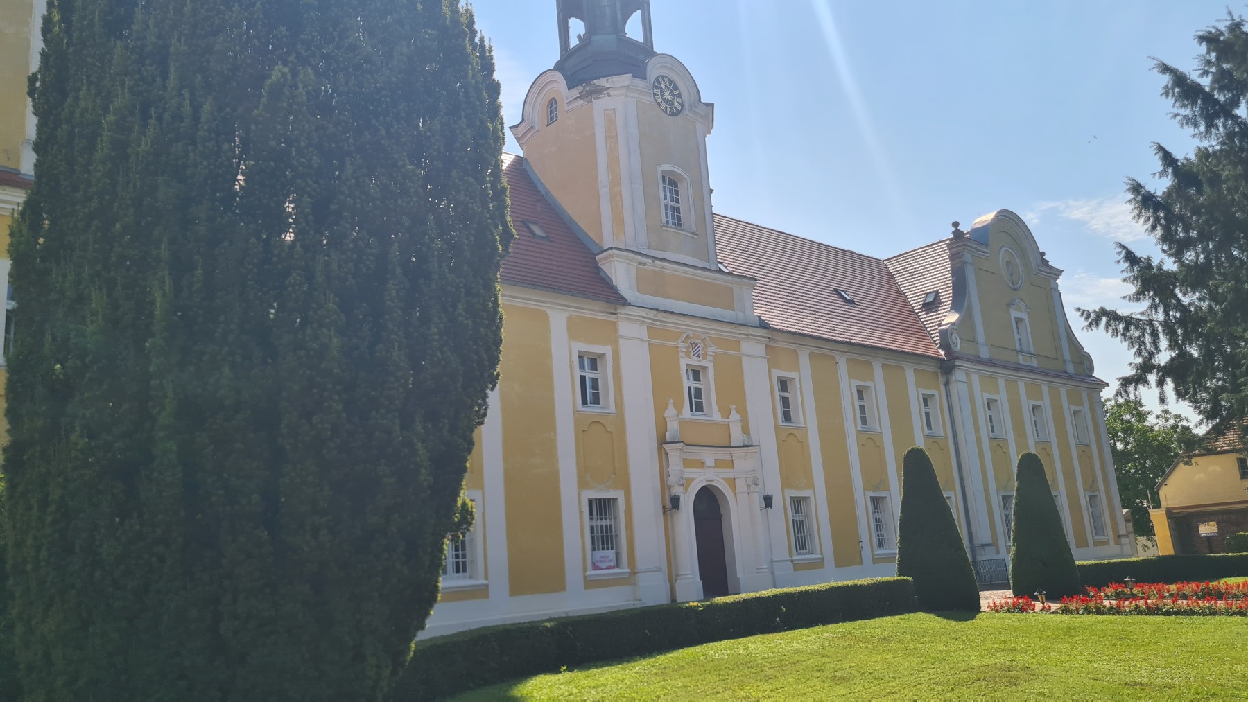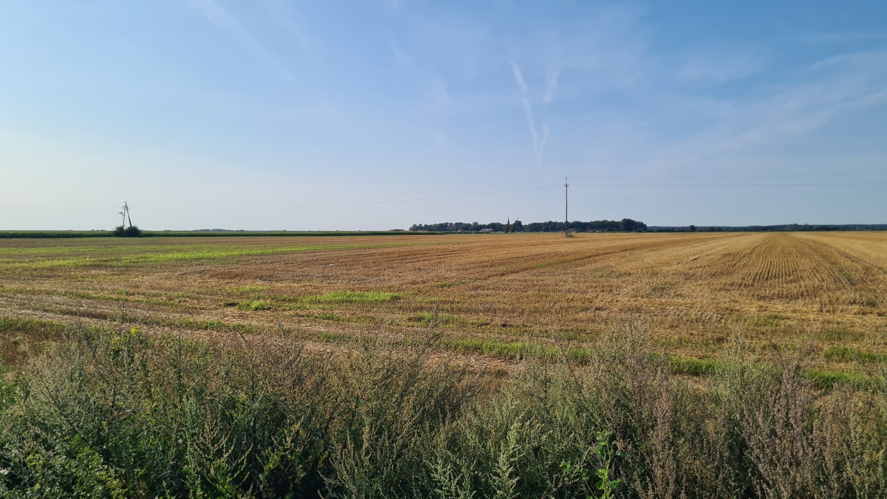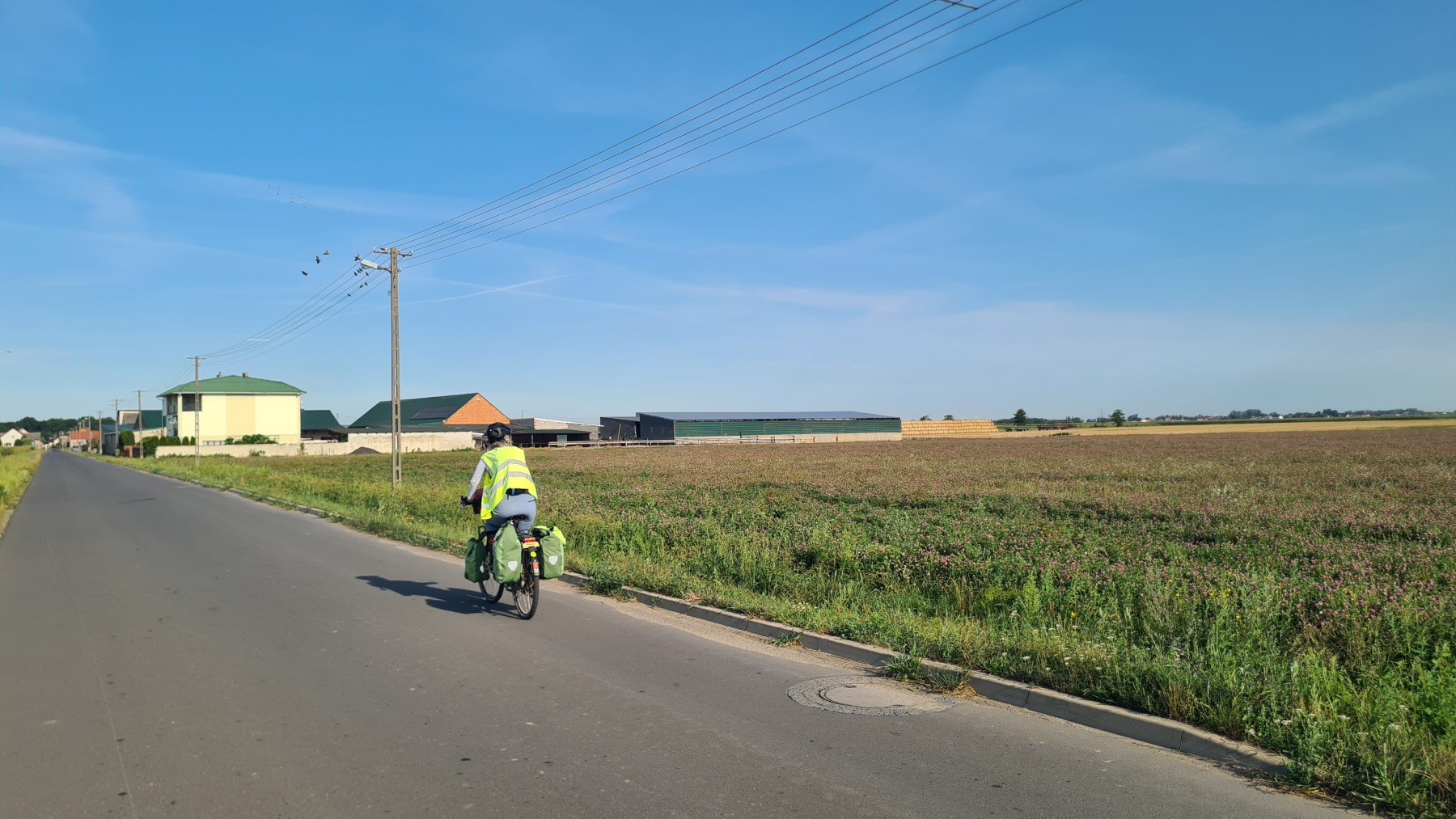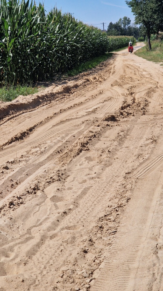 Après un petit déjeuner aussi bon que copieux nous sommes repartis vers le nord en coupant un peu par rapport à Eurovelo 9 avant de la rejoindre. La majeur partie de l’étape s’est fait sur de petites routes parfois très abimées mais pratiquement sans circulation dans la plaine de Grande Pologne au milieu de grandes cultures et a été plus facile qu’intéressante. Les villages y sont toujours aussi désespérément dépourvus de cafés !