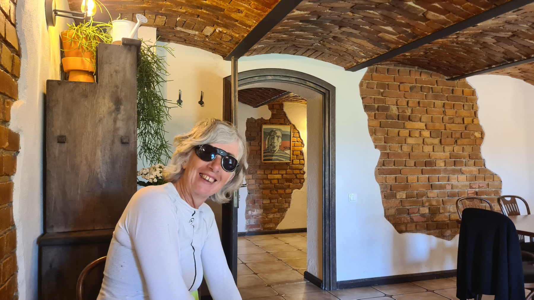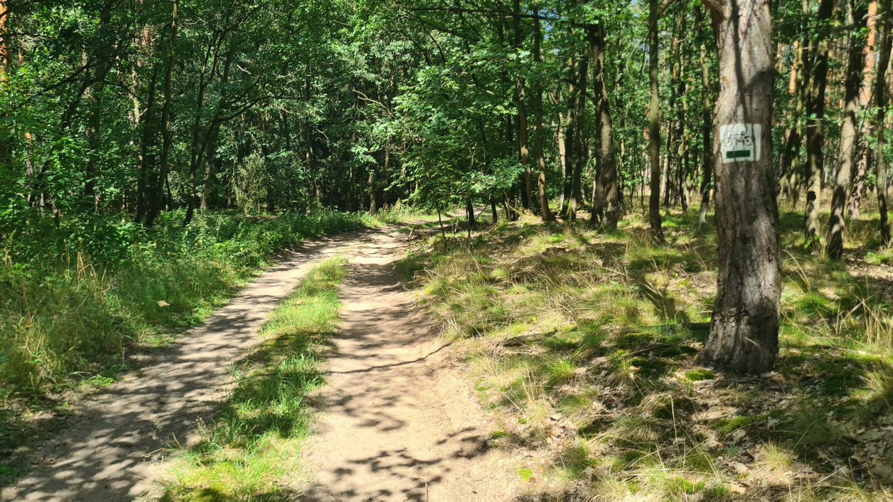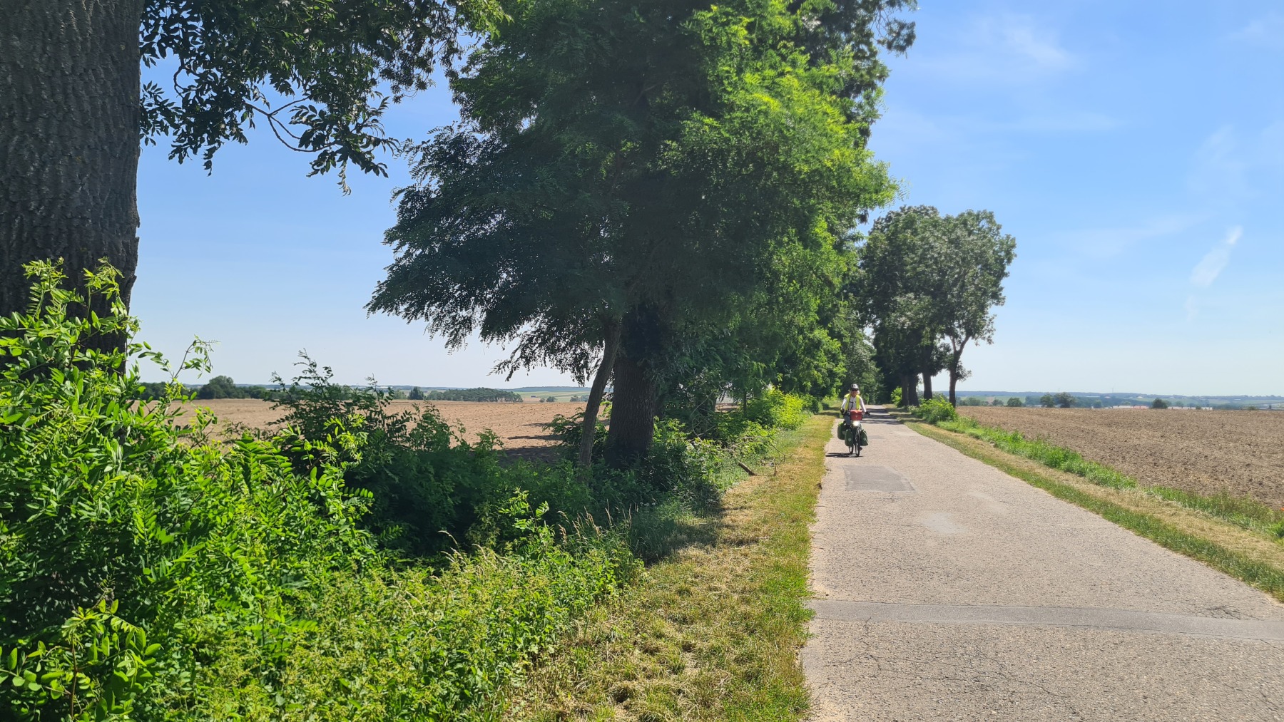 Nous avons quitté Eurovelo 9 au niveau de la basilique de Sainte-Colline (devant laquelle nous avons fait une pause) pour rejoindre notre hôtel à Dolsk et les choses sont devenues plus intéressantes et plus éprouvantes. Le terrain est très sablonneux, c’est bien visibles dans les champs qui viennent d’être labourés et aussi sur les pistes que bous nous avons emprunté et il nous a fallu fréquemment pousser les vélos. Par contre les forêts que nous avons traversé sont bien agréables.