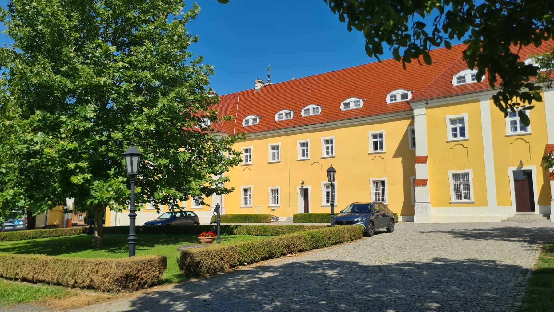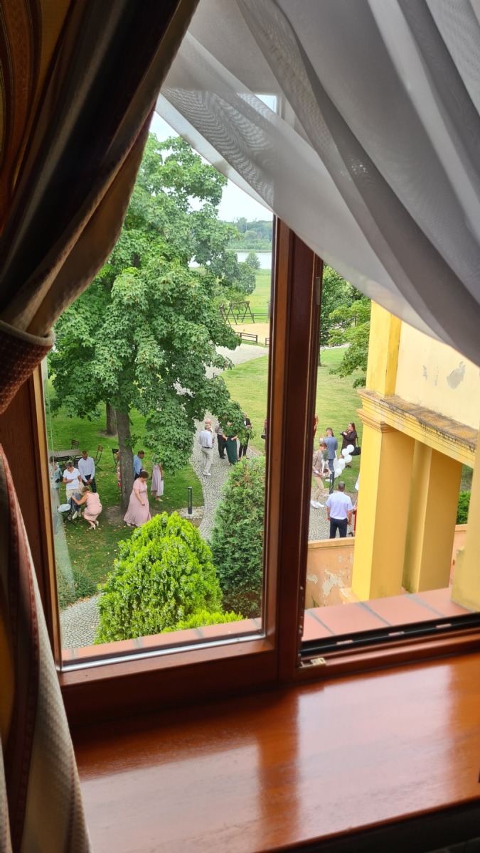 Nous sommes arrivés suffisamment tôt à l’hôtel pour y déjeuner avant de prendre possession de notre chambre (royale, l’hôtel nous a surclassés) avec vue sur le lac et sur un mariage polonais (nous craignons un peu pour la tranquillité de notre nuit).